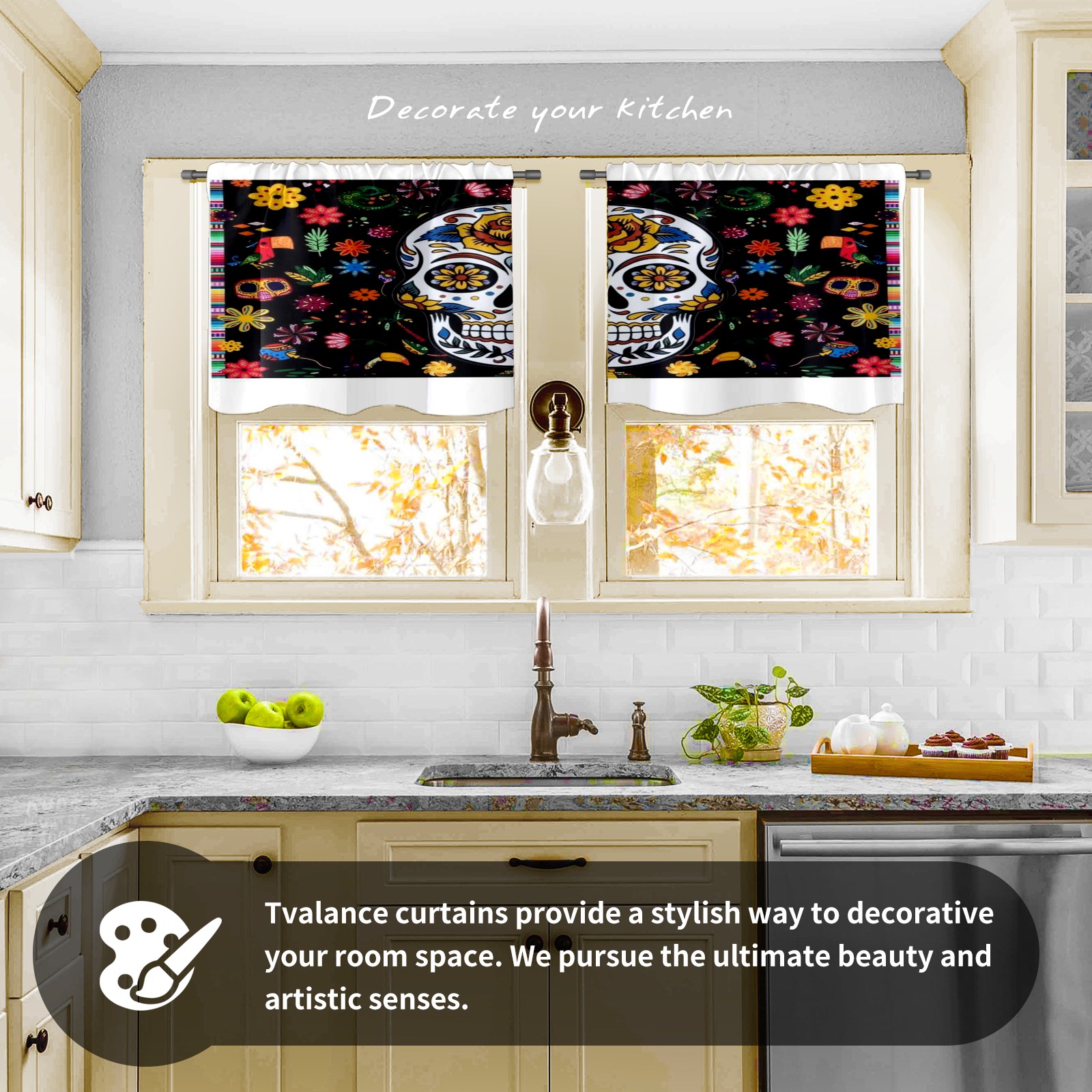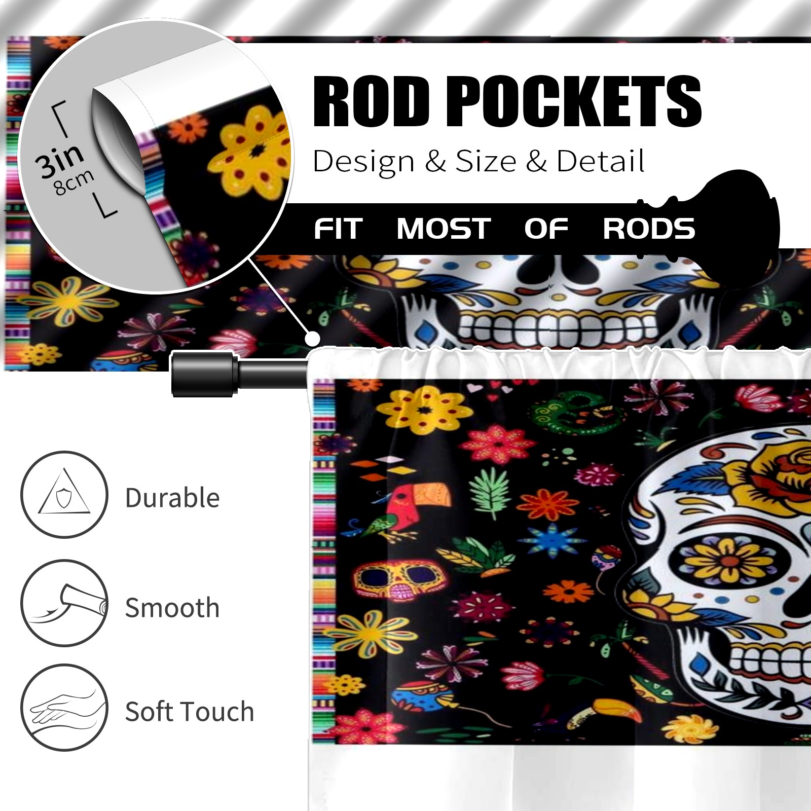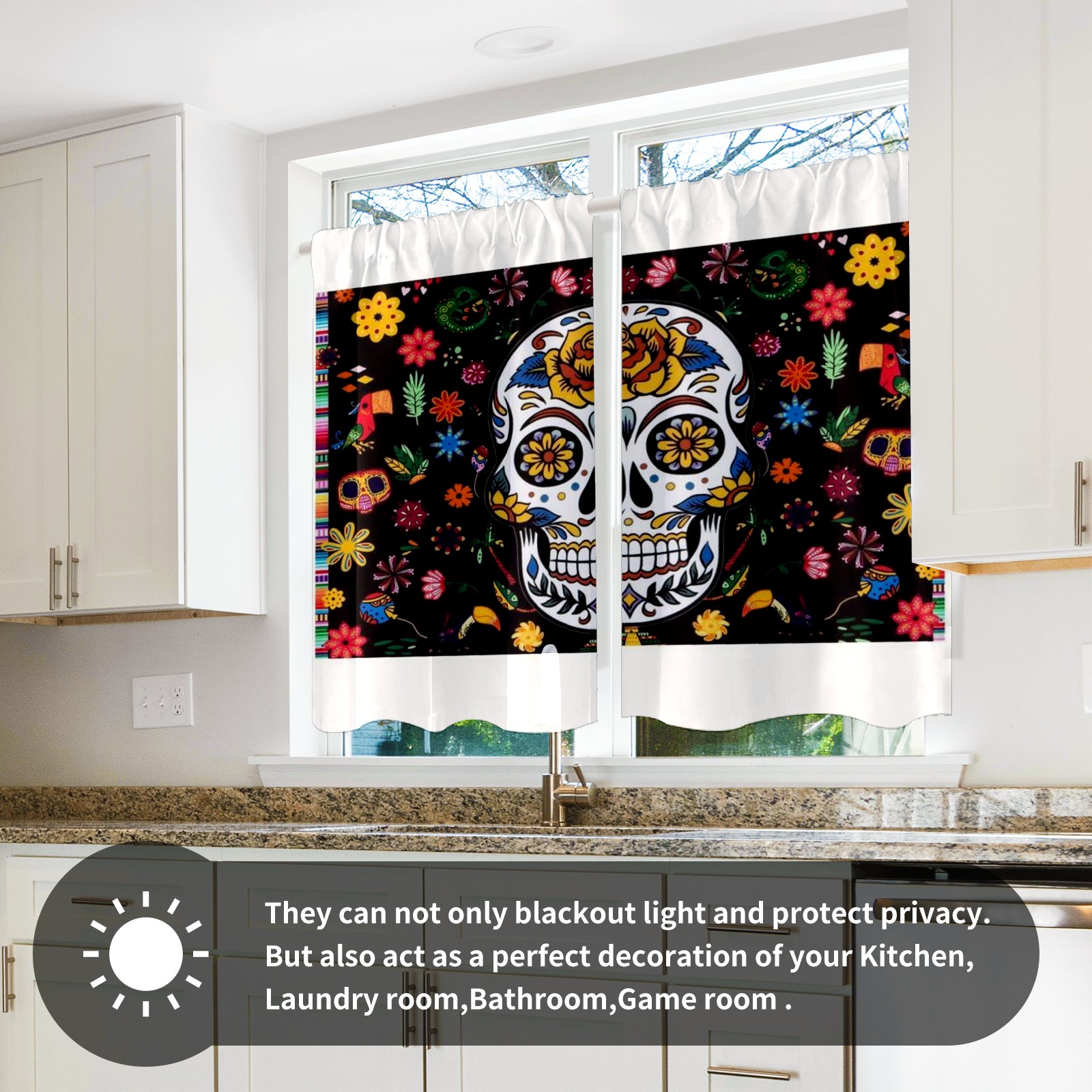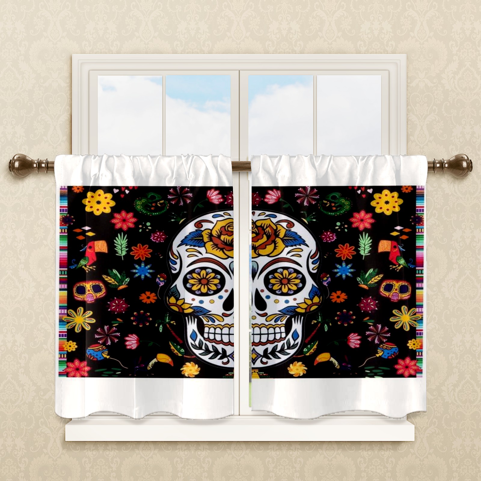 Шторы-панно для дома, декоративные драпировки для гостиной и спальни, легкие и прочные, Skull-and-flowers