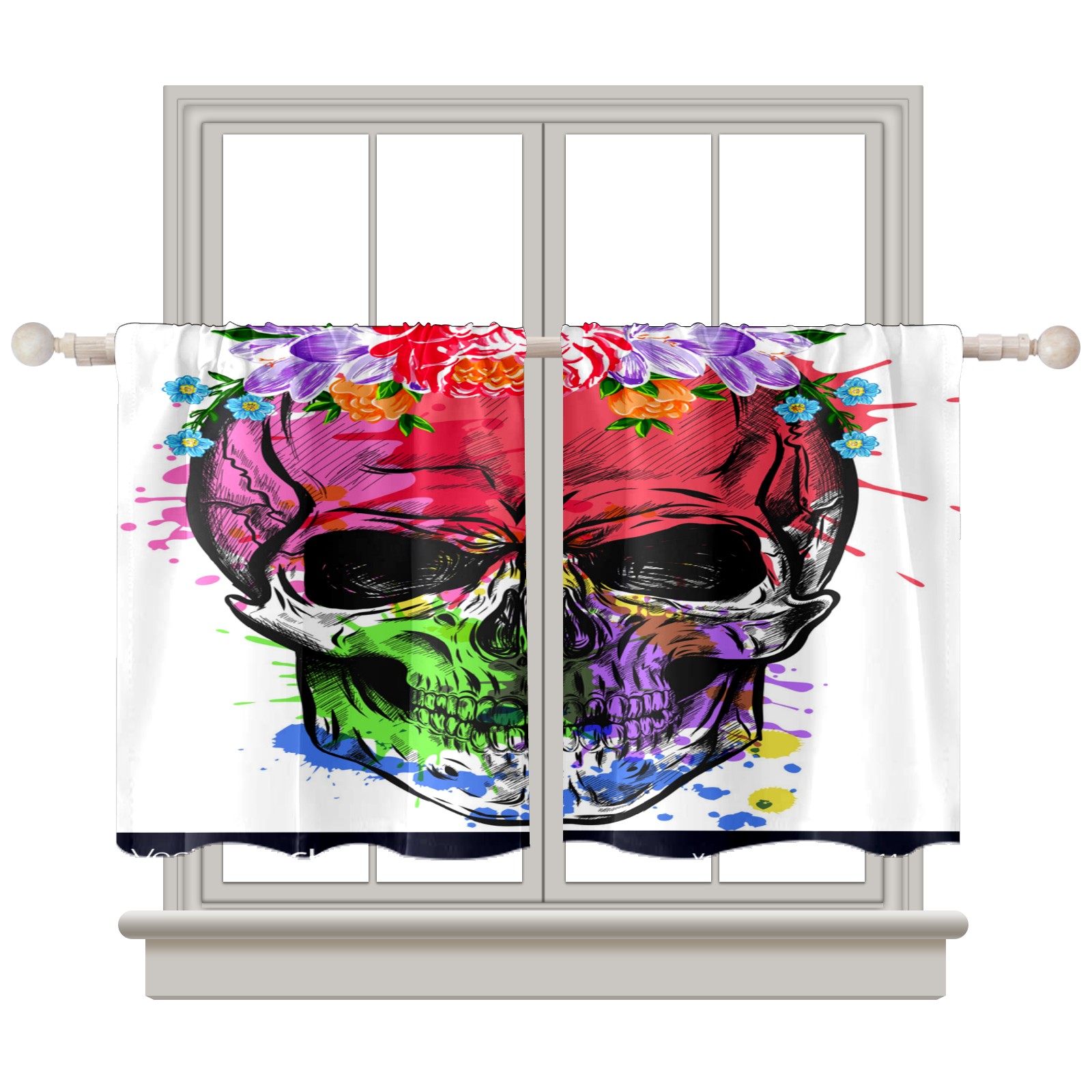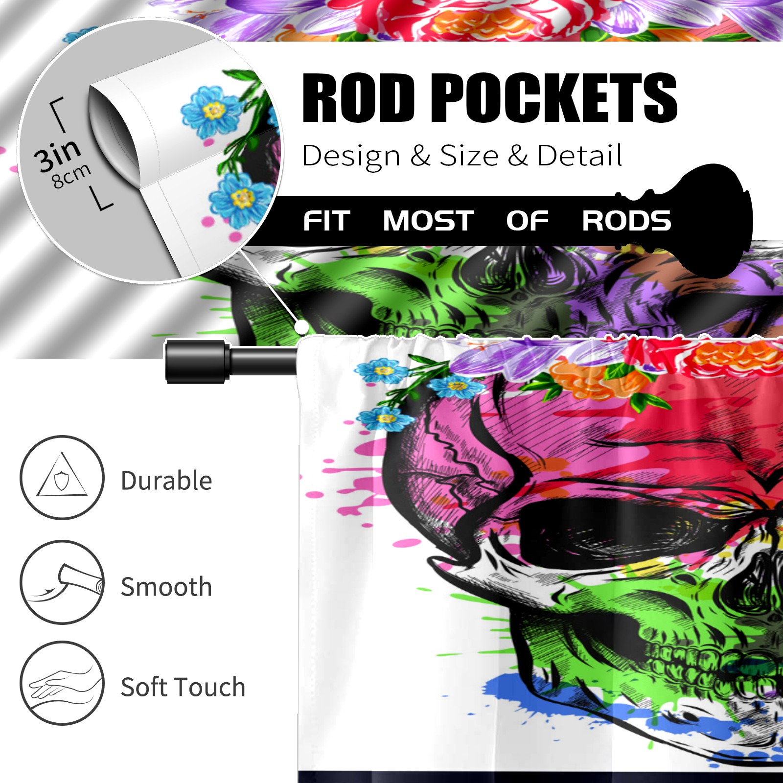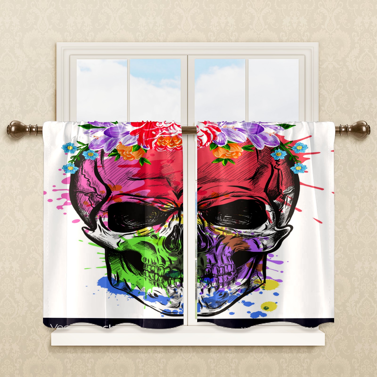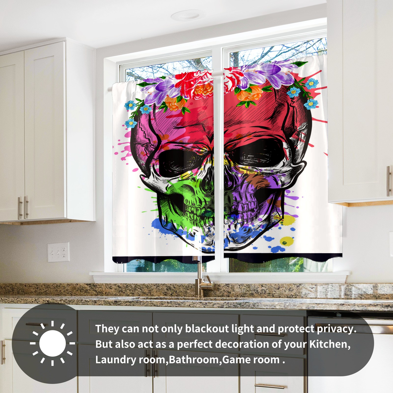 Шторы-панно для дома, декоративные драпировки для гостиной и спальни, легкие и прочные, Skull-and-flowers-sketch-with-watercolor-effect-vector