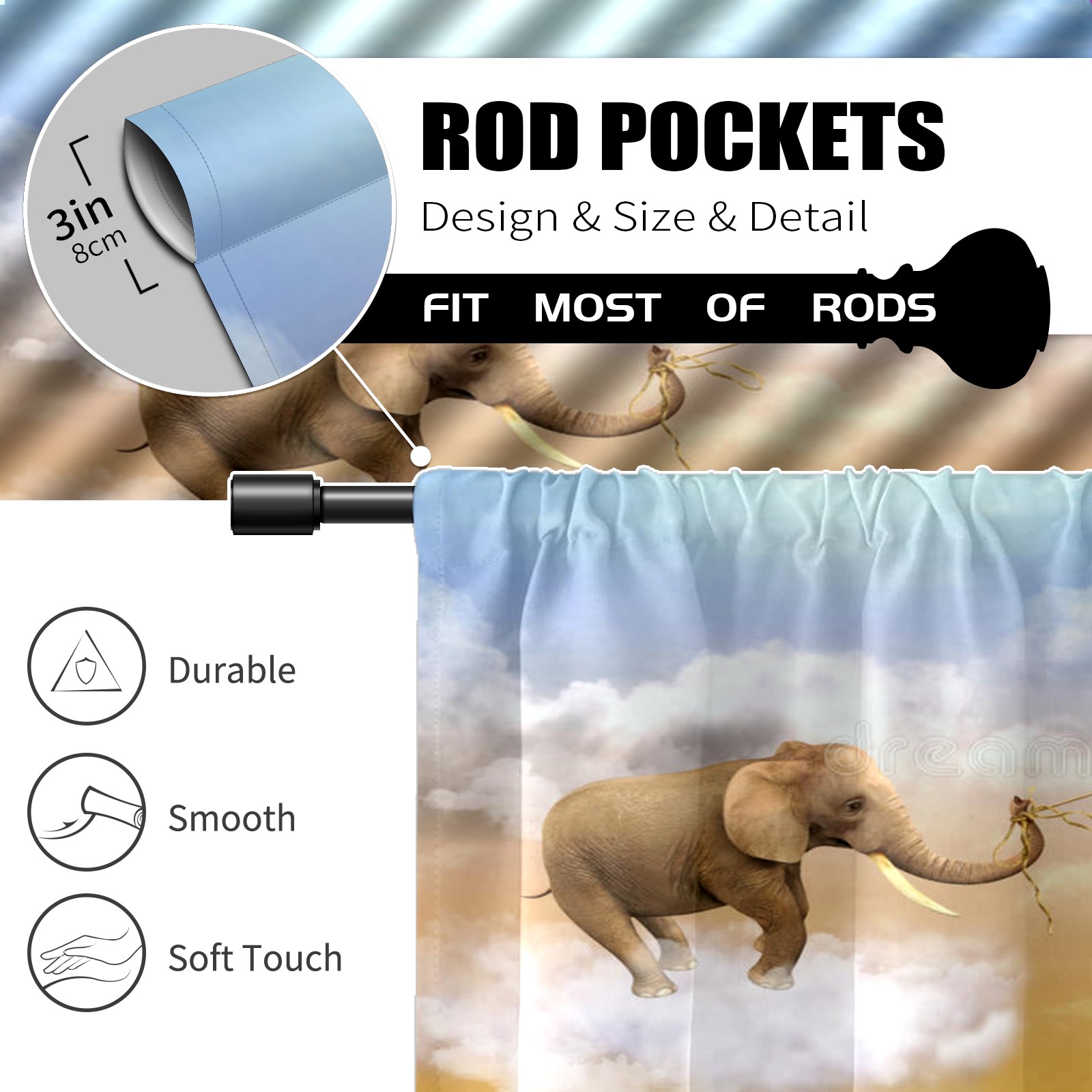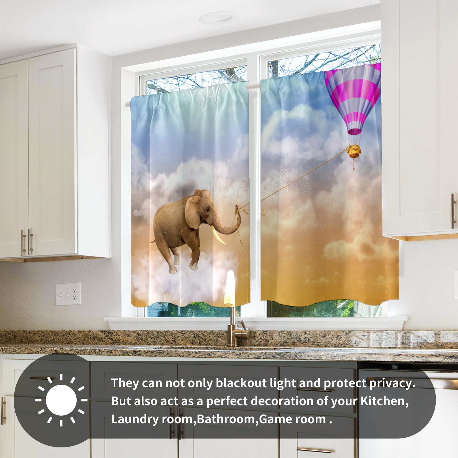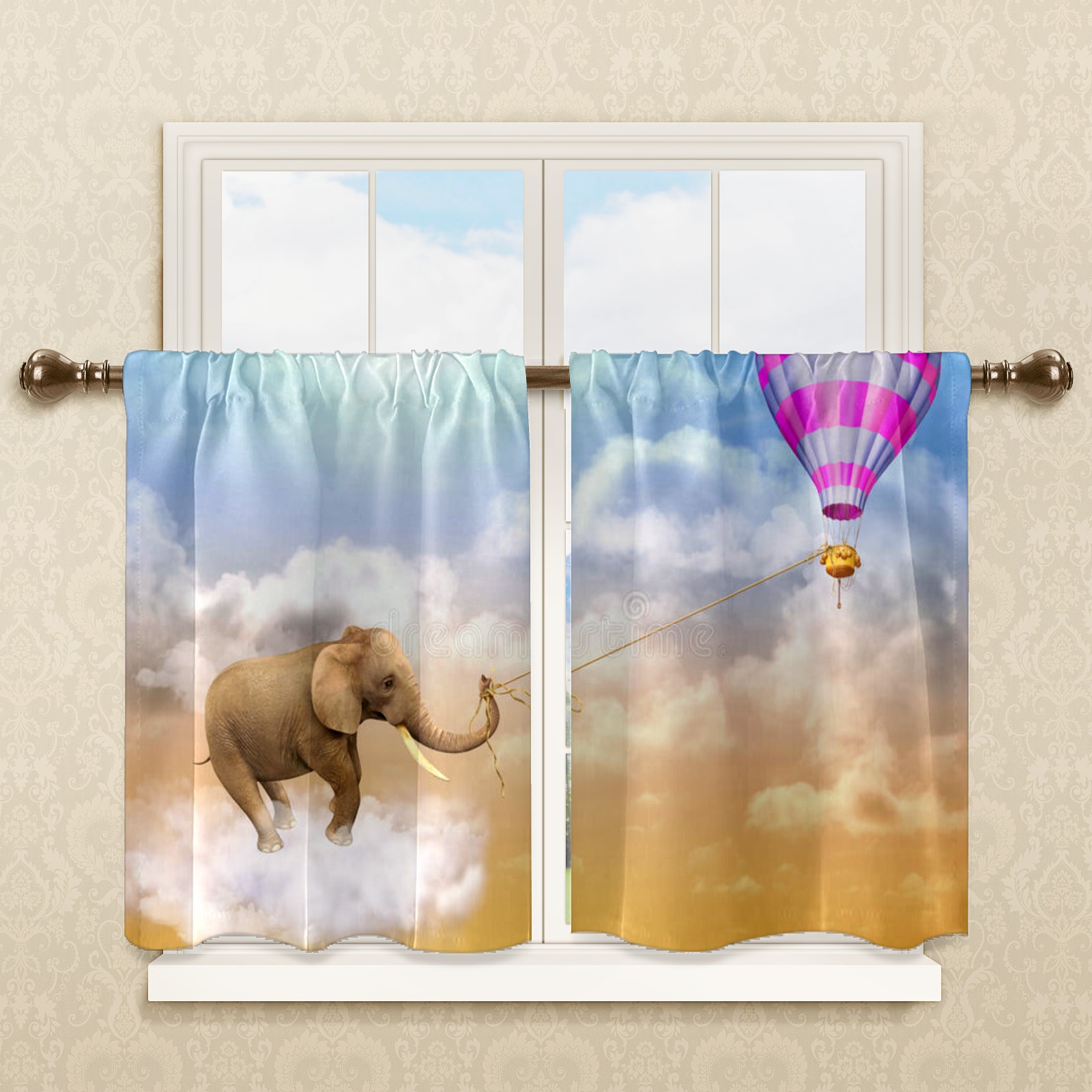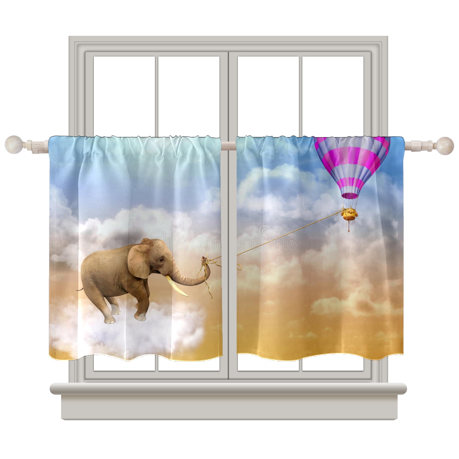 Шторы-панно для дома, декоративные драпировки для гостиной и спальни, легкие и прочные, Elephant-draws-air-balloon-d-illustration