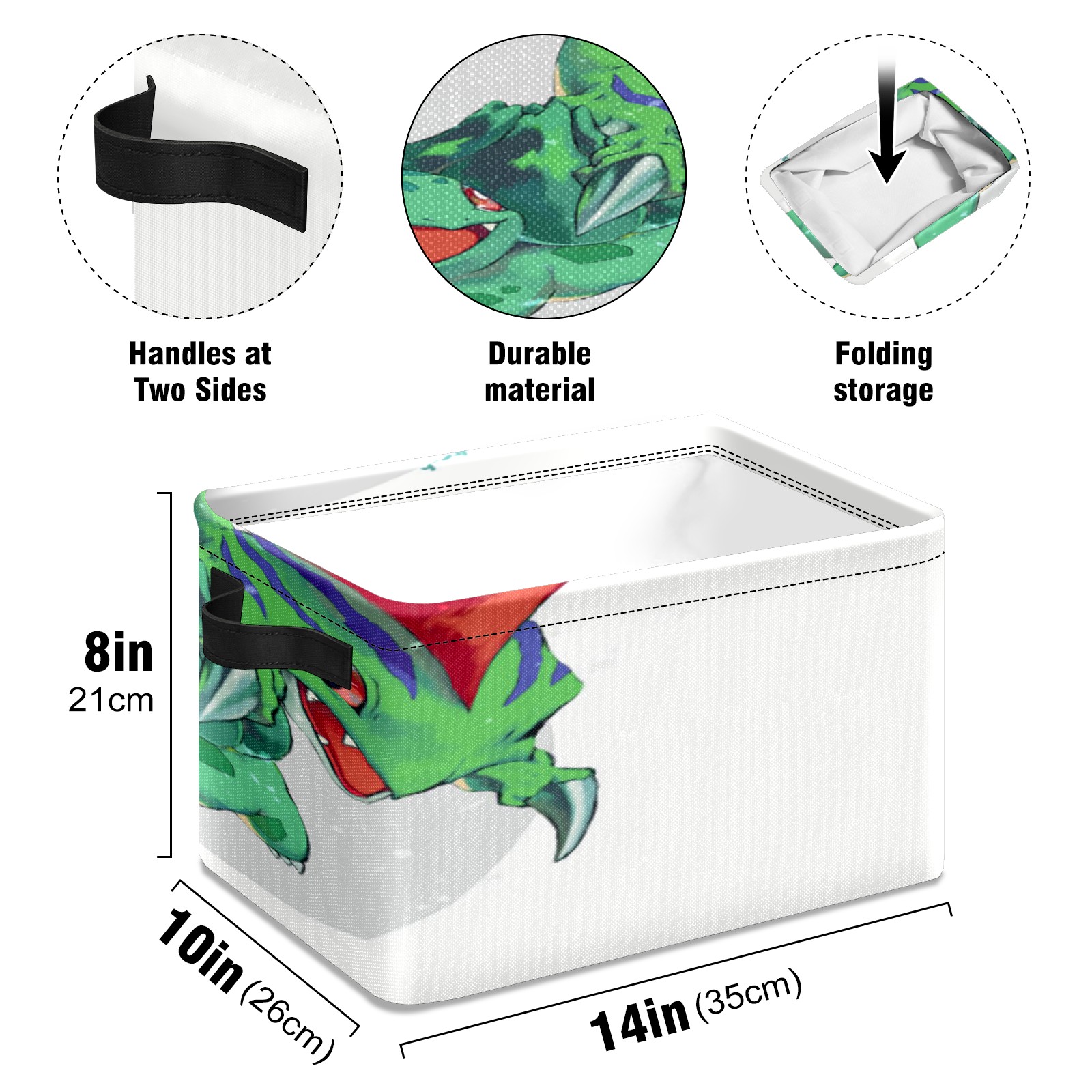 【Материал】Оксфордская ткань из полиэстера 600D; ручки изготовлены из полиэстера. 【Описание материала】Внешняя ткань: Оксфордская ткань полотняного переплетения высокой плотности 300D (ПВХ); Подкладка: белая ткань 750D; Ручки: черная композитная ткань 290T. 【Размер】26x35x21 см (10x14x8 дюймов) 【Описание продукта】Эта корзина для хранения с ручками с обеих сторон предлагает достаточно места для хранения предметов разных размеров, что делает ее подходящей для различных случаев, таких как дом, офис и школа. Ручки с обеих сторон закреплены гвоздями для долговечности. Прочный металлический каркас окружает корзину, поддерживая ее форму. Складная корзина для хранения: Наши корзины для хранения легко складываются, когда не используются. Эти ящики для хранения изготовлены из легко моющейся оксфордской ткани и при необходимости могут быть аккуратно протерты мягким мылом и водой. Из-за внутреннего металлического каркаса и жесткого дна машинная стирка не рекомендуется. 【Подходящие сценарии использования】Дом, офис и школа 【Инструкции по стирке】Рекомендуется ручная стирка; избегайте длительного воздействия прямых солнечных лучей.