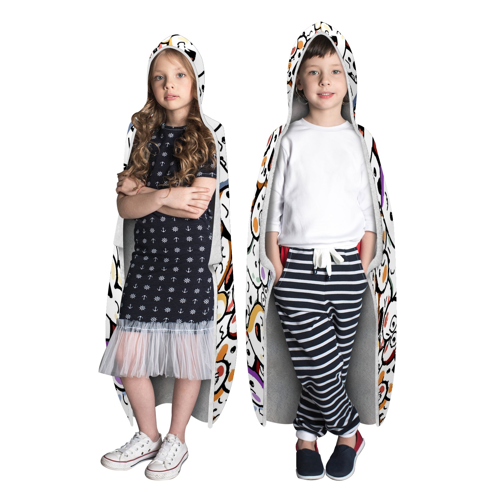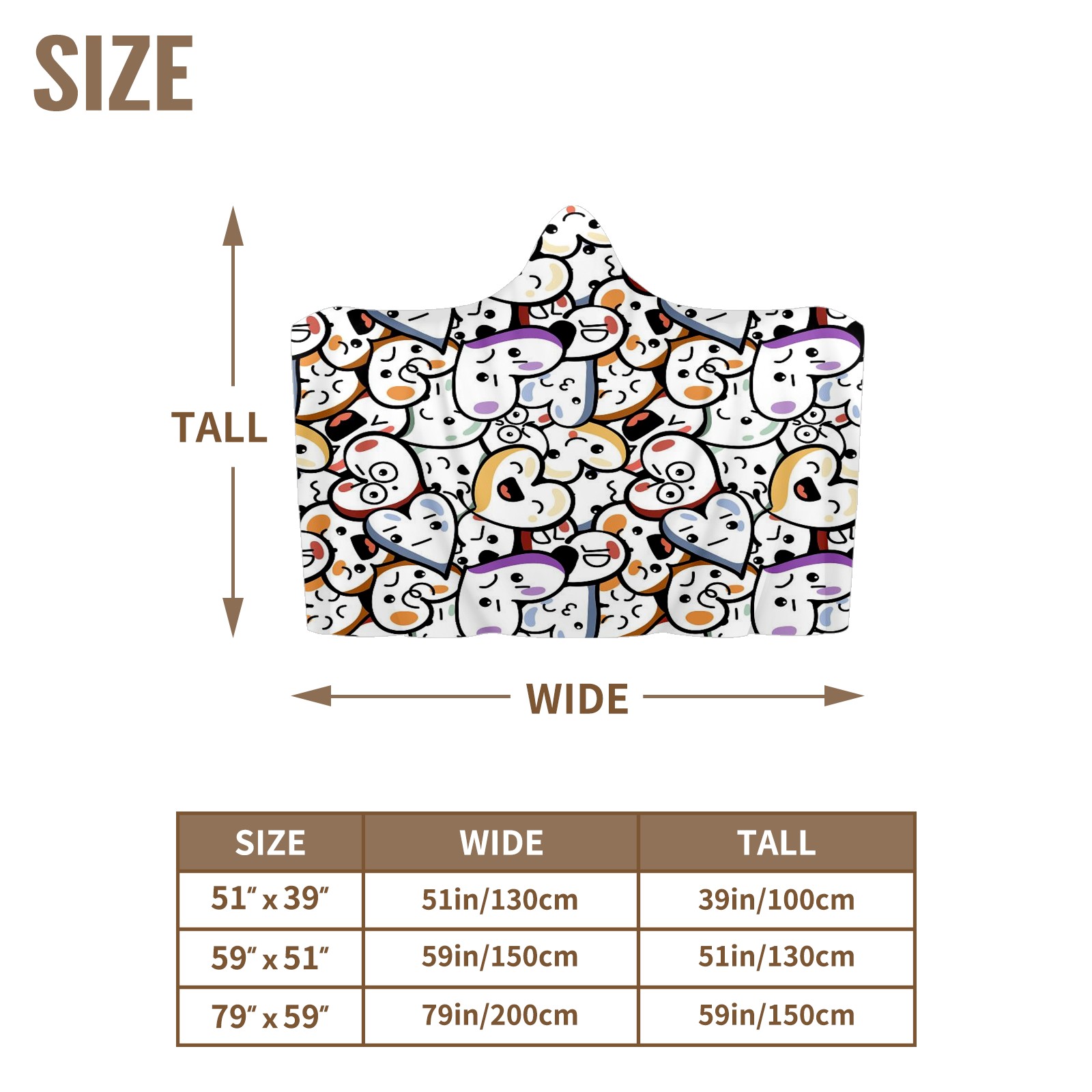 【Материал】Полиэстер + коралловый флис 【Принт】Напечатано на лицевой стороне 【Размер】100x130 см/39x51 дюйм 130x150 см/51x59 дюймов 150x200 см/59x79 дюймов 【Подходящие случаи】Пушистое одеяло с капюшоном, действительно большого размера, подходит как для мужчин, так и для женщин. Теплое и уютное, идеально подходит для приятного времяпрепровождения. Идеально подходит для отдыха дома, просмотра телевизора, игр, чтения, сна или любых походов и мероприятий на природе. Капюшон одеяла закрывает плечи и руки, позволяя свободно двигаться и использовать руки. Идеальный размер как для женщин, так и для мужчин. Прекрасный и продуманный подарок для семьи, друзей и партнеров. 【Рекомендации по стирке】Машинная стирка, не отбеливать, сушить в сушилке при низкой температуре.