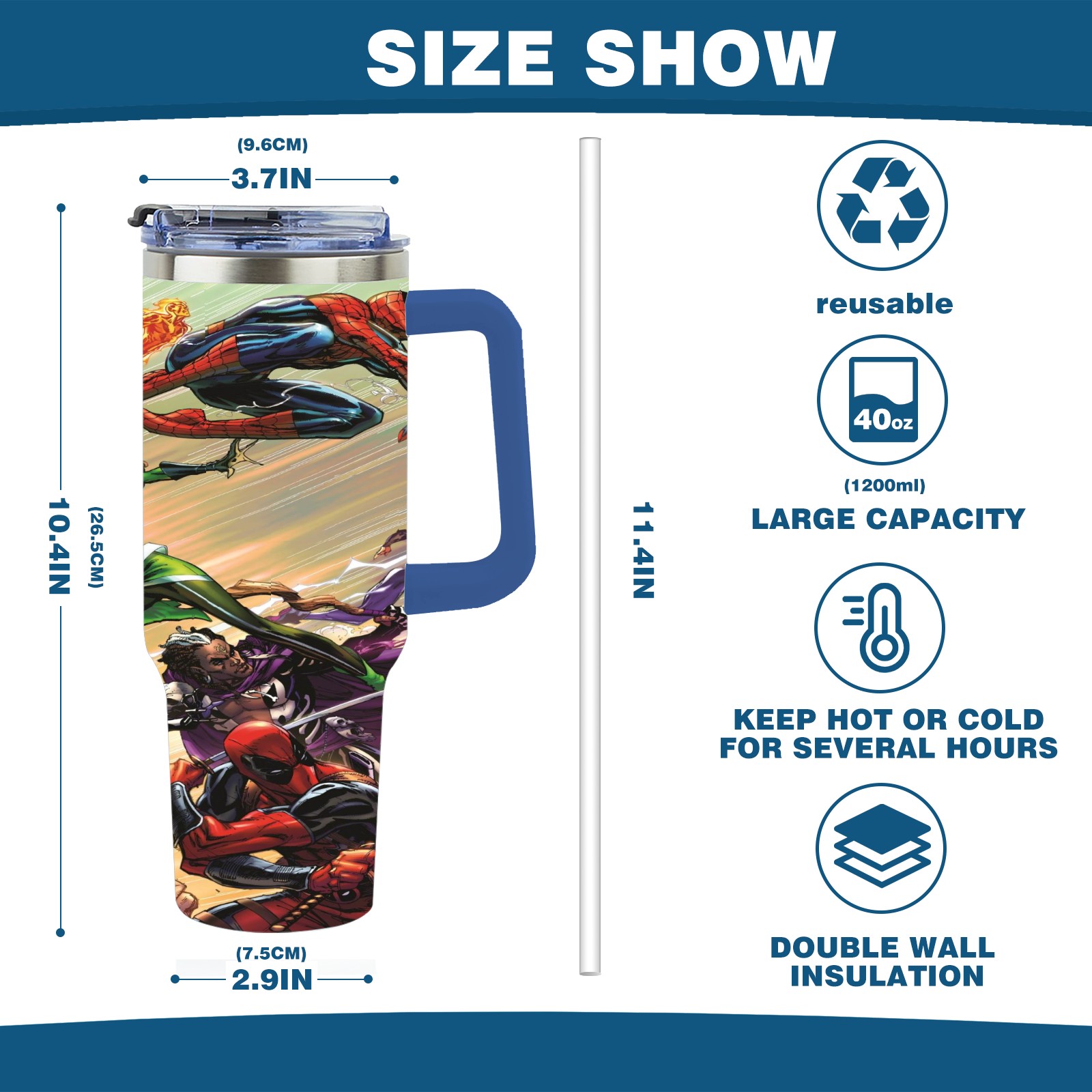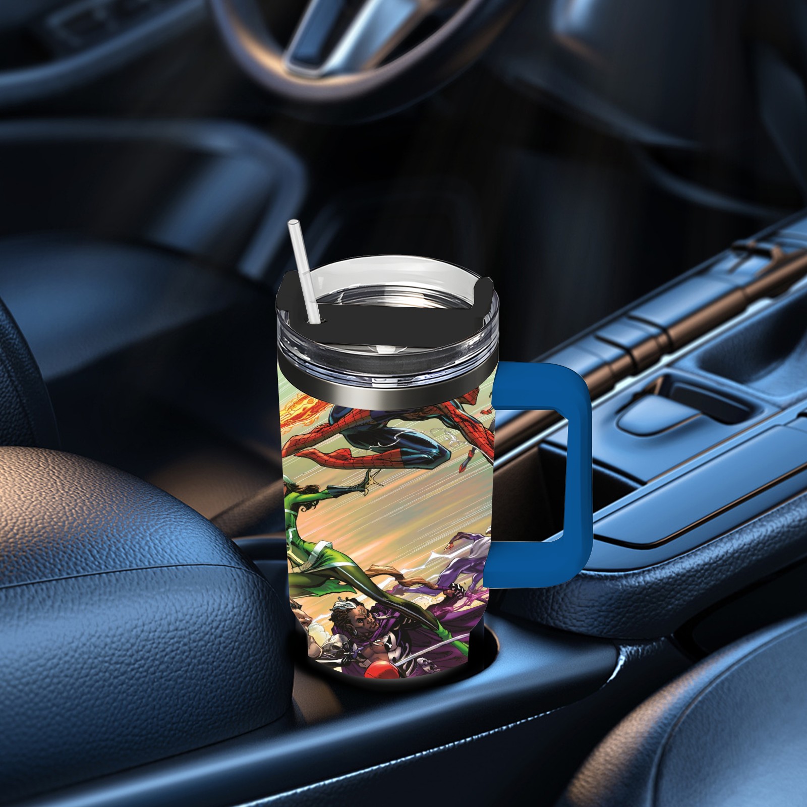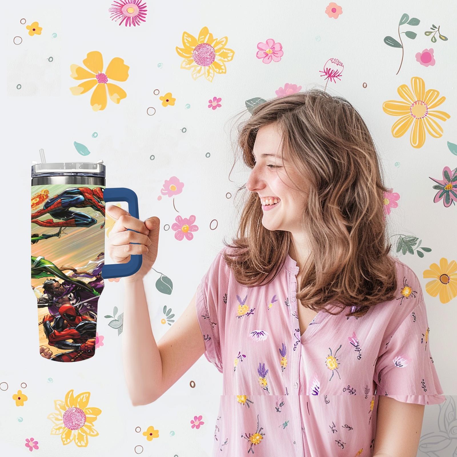 40oz 漫威 (1204) thermos with lid and straw, leak-proof stainless steel, with handle, spill-proof bottle, convenient for travel(pink)