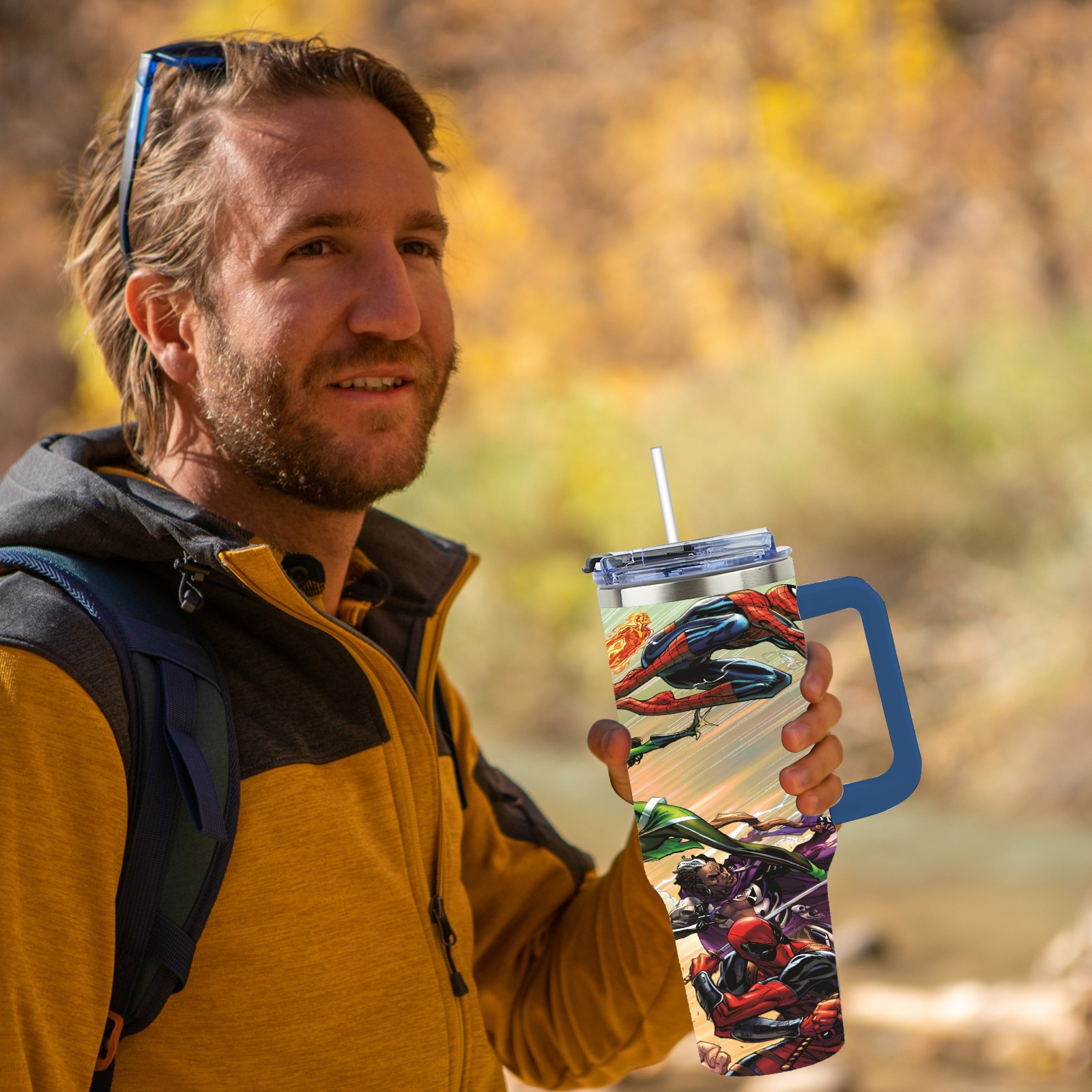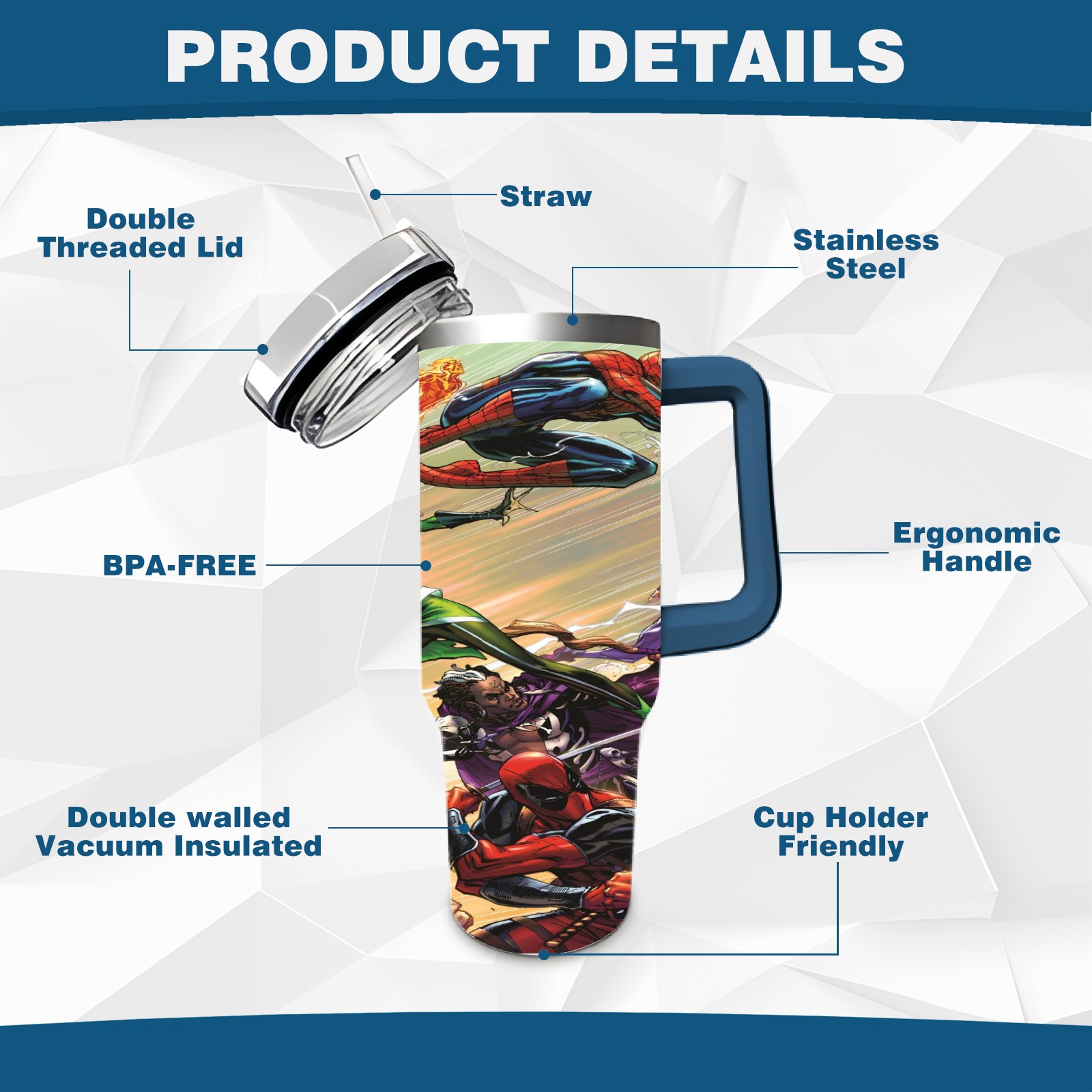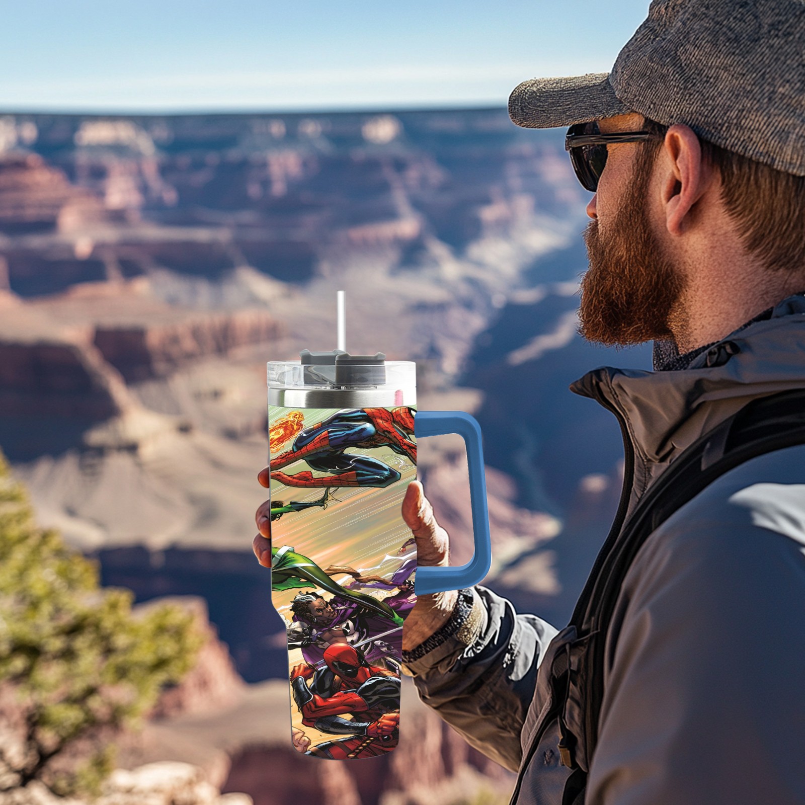 40oz 漫威 (1204) thermos with lid and straw, leak-proof stainless steel, with handle, spill-proof bottle, convenient for travel(pink)