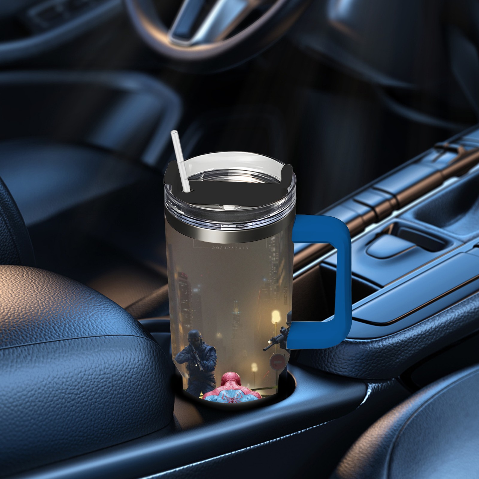 40oz 漫威 (1196) thermos with lid and straw, leak-proof stainless steel, with handle, spill-proof bottle, convenient for travel(pink)