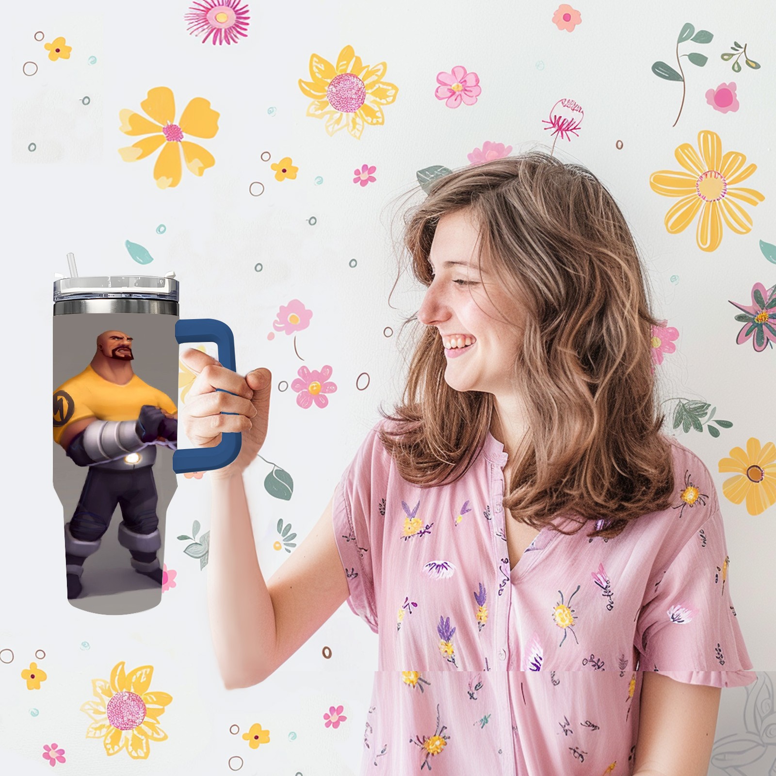 40oz 漫威 (1210) thermos with lid and straw, leak-proof stainless steel, with handle, spill-proof bottle, convenient for travel(pink)