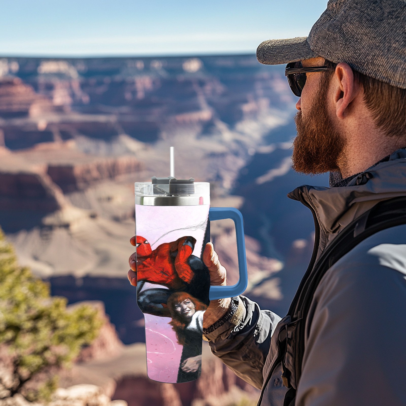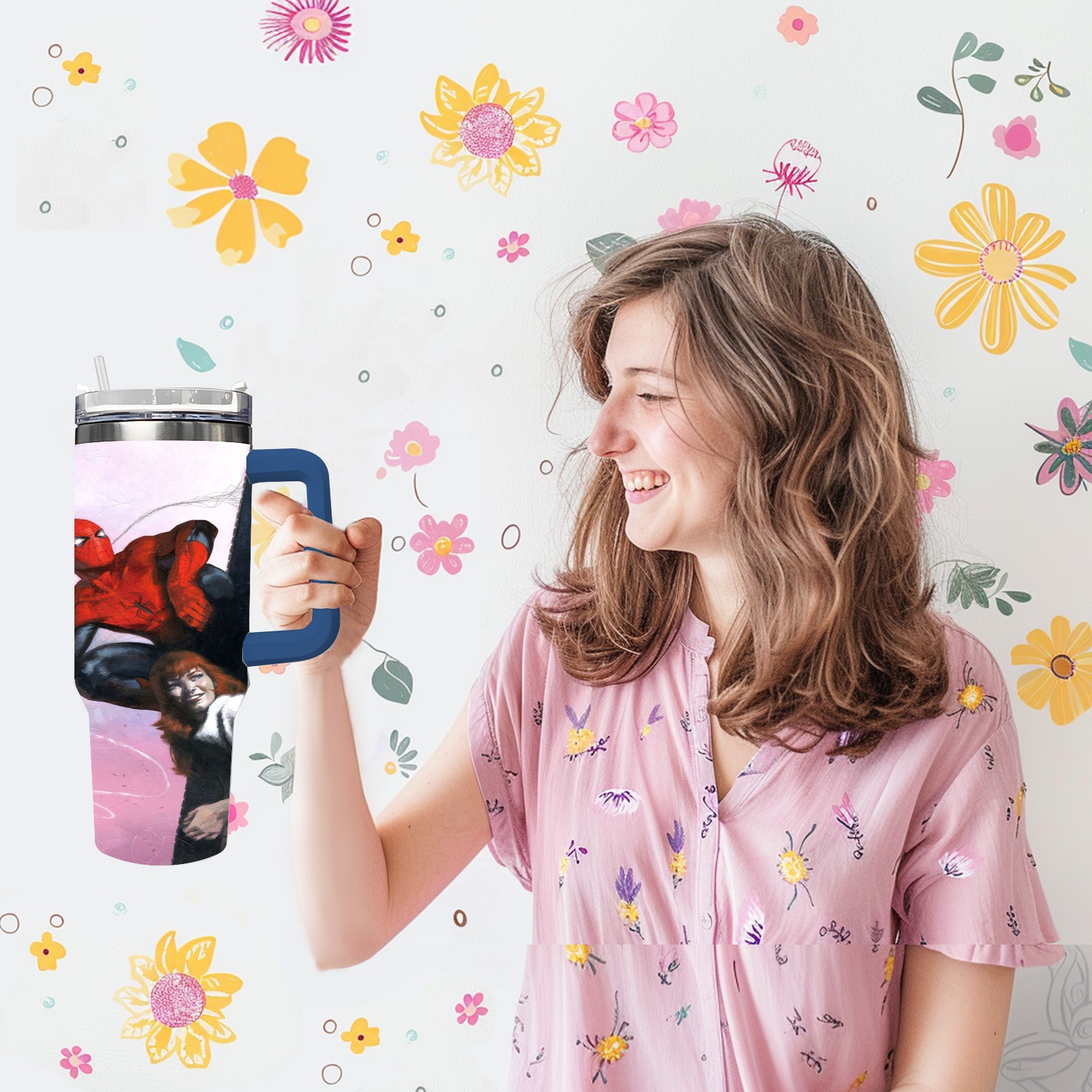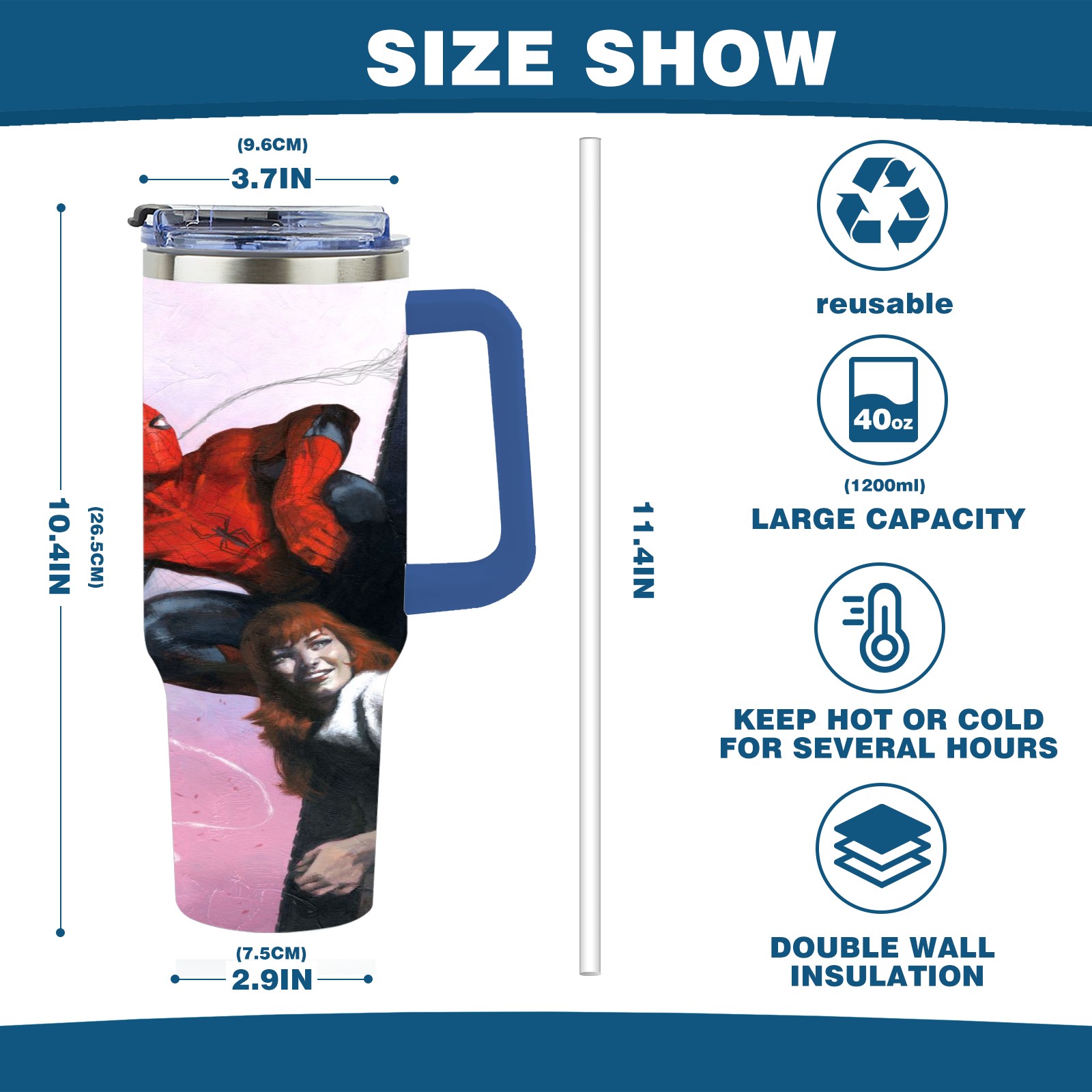 40oz 漫威 (1206) thermos with lid and straw, leak-proof stainless steel, with handle, spill-proof bottle, convenient for travel(pink)