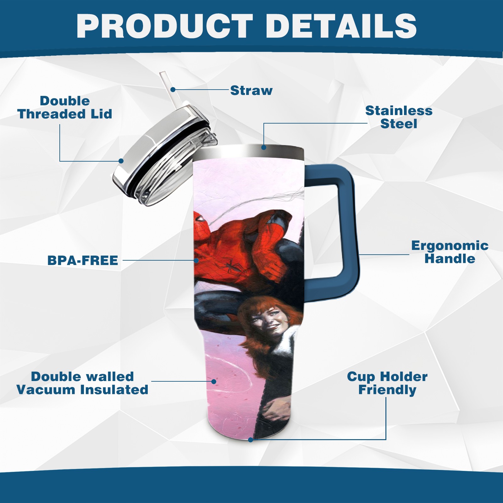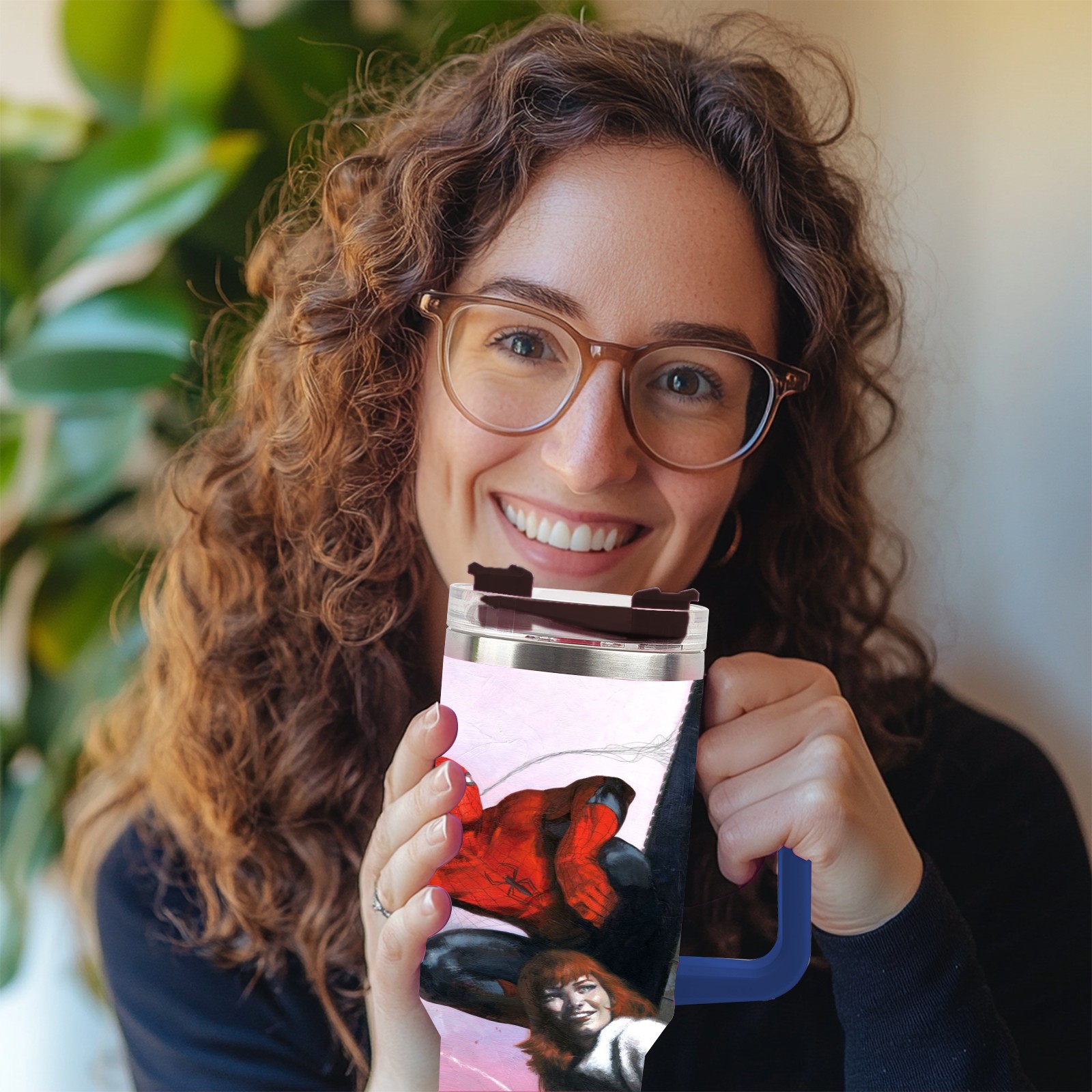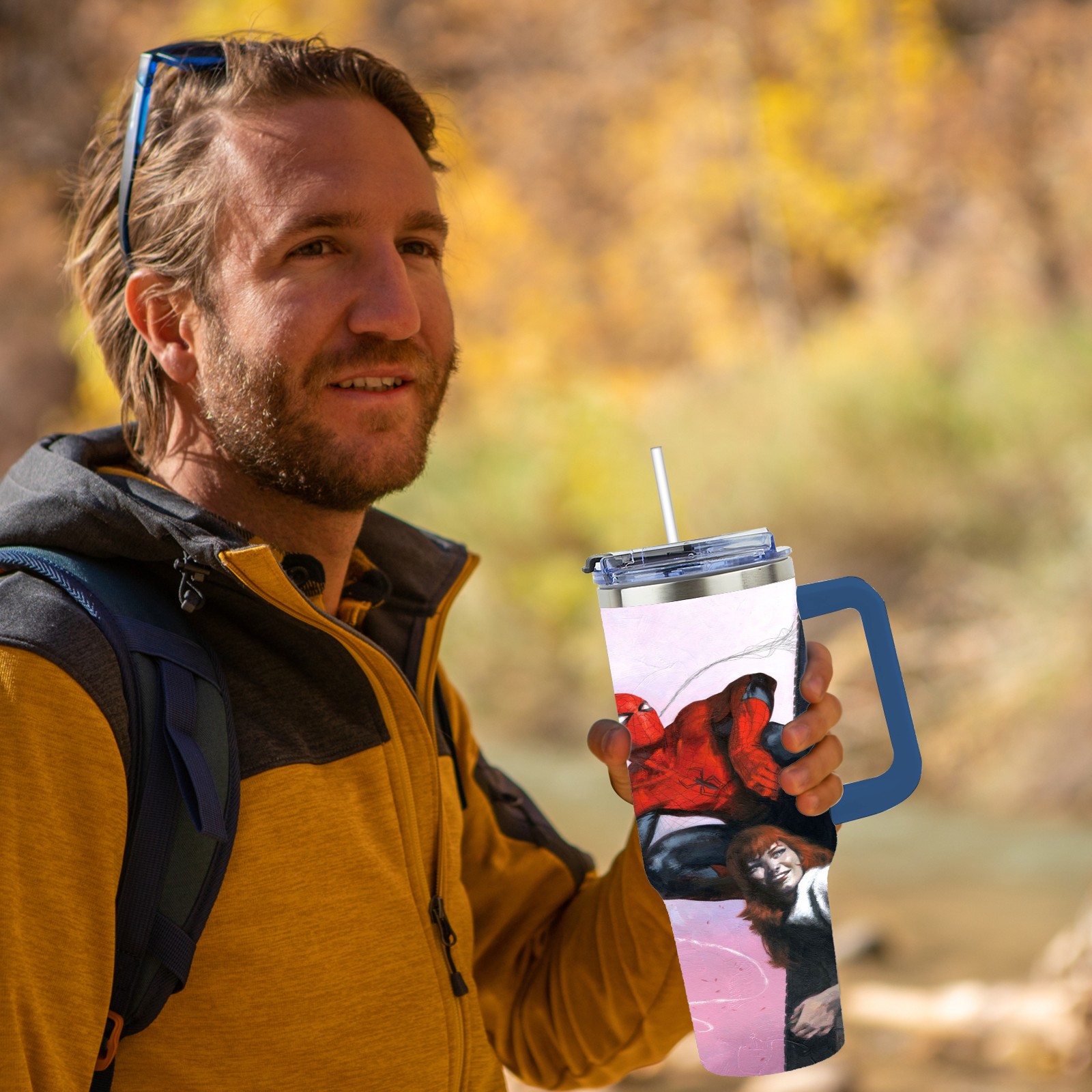 40oz 漫威 (1206) thermos with lid and straw, leak-proof stainless steel, with handle, spill-proof bottle, convenient for travel(pink)