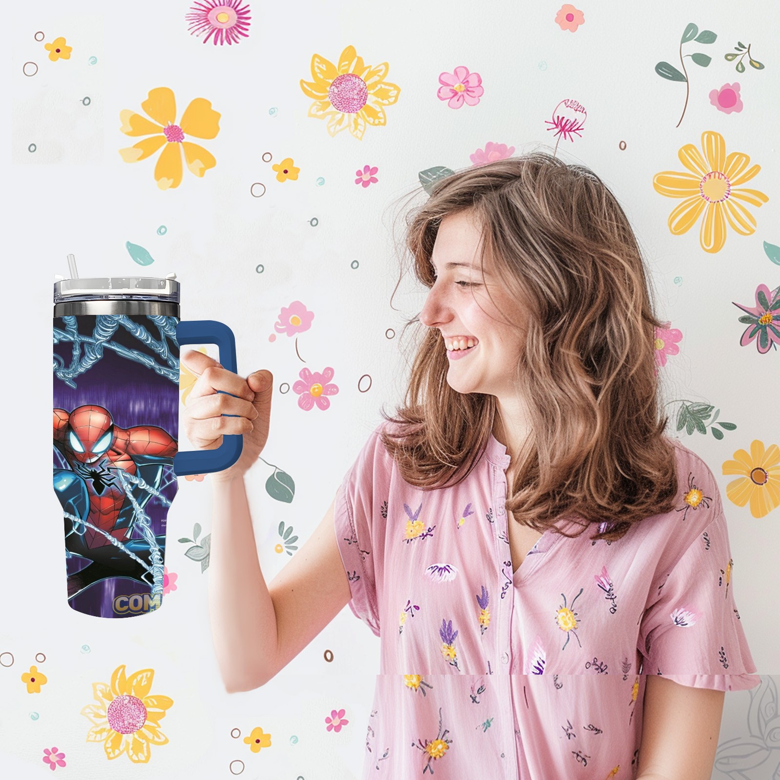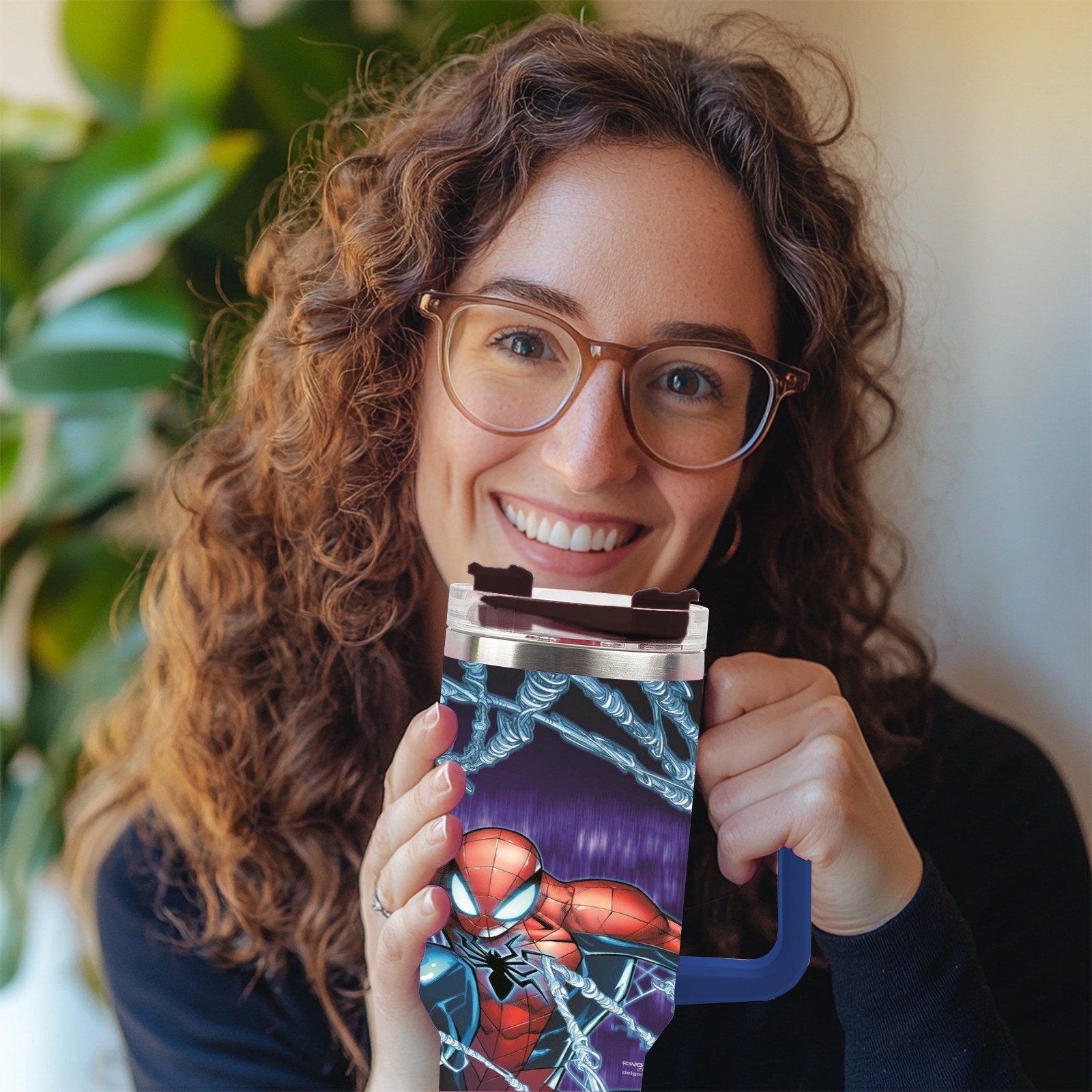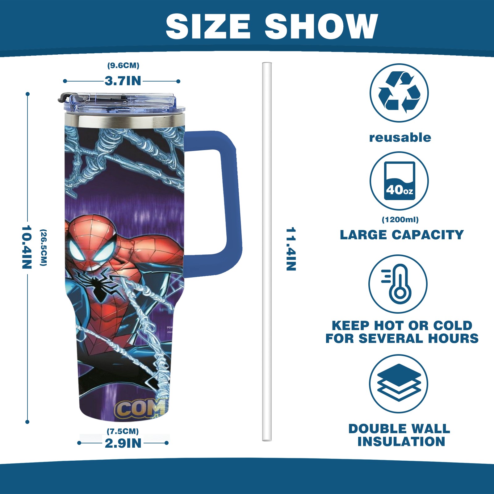 40oz 漫威 (1200) thermos with lid and straw, leak-proof stainless steel, with handle, spill-proof bottle, convenient for travel(pink)