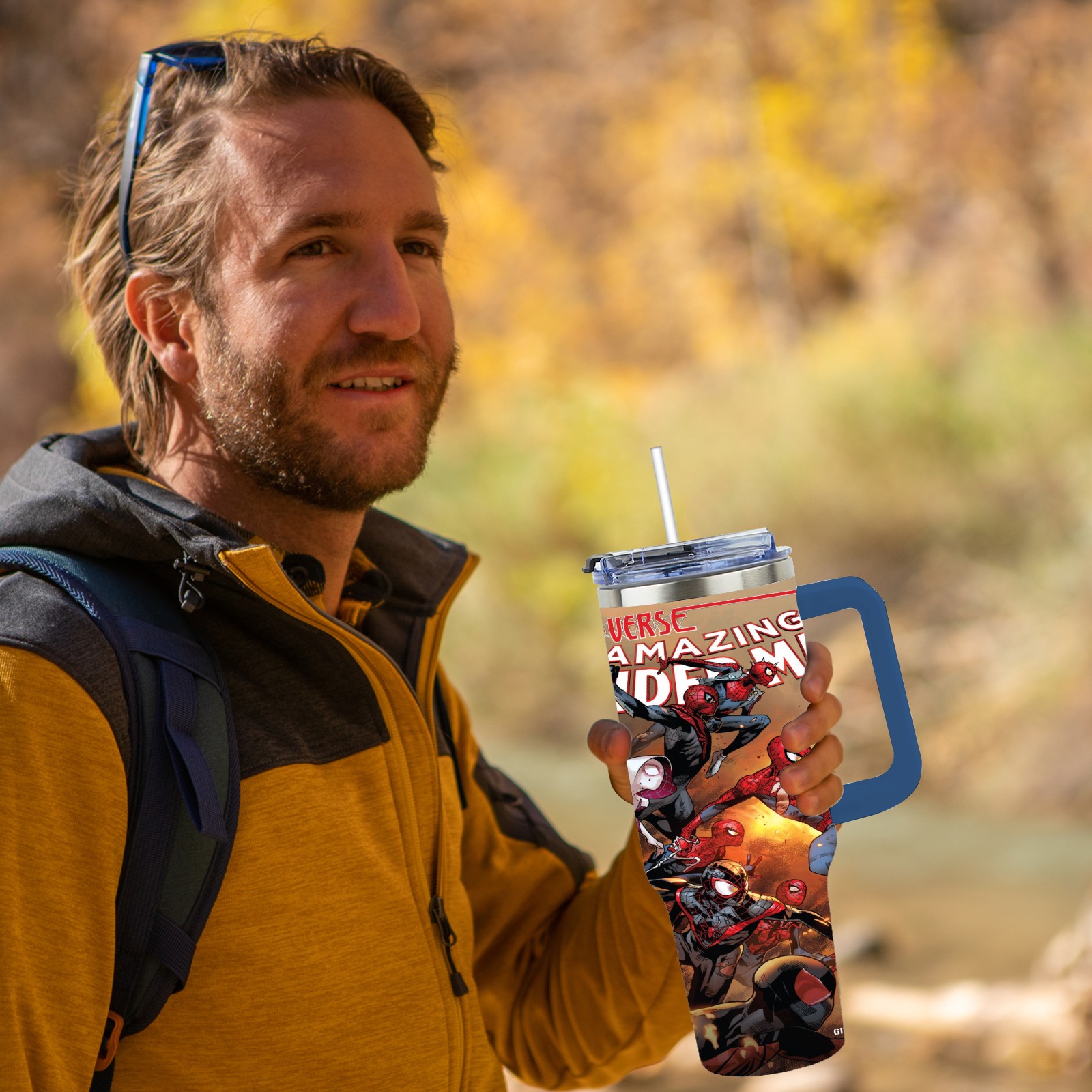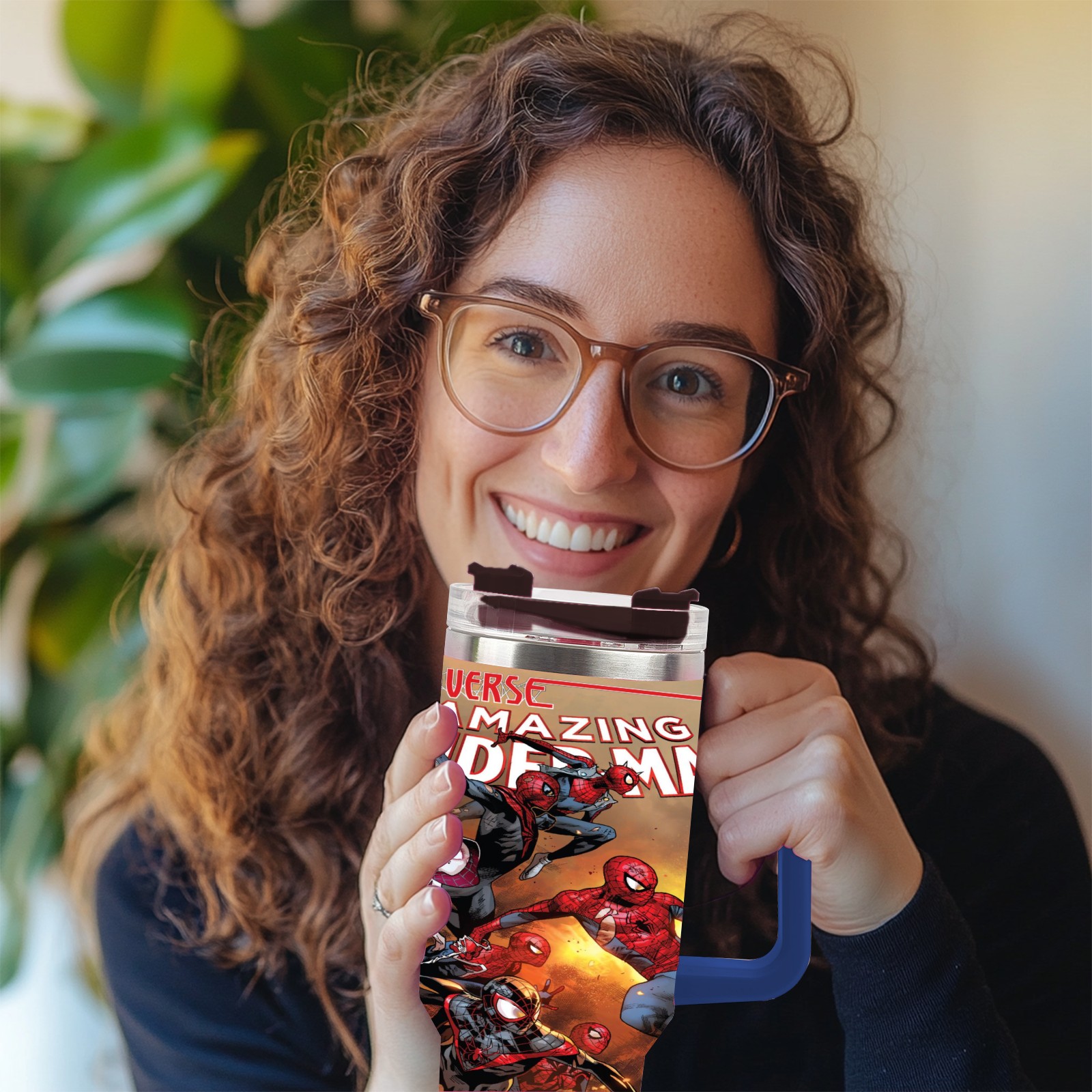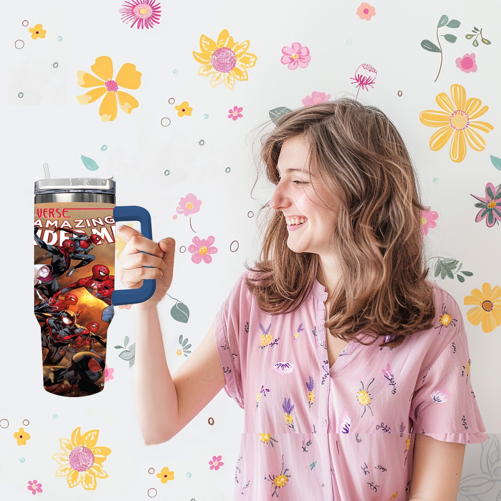 40oz 漫威 (1195) thermos with lid and straw, leak-proof stainless steel, with handle, spill-proof bottle, convenient for travel(pink)