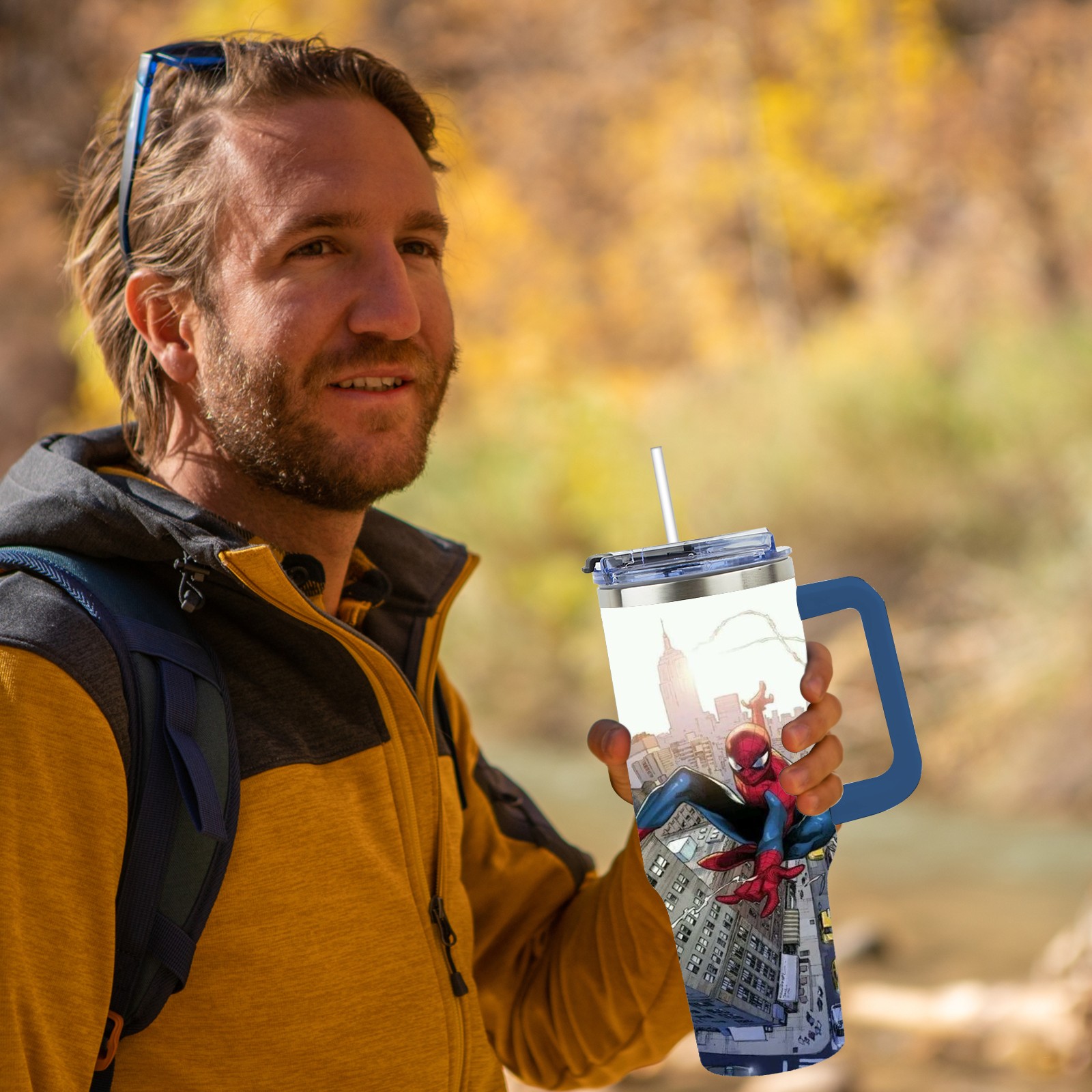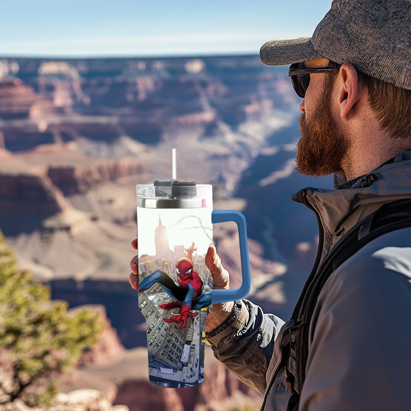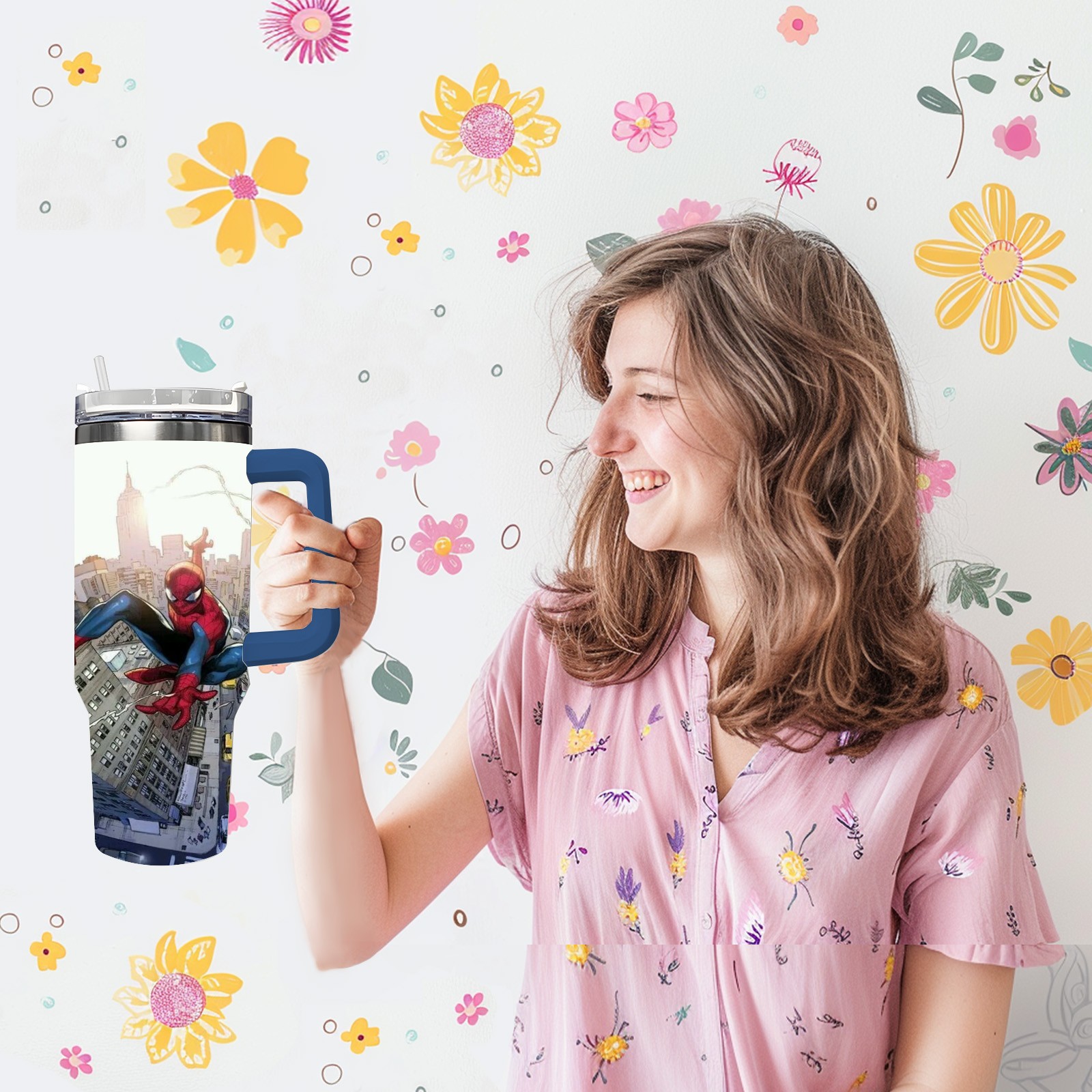 40oz 漫威 (1193) thermos with lid and straw, leak-proof stainless steel, with handle, spill-proof bottle, convenient for travel(pink)