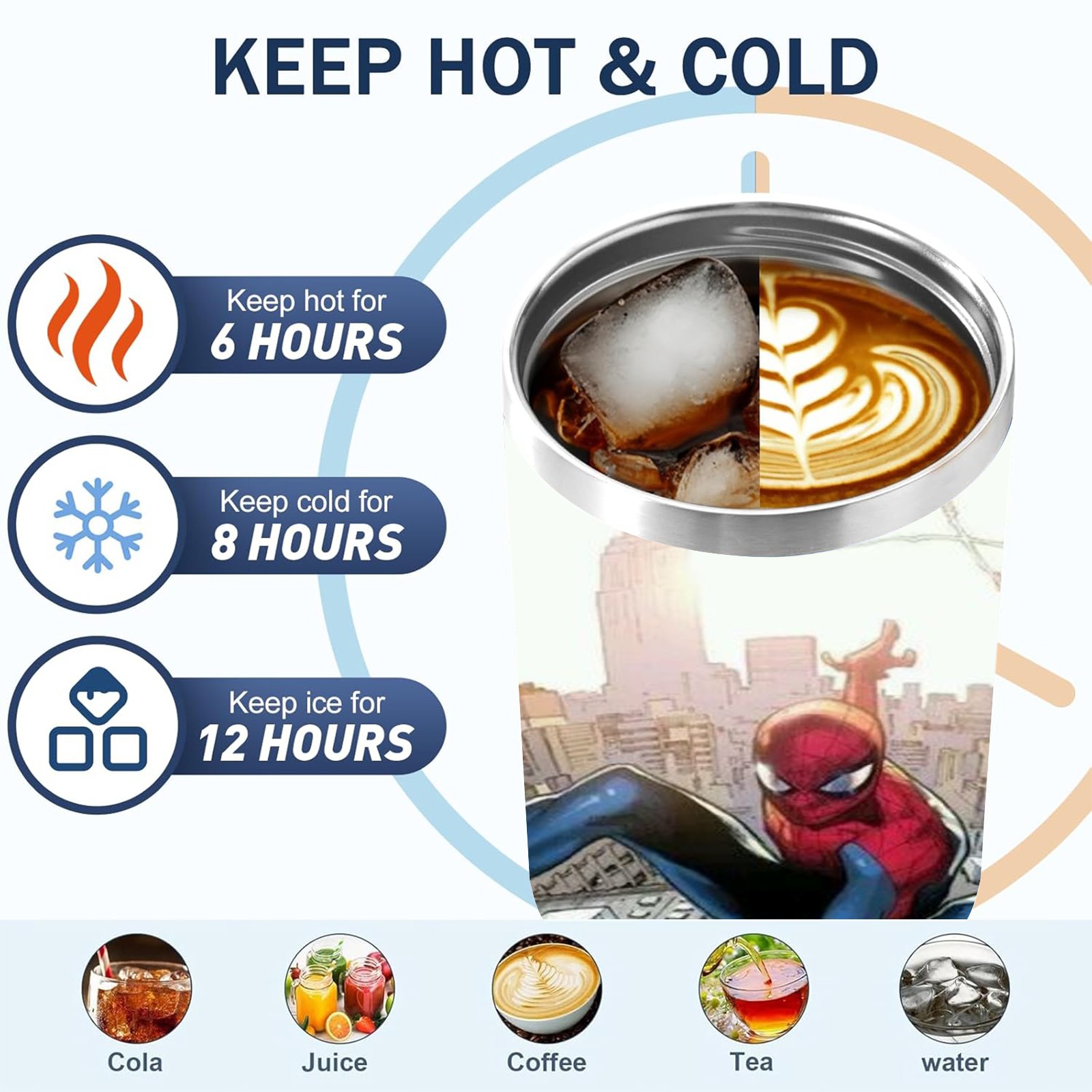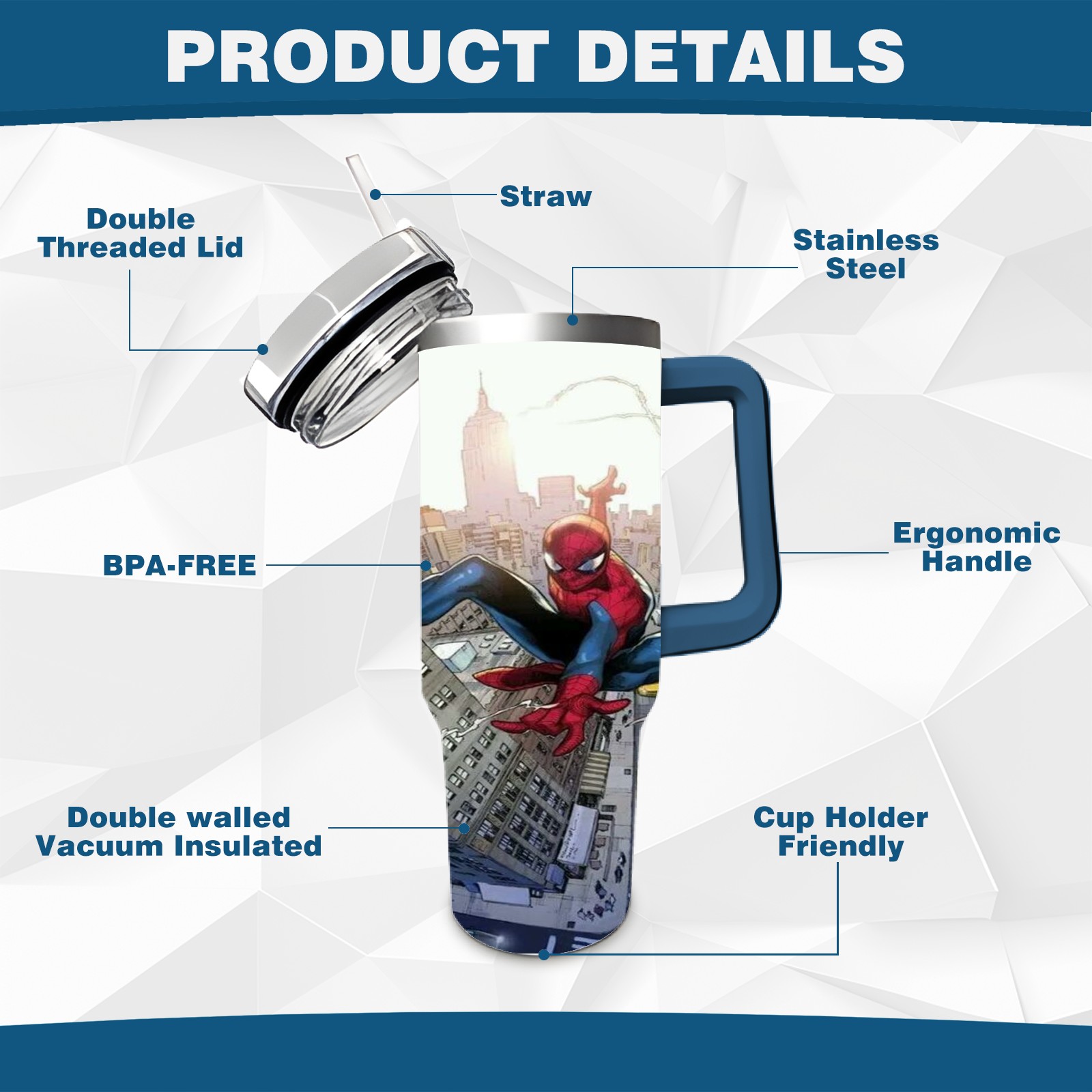 • <p>This multi-functional insulated water bottle features a simple and practical design, suitable for various daily scenarios. The ergonomic handle allows for easy one-handed drinking, and the detachable handle can be adjusted or removed as needed, making it convenient for commuting, exercising, or carrying to meetings. Made of high-quality stainless steel, it is BPA-free and features double-walled vacuum insulation technology that keeps drinks cold for 8 hours and hot for 6 hours, ensuring you can enjoy your beverage at the perfect temperature anytime, anywhere. The 40-ounce Christmas edition comes with a sliding lid, silicone straw, and a non-slip design. Accessories are dishwasher safe, and the narrow bottom and wide mouth design perfectly fits car cup holders. The exclusive flip-top straw lid is environmentally friendly and durable, with a one-touch leak-proof closure and two drinking modes: sip and gulp. A dust cover provides effective protection. This bottle is suitable for travel, office work, sports, camping, and other occasions, making it a thoughtful gift for friends and family.</p>