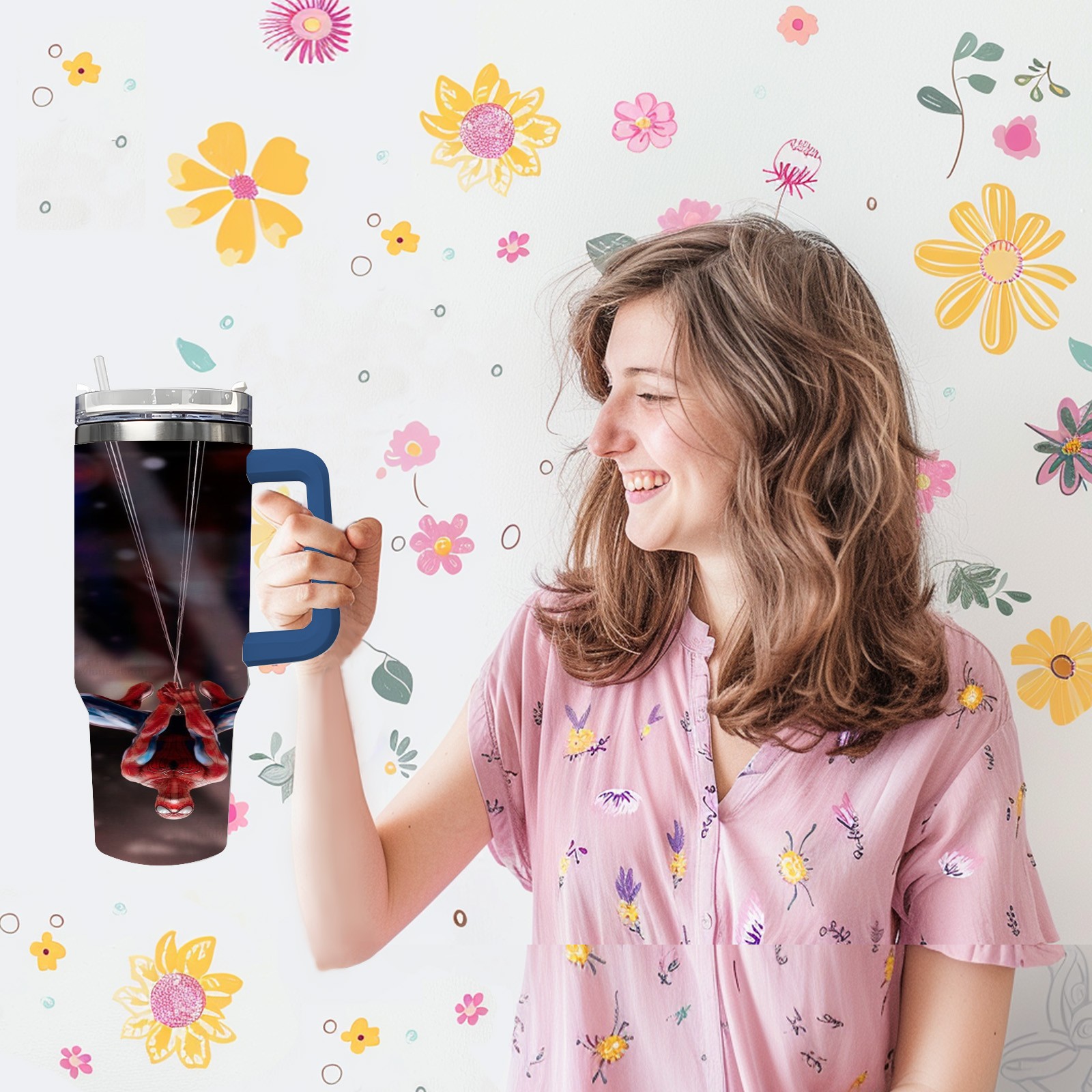 40oz 漫威 (1191) thermos with lid and straw, leak-proof stainless steel, with handle, spill-proof bottle, convenient for travel(pink)