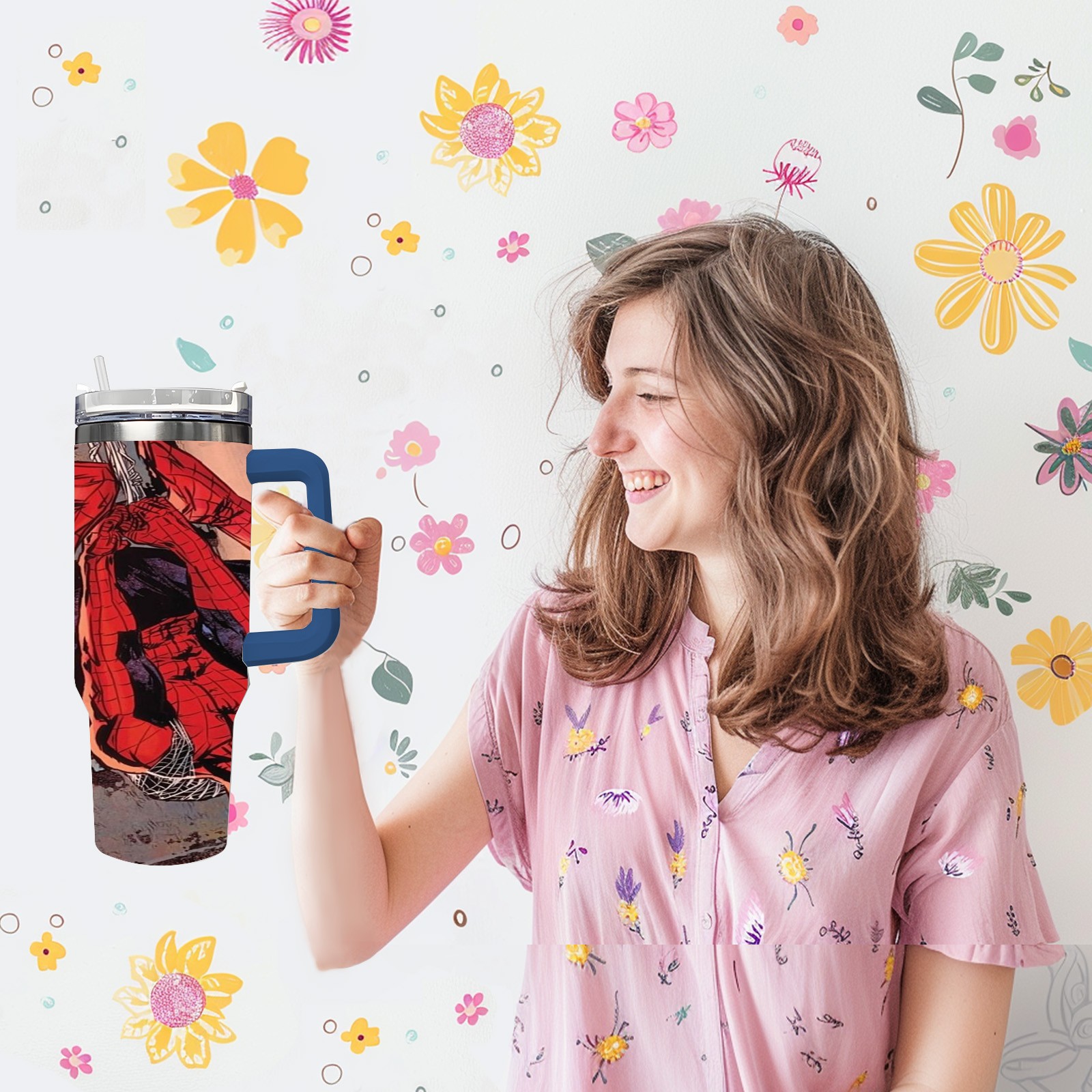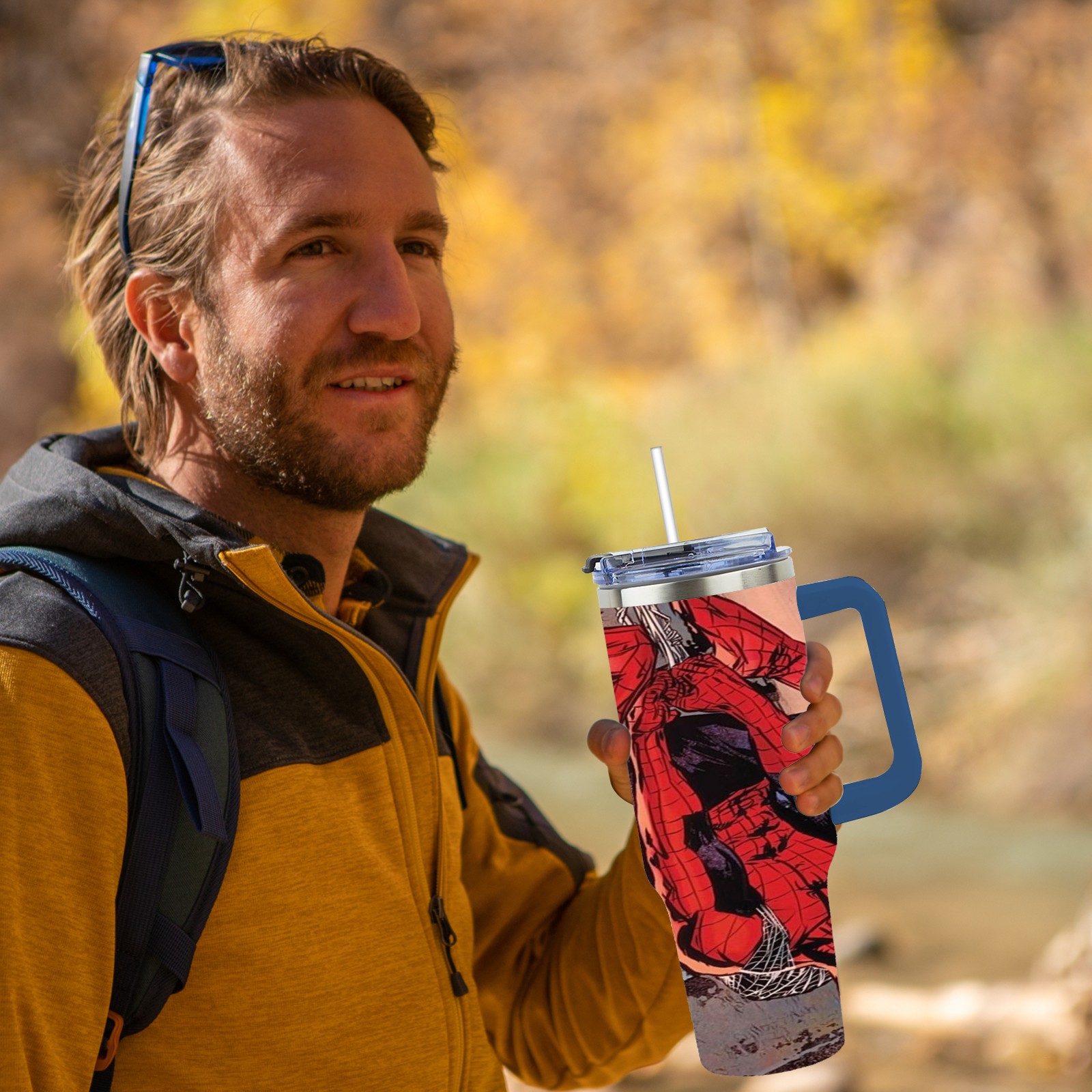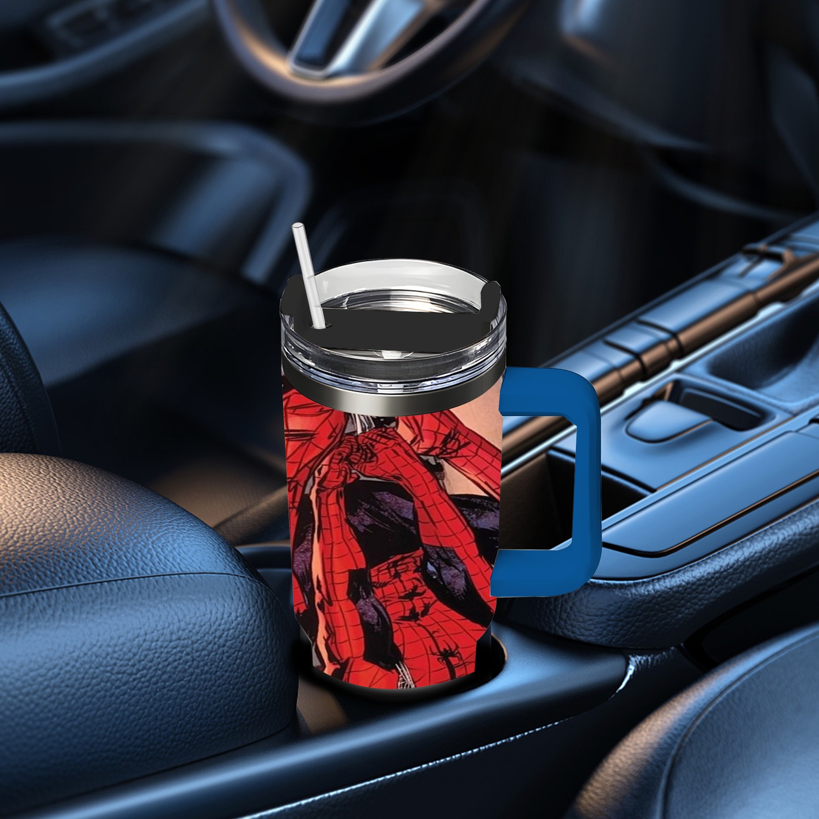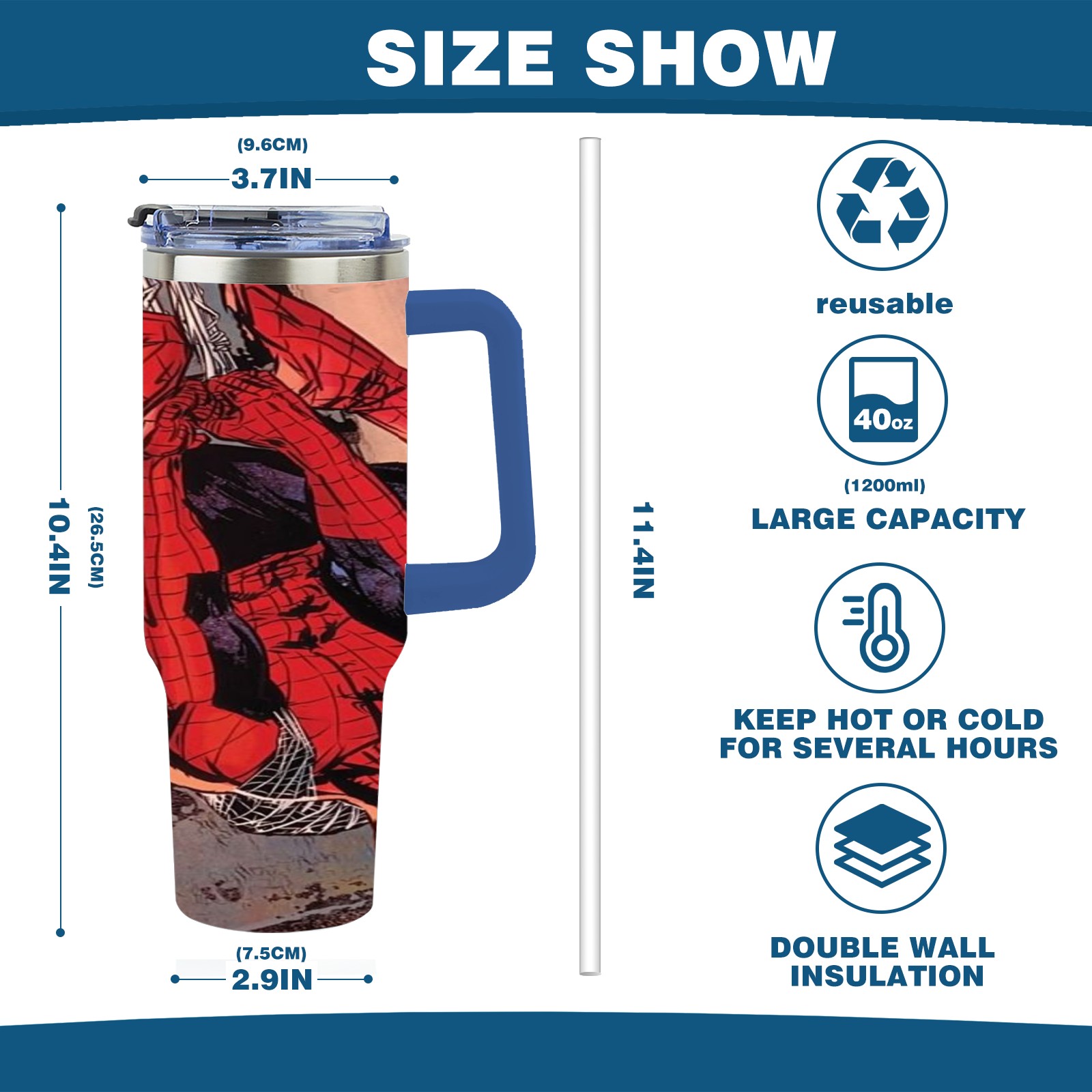 40oz 漫威 (1190) thermos with lid and straw, leak-proof stainless steel, with handle, spill-proof bottle, convenient for travel(pink)