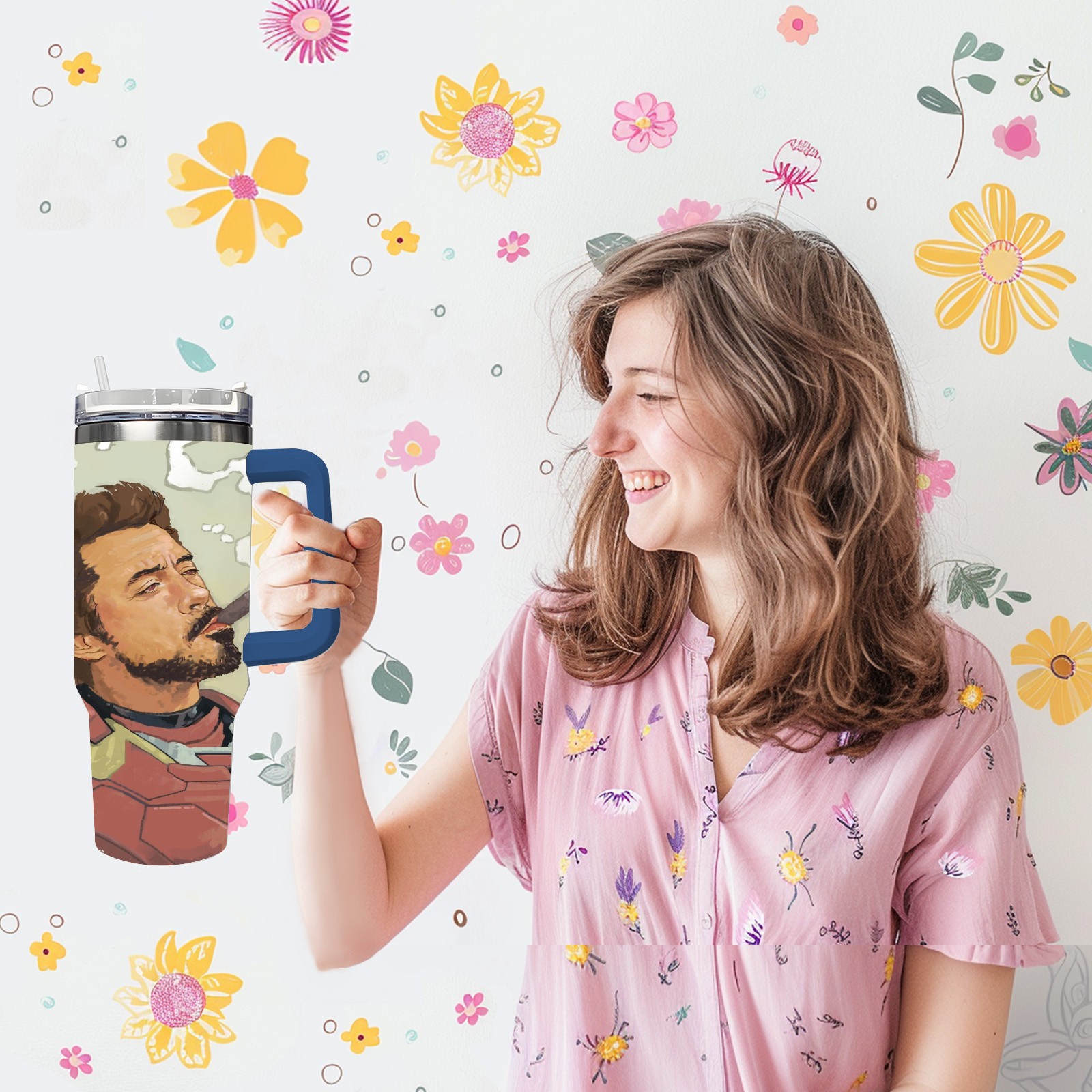 40oz 漫威 (1181) thermos with lid and straw, leak-proof stainless steel, with handle, spill-proof bottle, convenient for travel(pink)