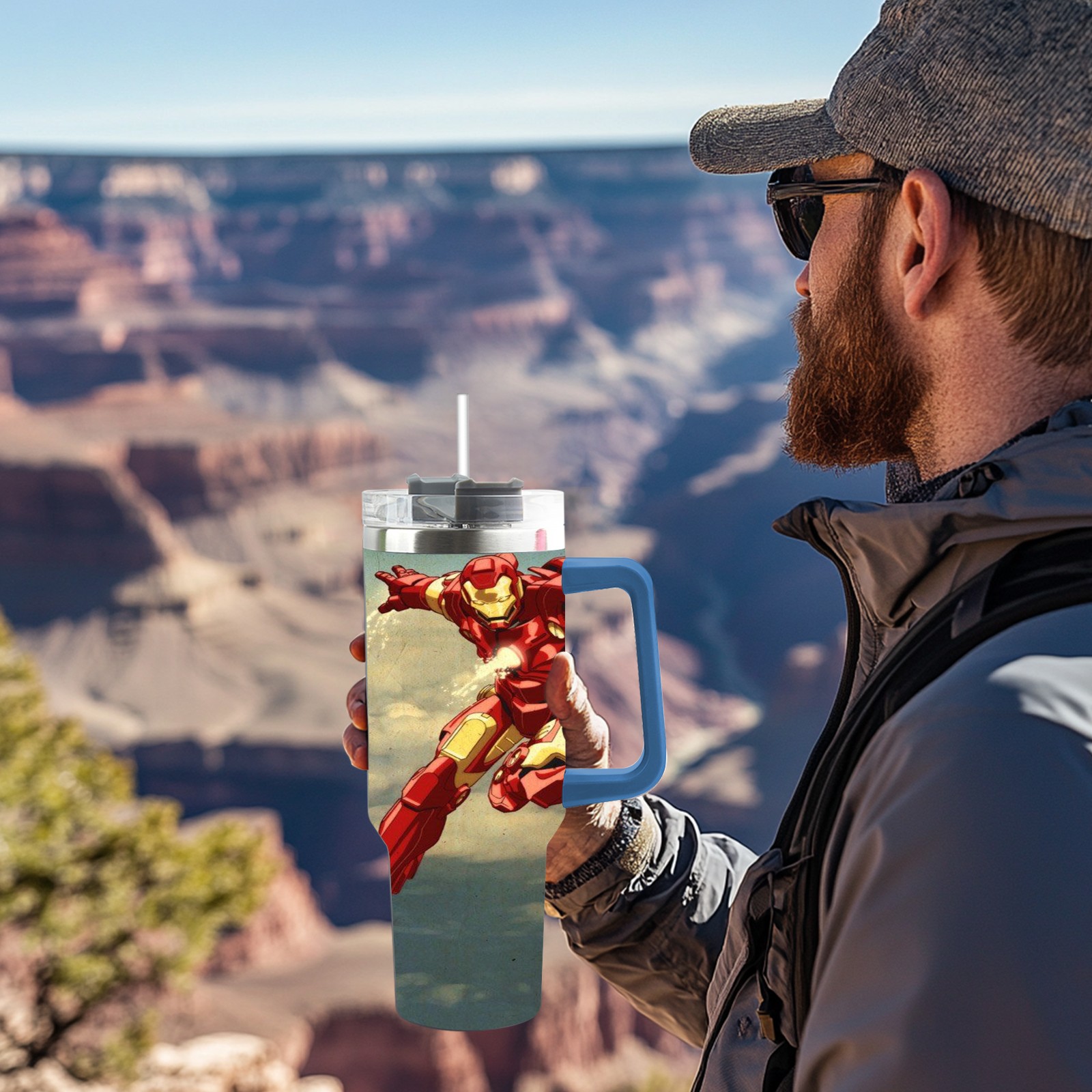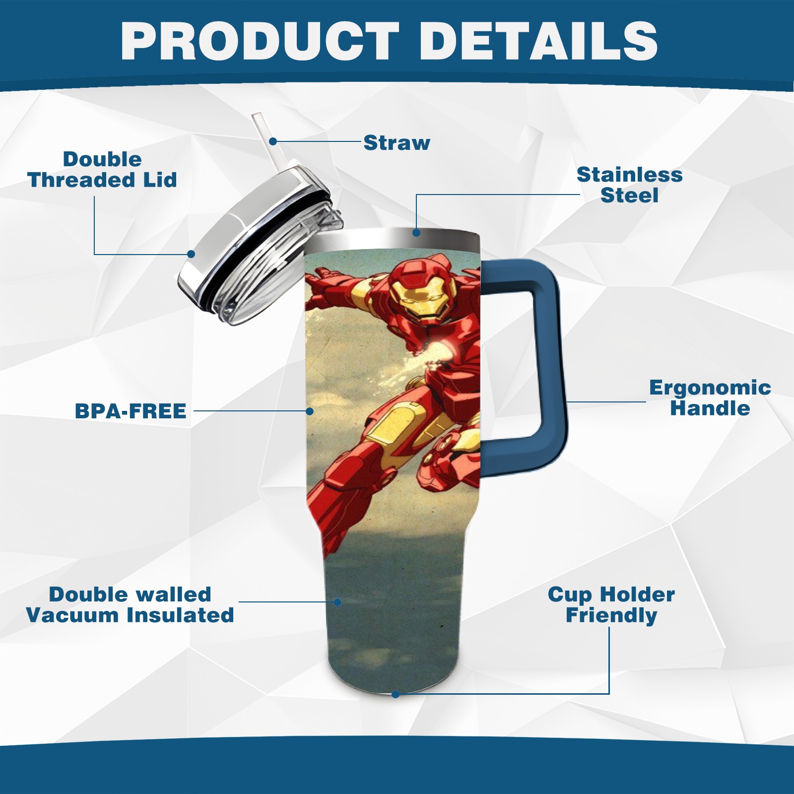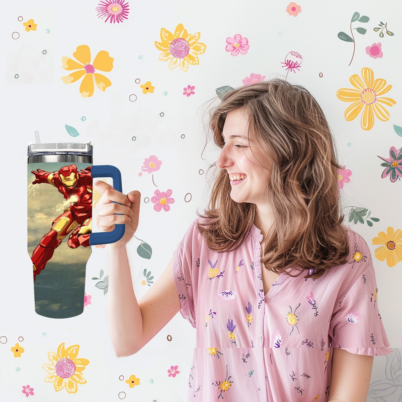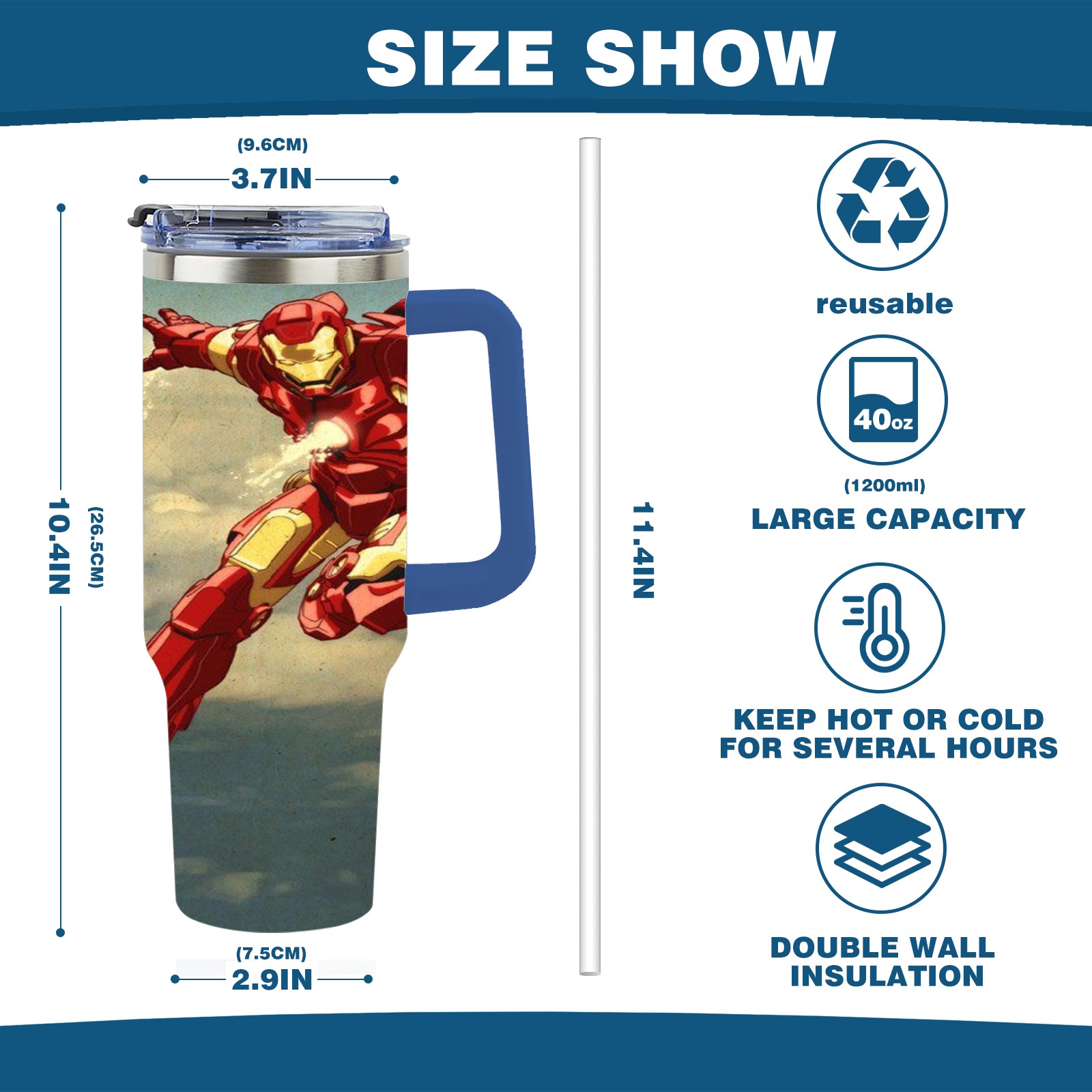 40oz 漫威 (1174) thermos with lid and straw, leak-proof stainless steel, with handle, spill-proof bottle, convenient for travel(pink)