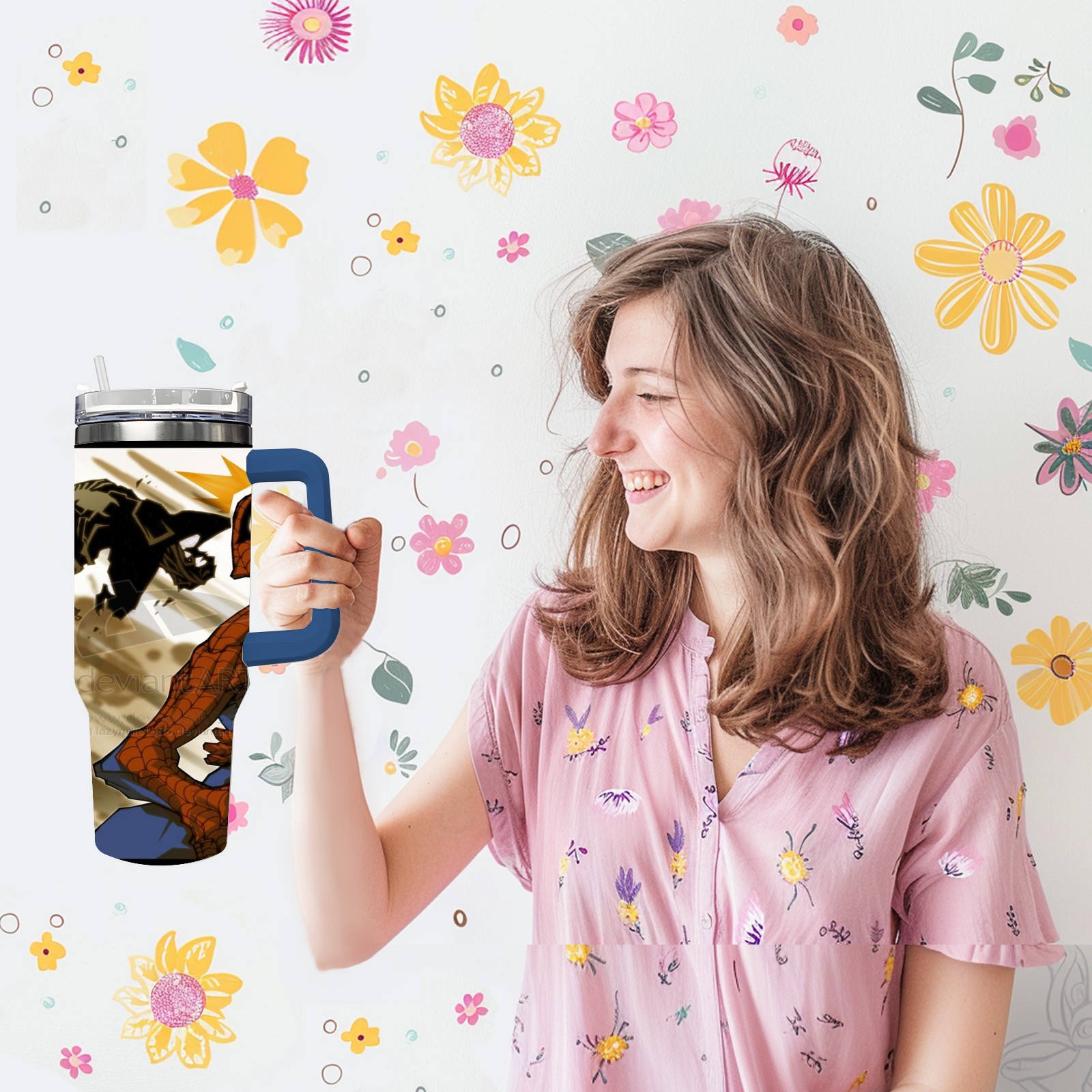 40oz 漫威 (1168) thermos with lid and straw, leak-proof stainless steel, with handle, spill-proof bottle, convenient for travel(pink)