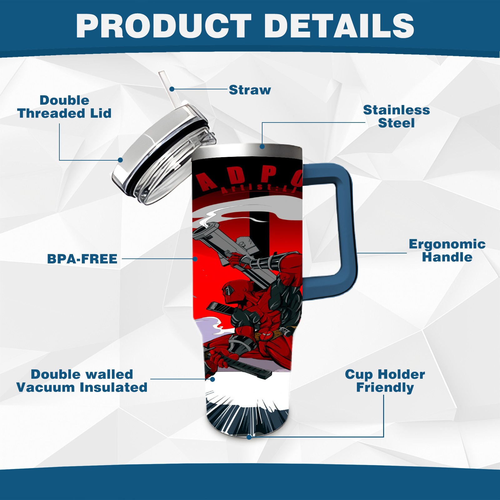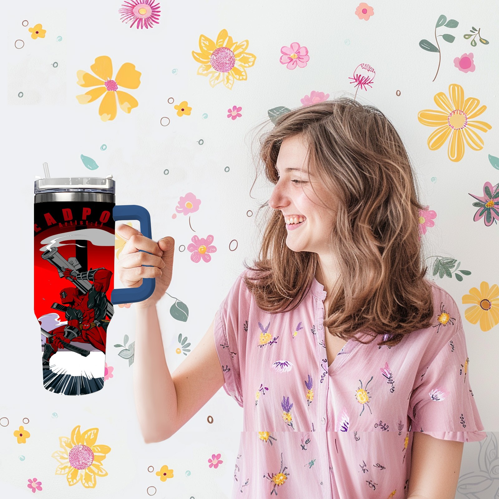 40oz 漫威 (1130) thermos with lid and straw, leak-proof stainless steel, with handle, spill-proof bottle, convenient for travel(pink)