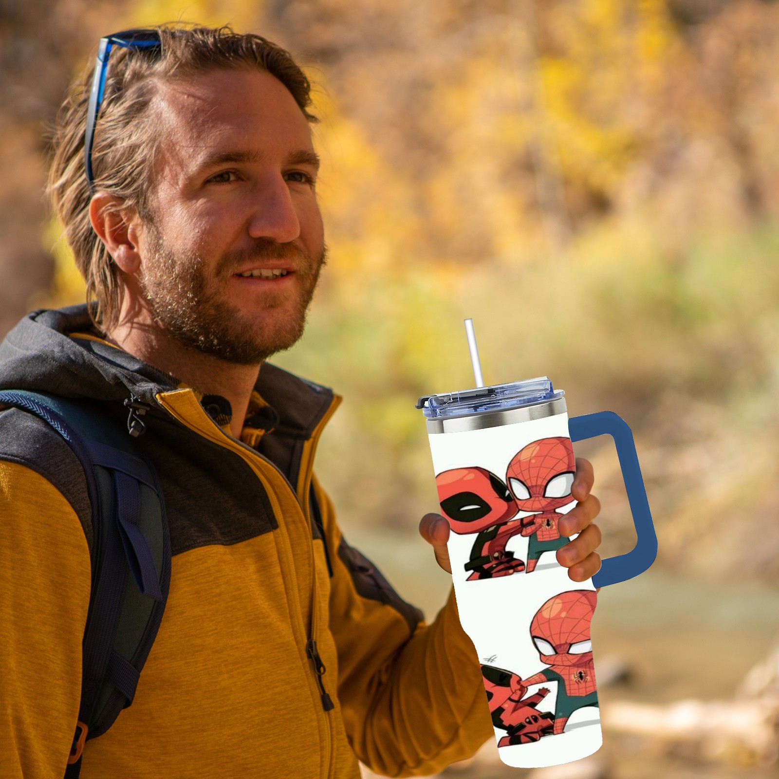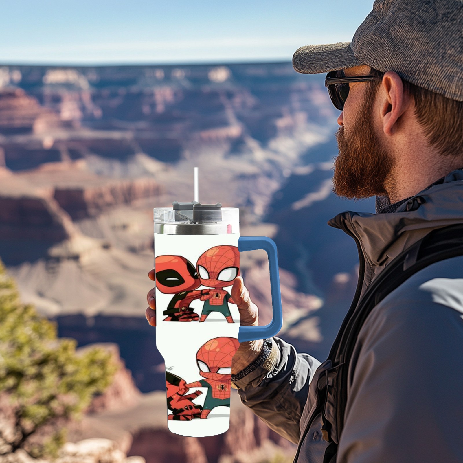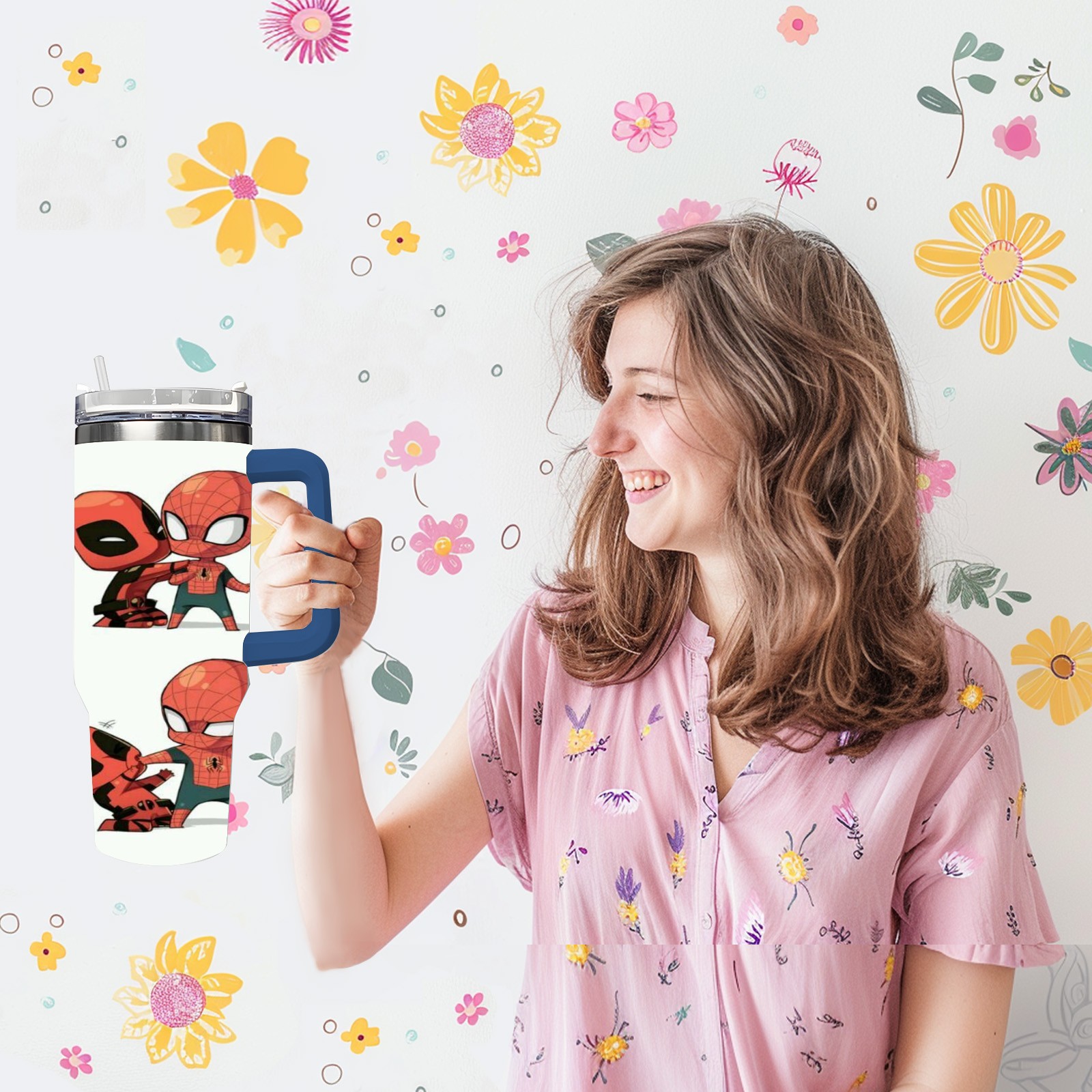 40oz 漫威 (1161) thermos with lid and straw, leak-proof stainless steel, with handle, spill-proof bottle, convenient for travel(pink)