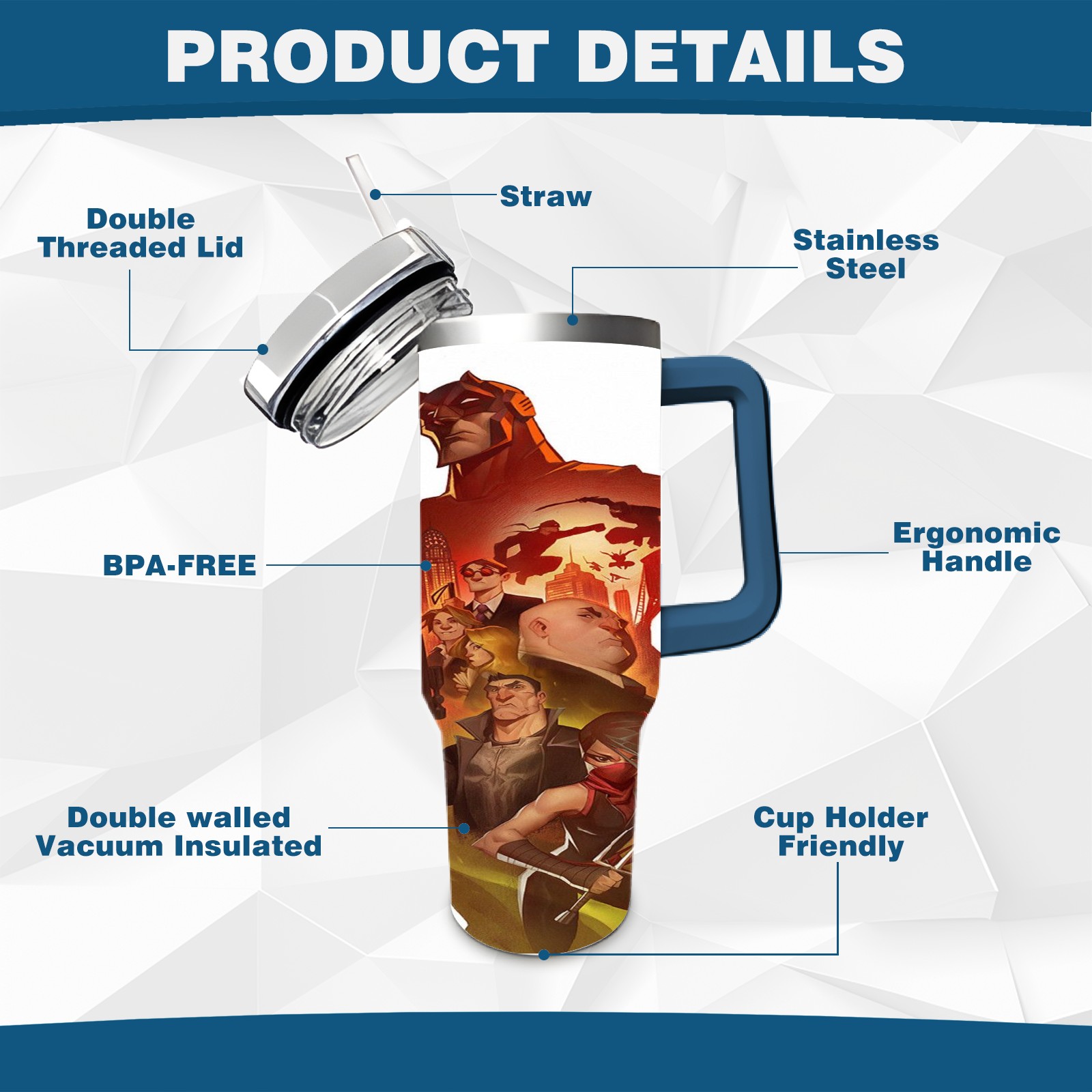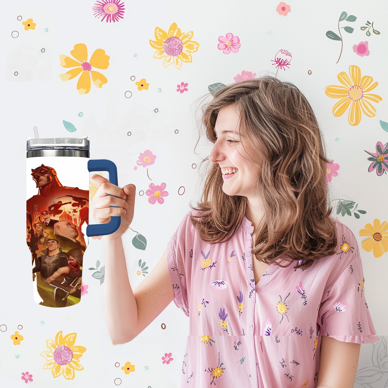 40oz 漫威 (1154) thermos with lid and straw, leak-proof stainless steel, with handle, spill-proof bottle, convenient for travel(pink)