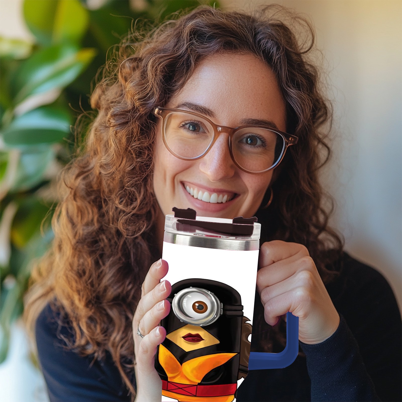 40oz 漫威 (1156) thermos with lid and straw, leak-proof stainless steel, with handle, spill-proof bottle, convenient for travel(pink)