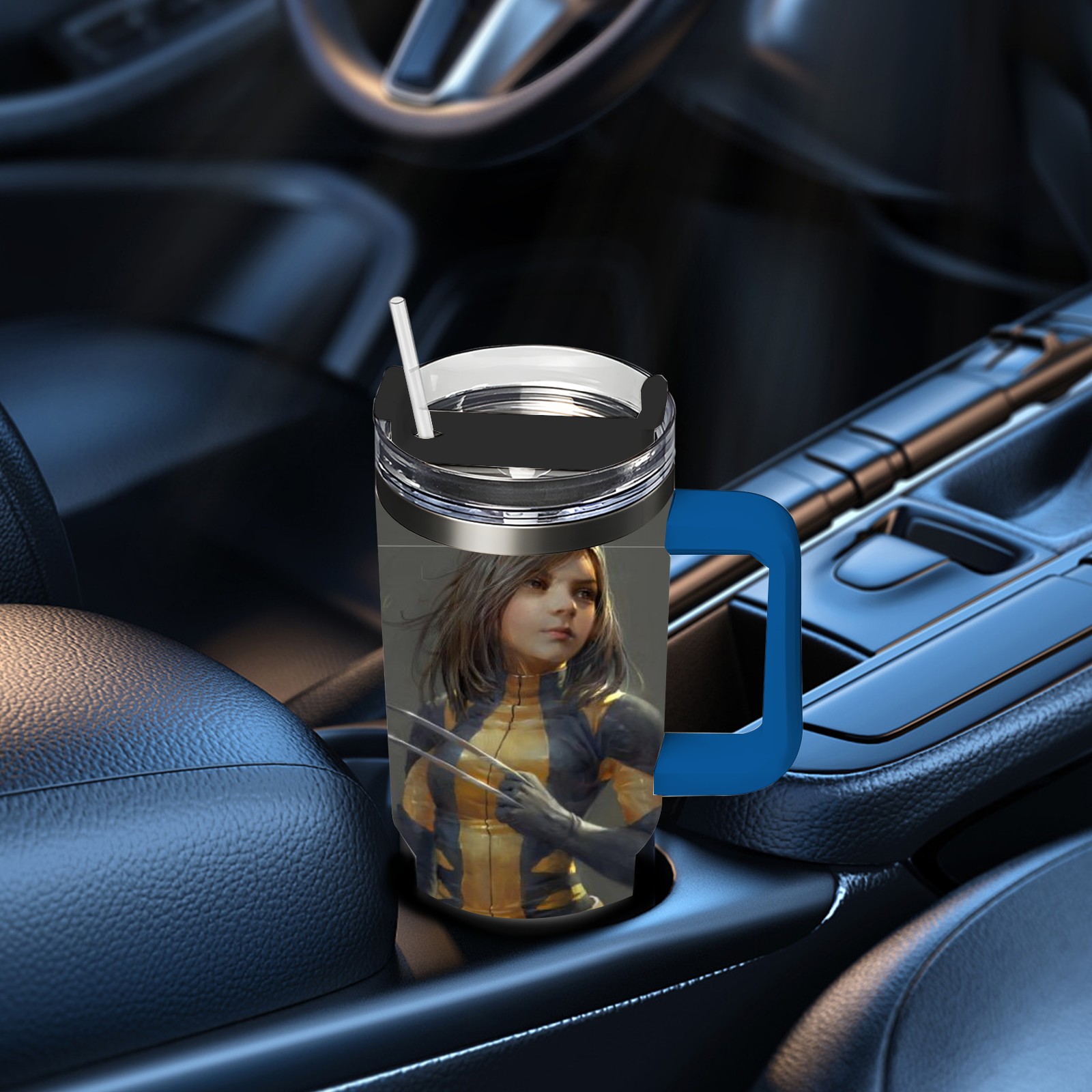40oz 漫威 (1150) thermos with lid and straw, leak-proof stainless steel, with handle, spill-proof bottle, convenient for travel(pink)
