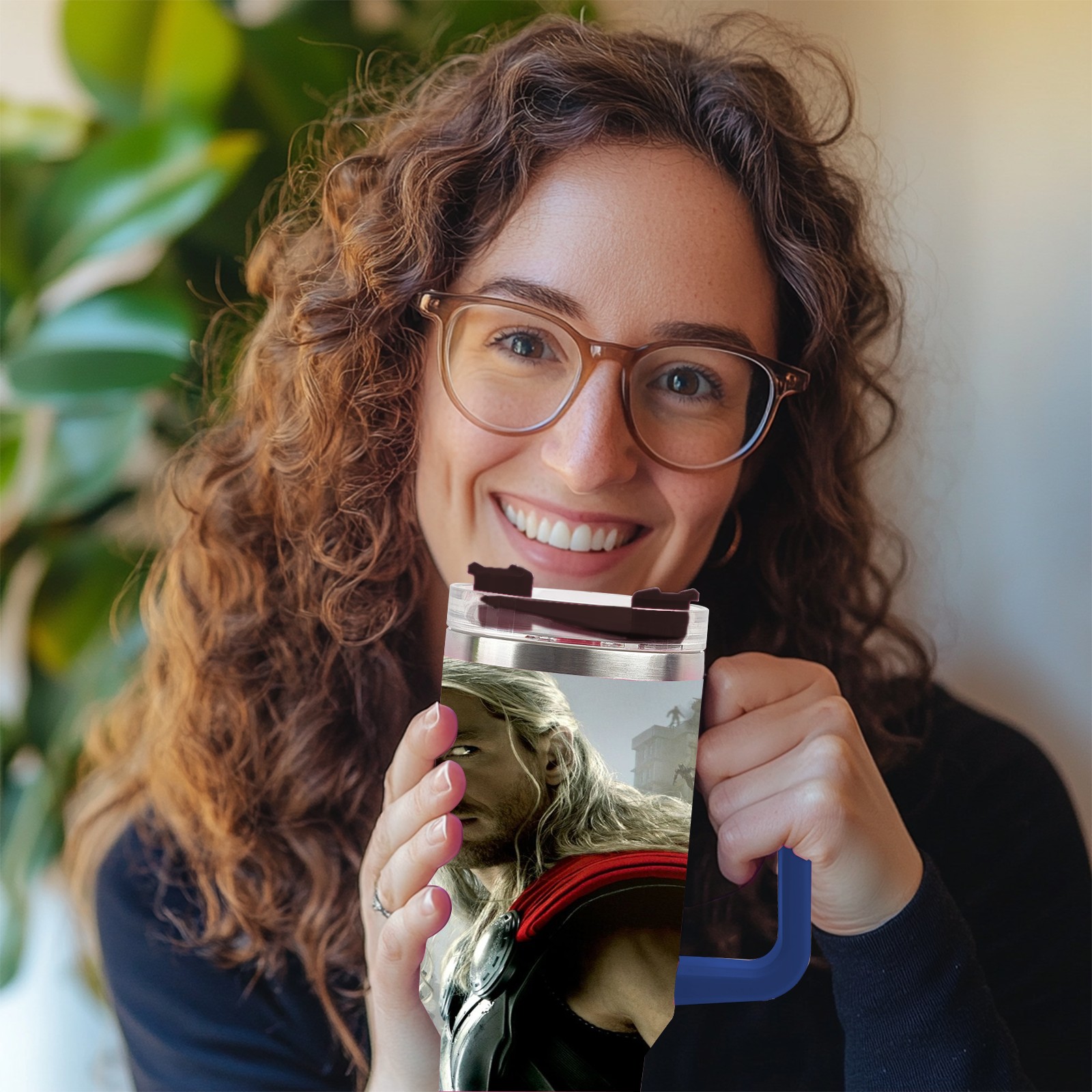 40oz 漫威 (1142) thermos with lid and straw, leak-proof stainless steel, with handle, spill-proof bottle, convenient for travel(pink)