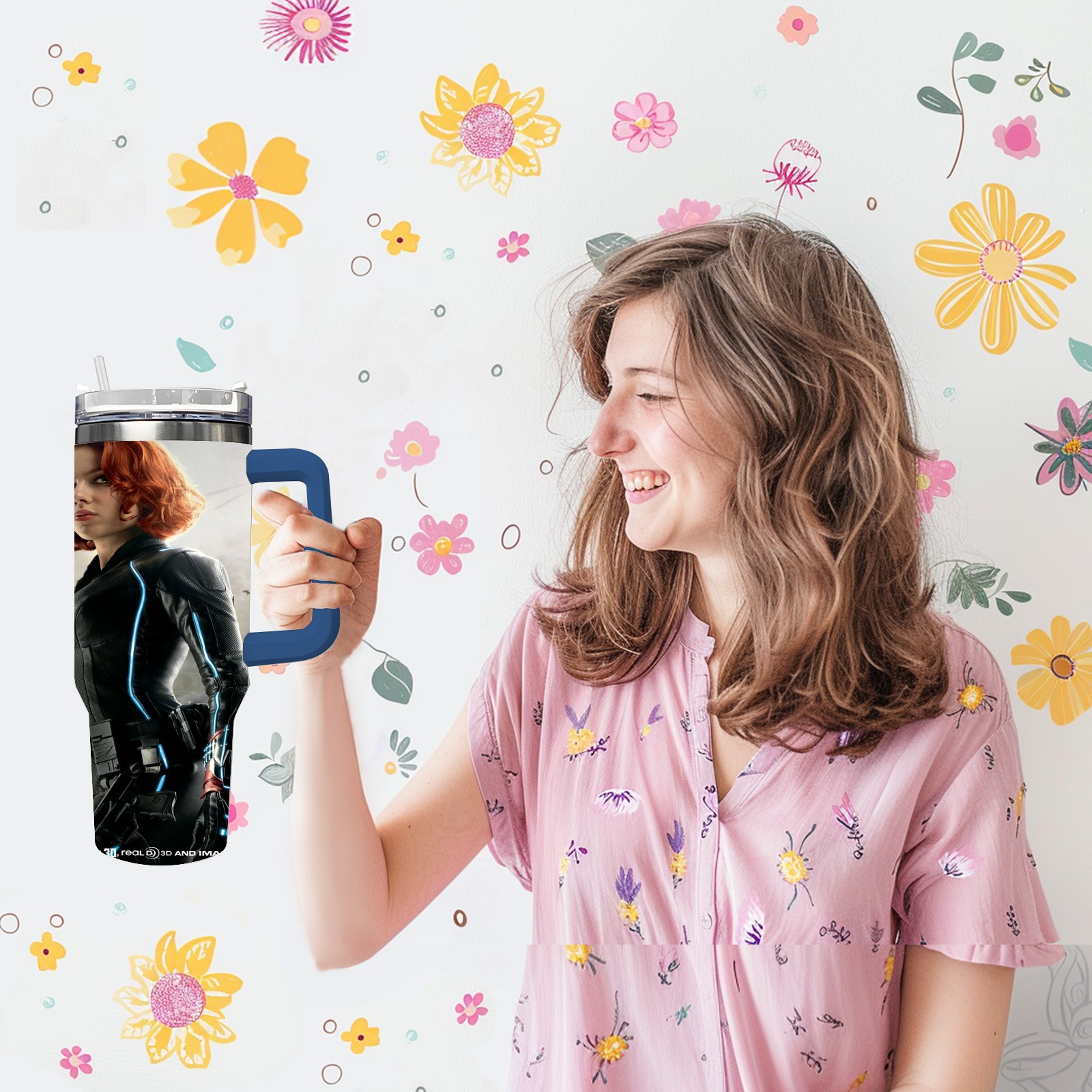 40oz 漫威 (1139) thermos with lid and straw, leak-proof stainless steel, with handle, spill-proof bottle, convenient for travel(pink)