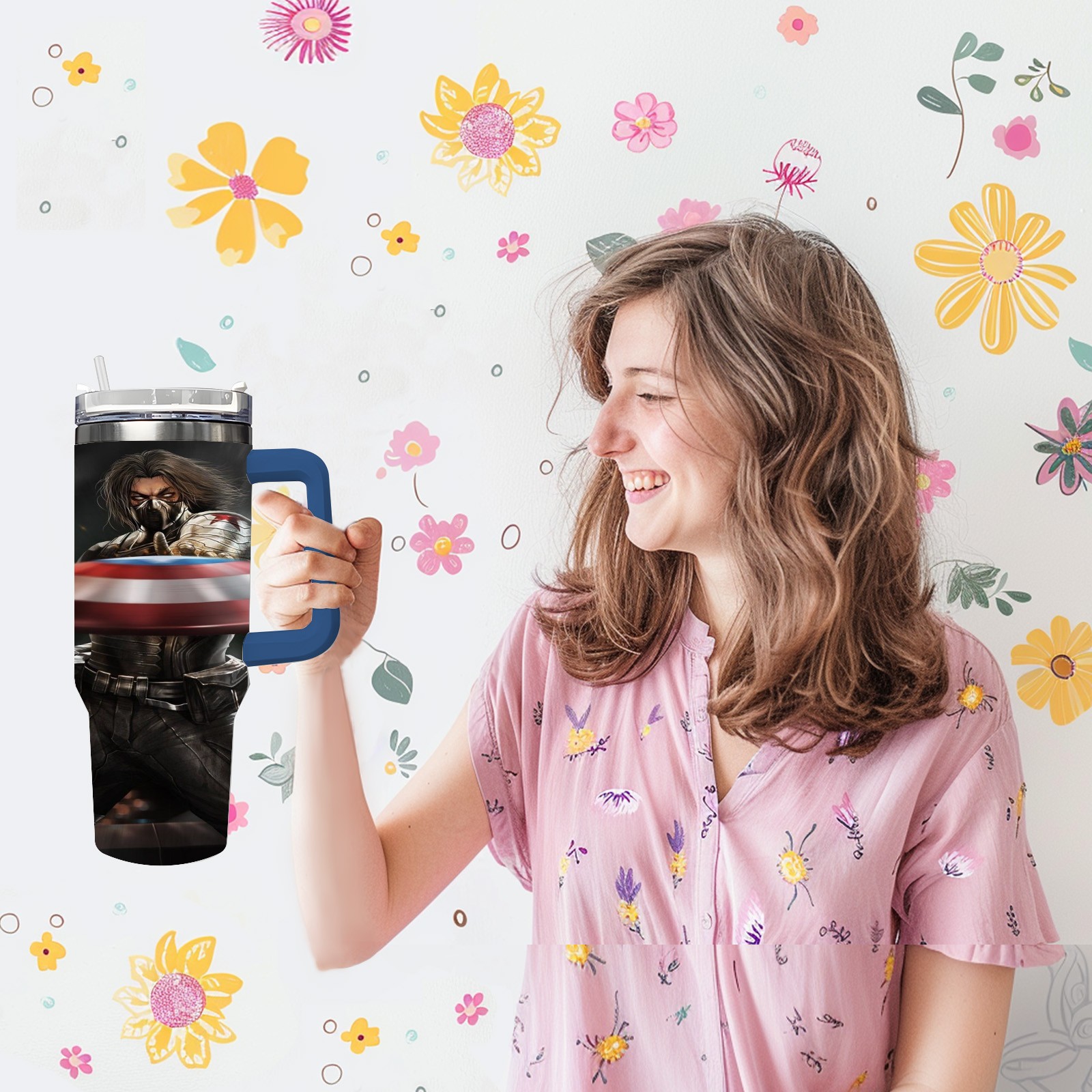 40oz 漫威 (1104) thermos with lid and straw, leak-proof stainless steel, with handle, spill-proof bottle, convenient for travel(pink)