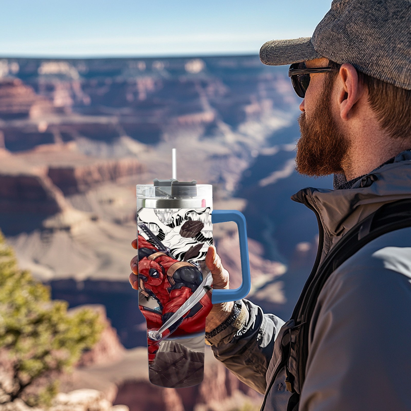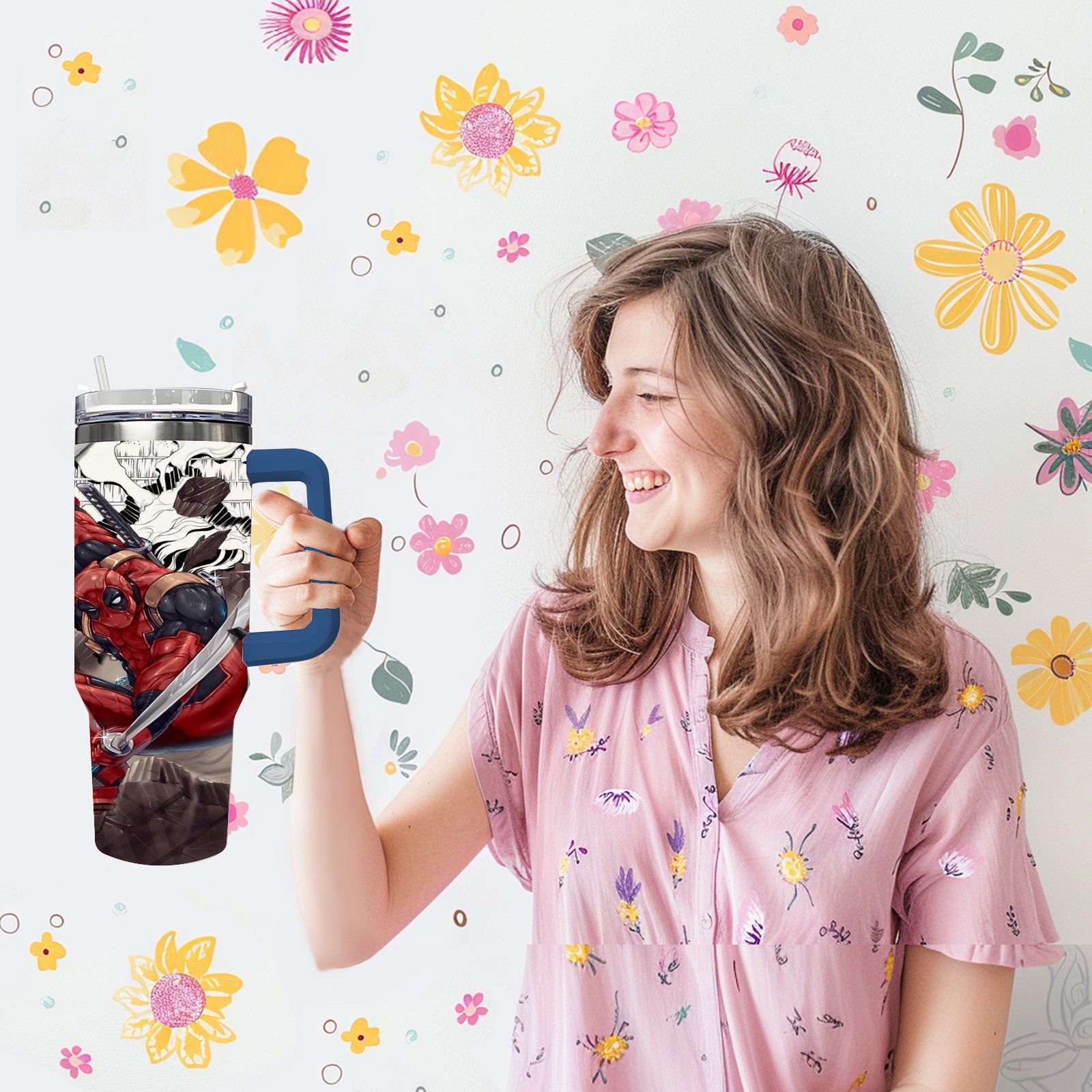 40oz 漫威 (1103) thermos with lid and straw, leak-proof stainless steel, with handle, spill-proof bottle, convenient for travel(pink)