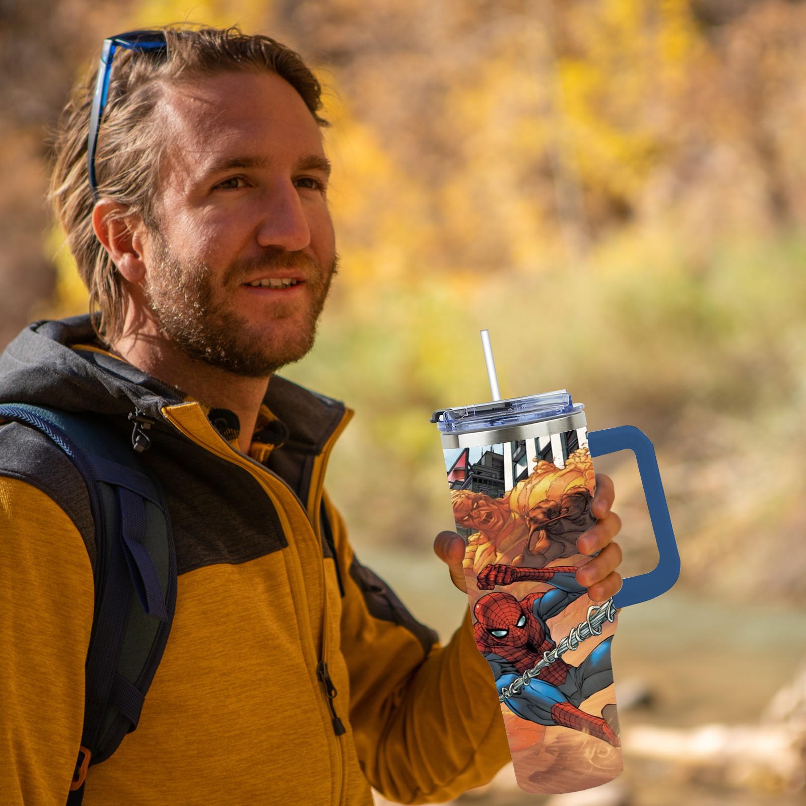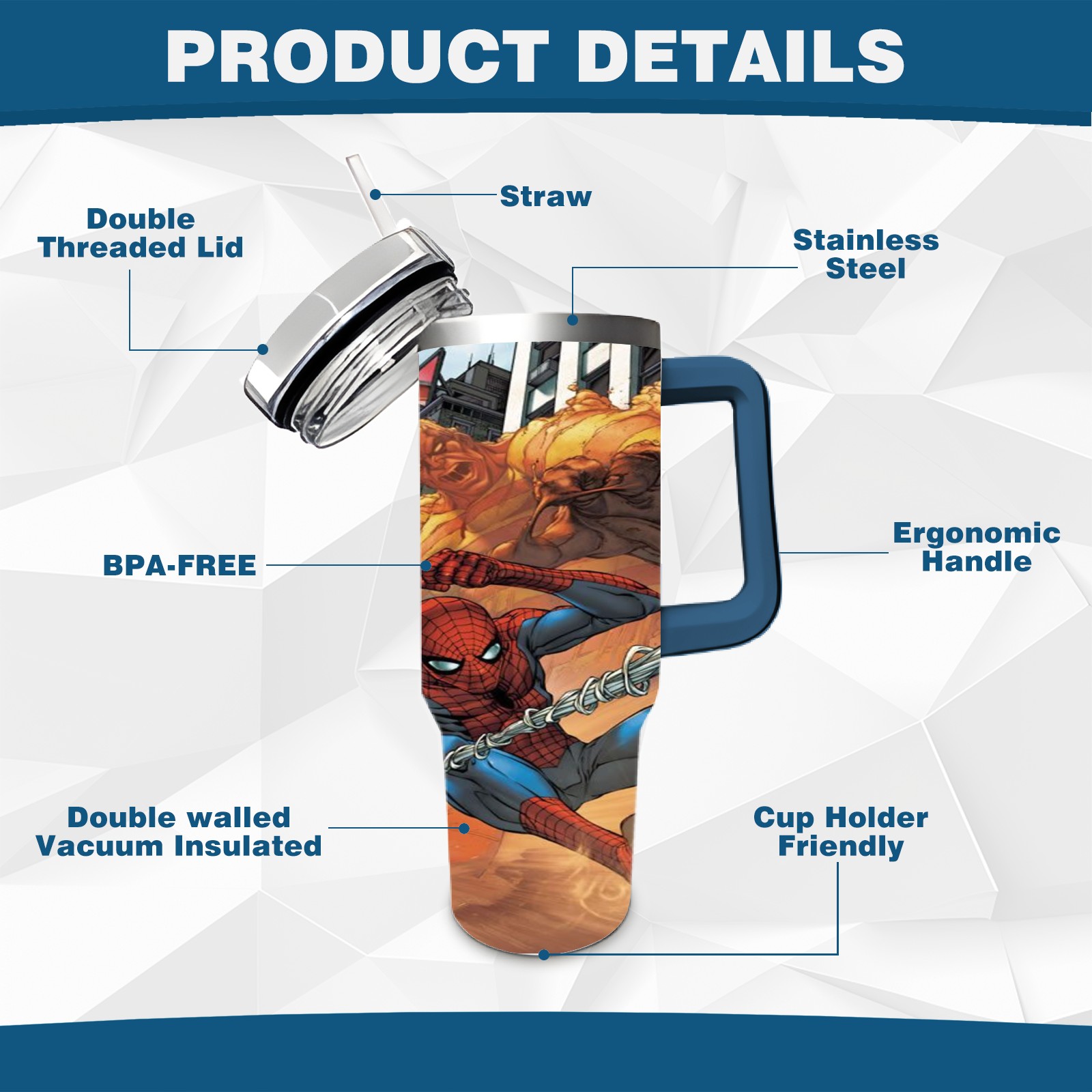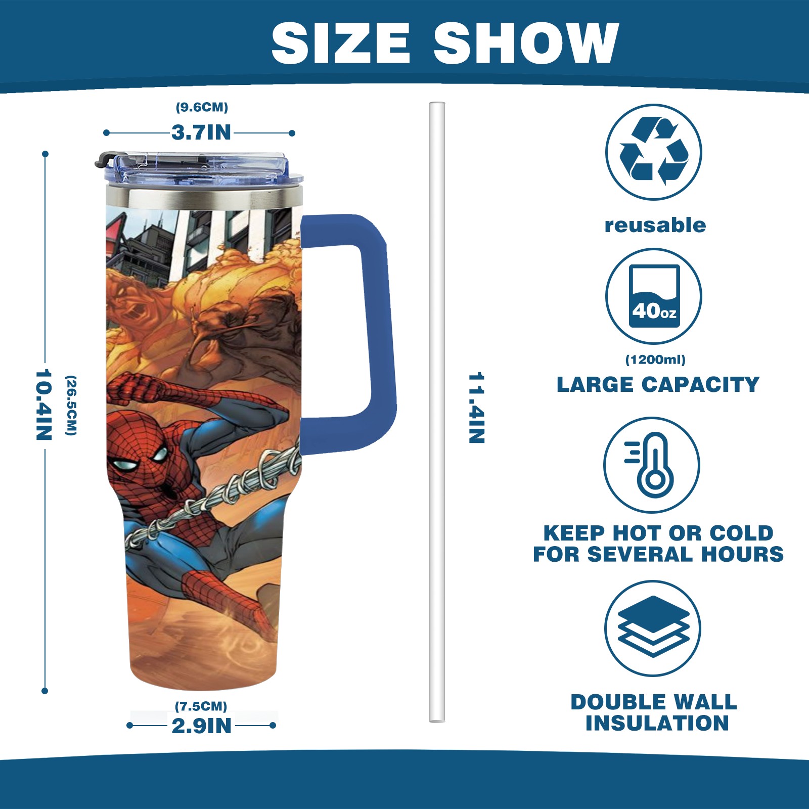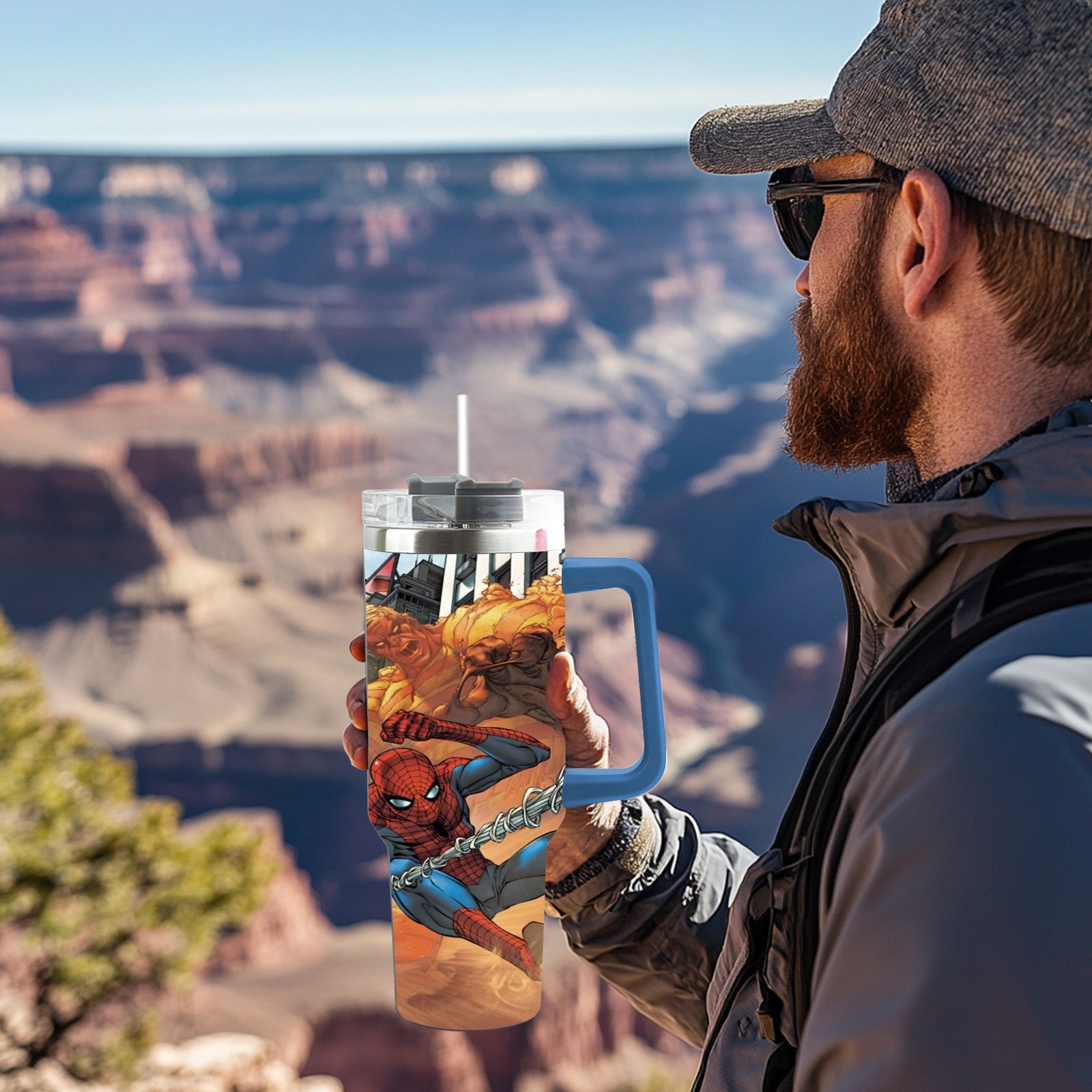 40oz 漫威 (1097) thermos with lid and straw, leak-proof stainless steel, with handle, spill-proof bottle, convenient for travel(pink)
