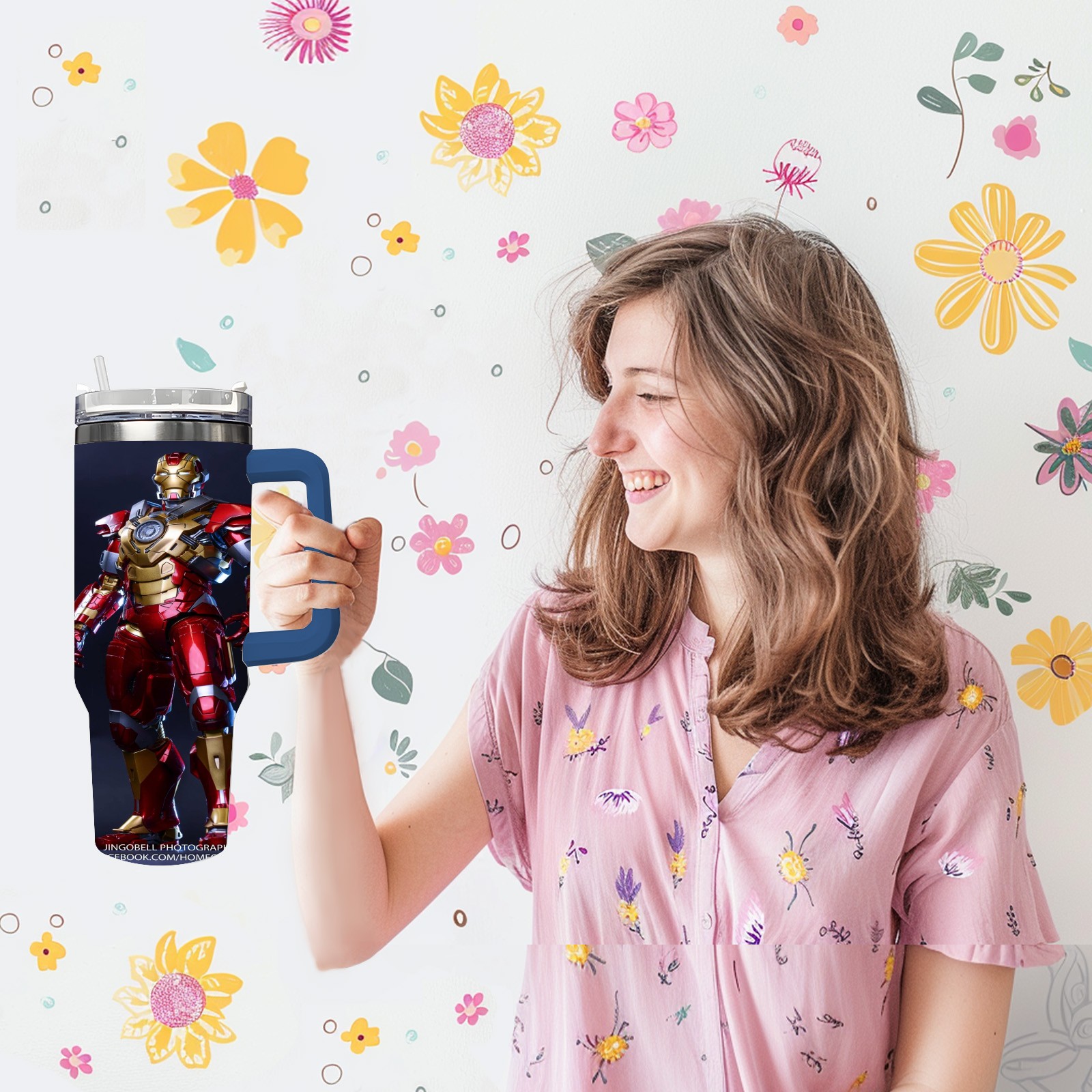 40oz 漫威 (1087) thermos with lid and straw, leak-proof stainless steel, with handle, spill-proof bottle, convenient for travel(pink)