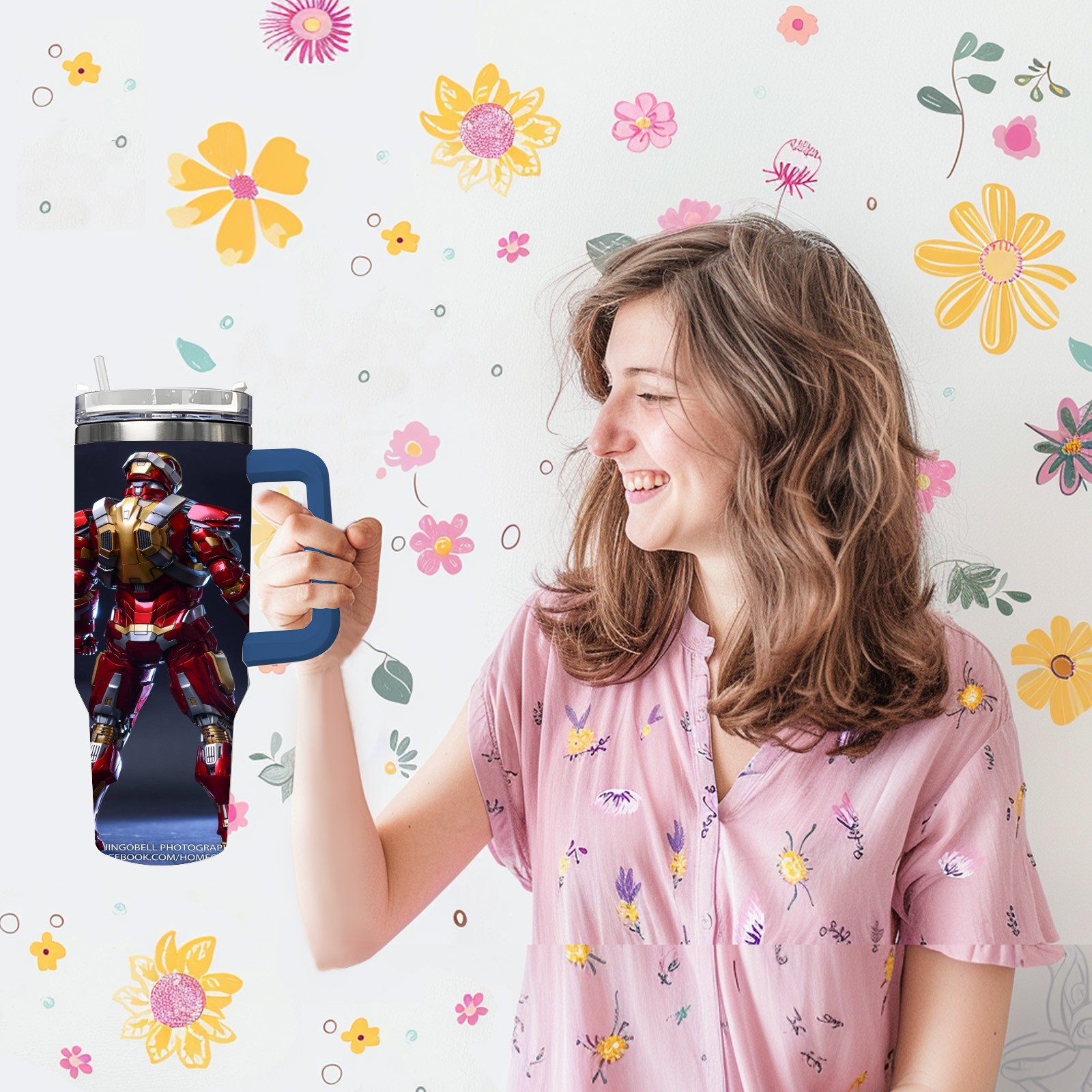 40oz 漫威 (1086) thermos with lid and straw, leak-proof stainless steel, with handle, spill-proof bottle, convenient for travel(pink)