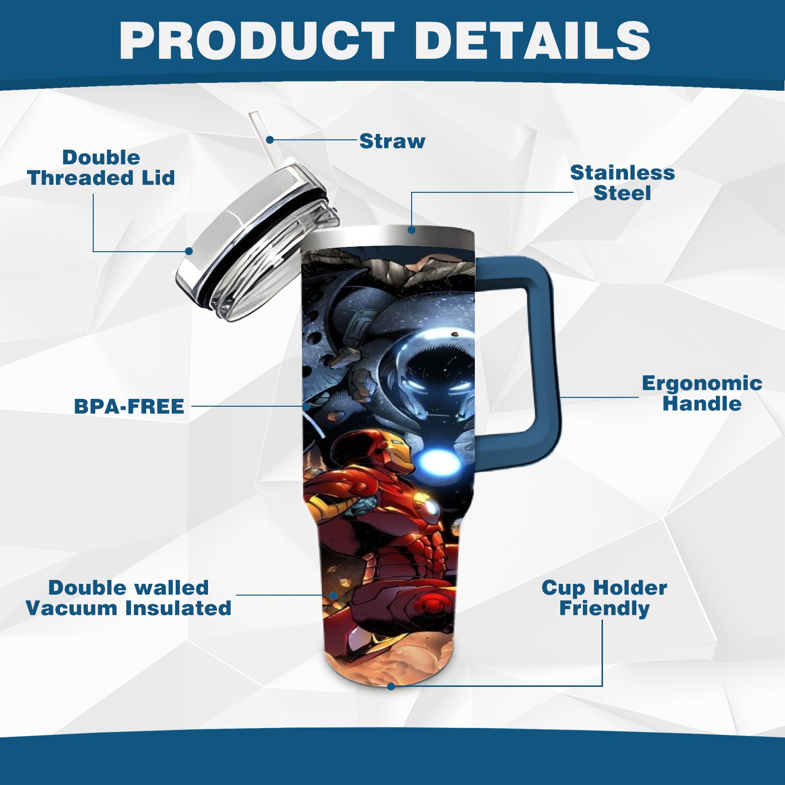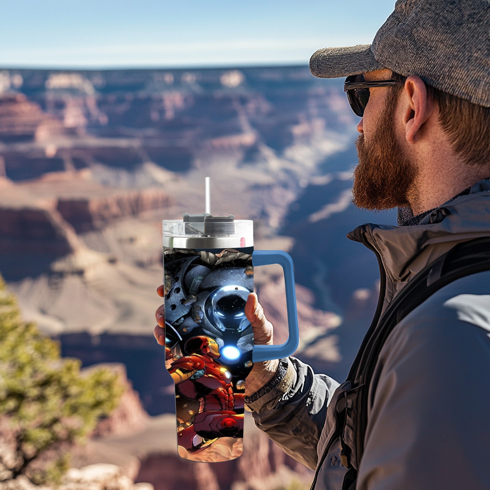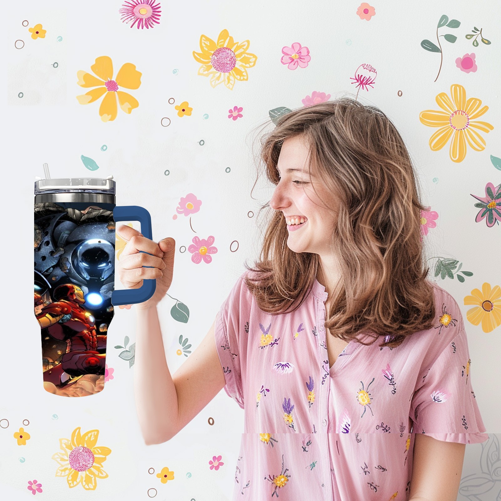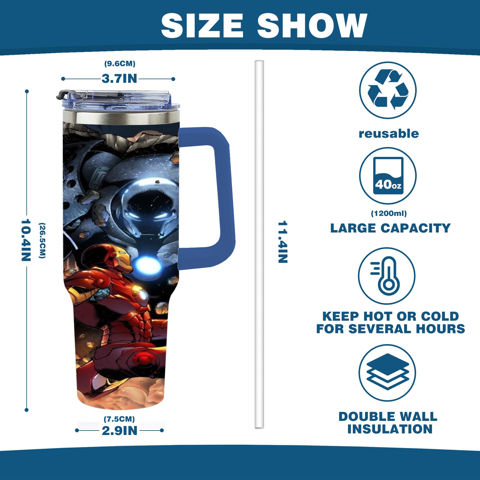 40oz 漫威 (1084) thermos with lid and straw, leak-proof stainless steel, with handle, spill-proof bottle, convenient for travel(pink)