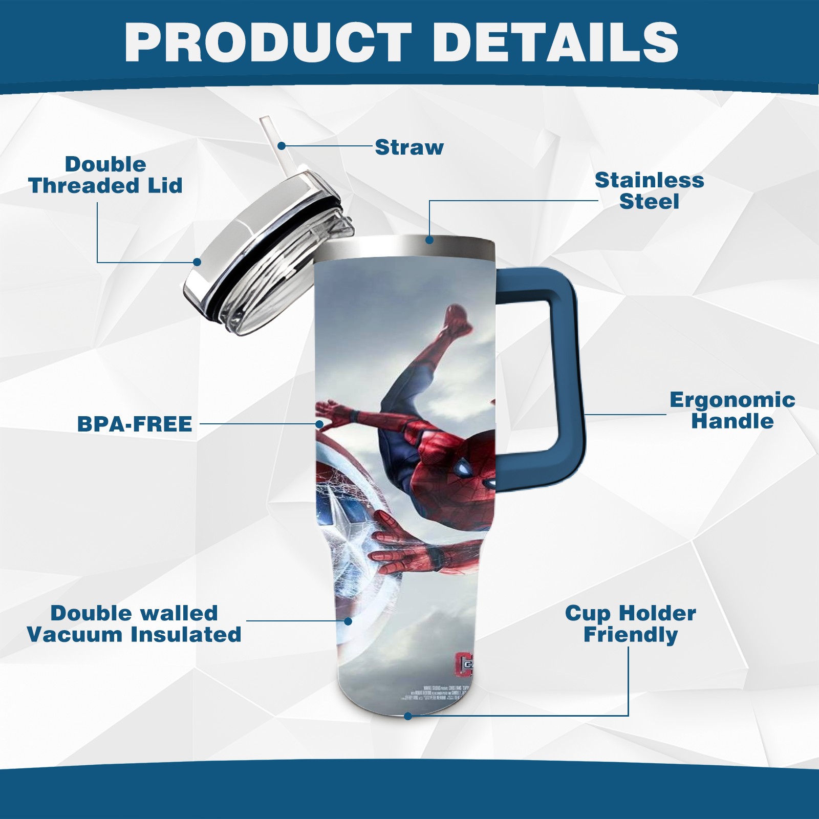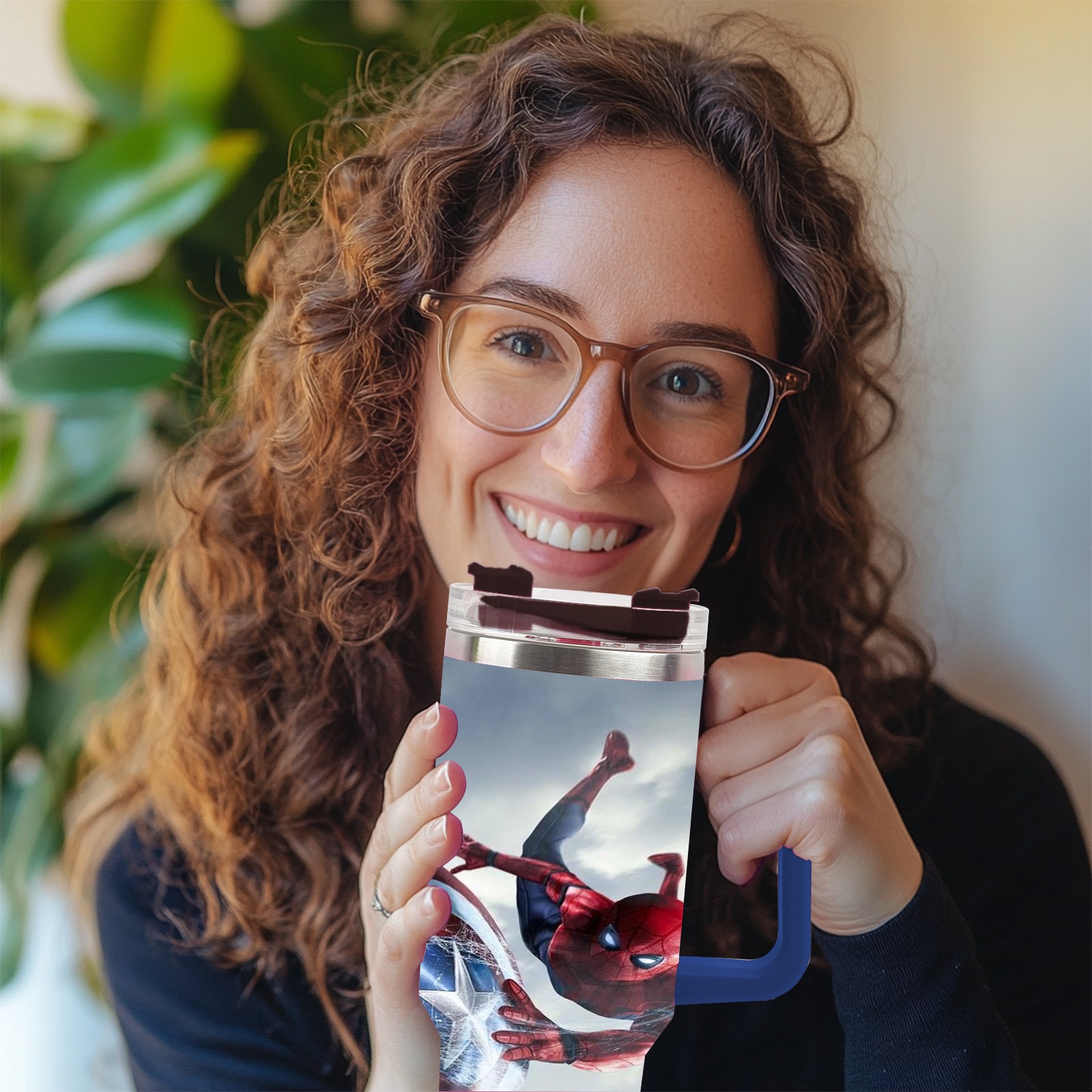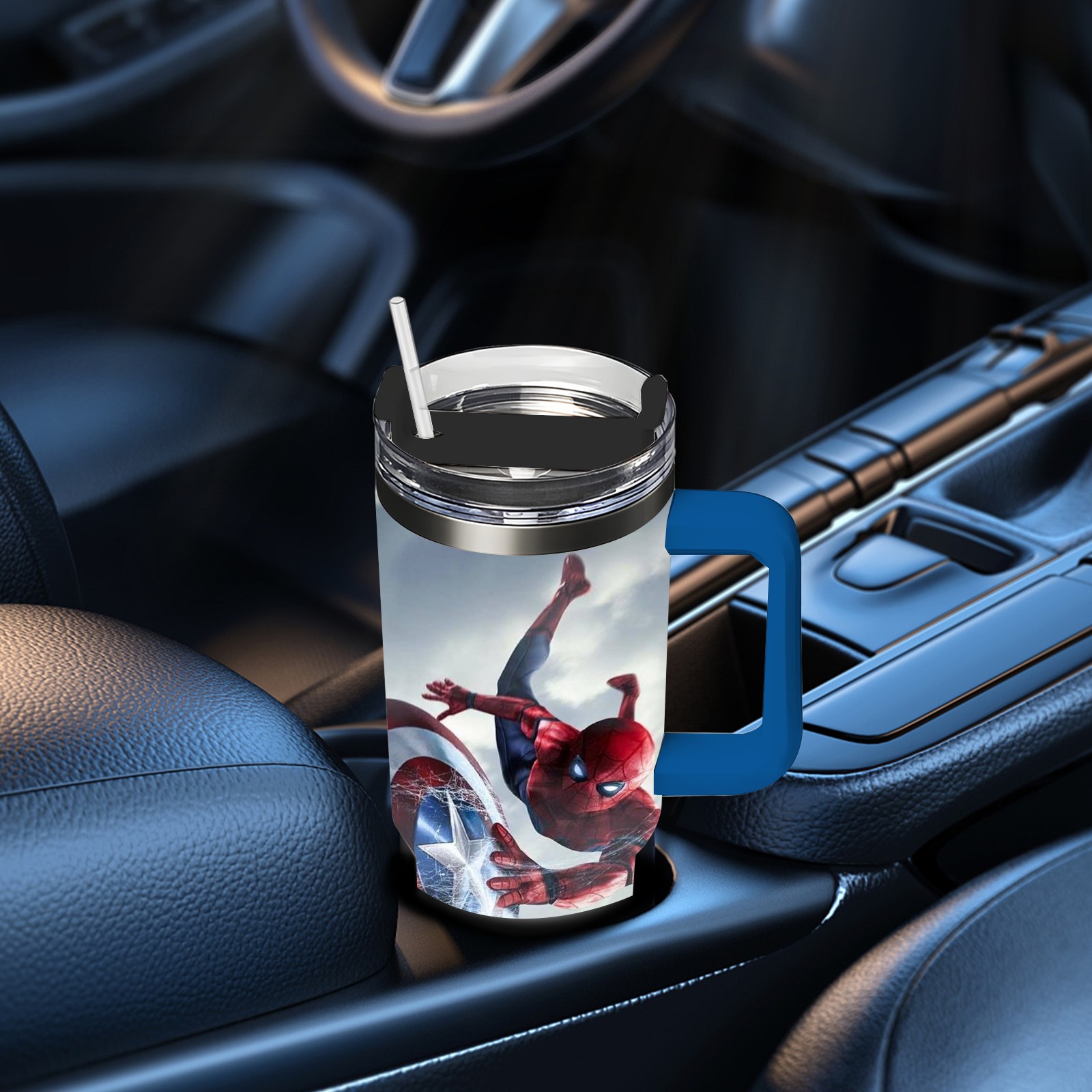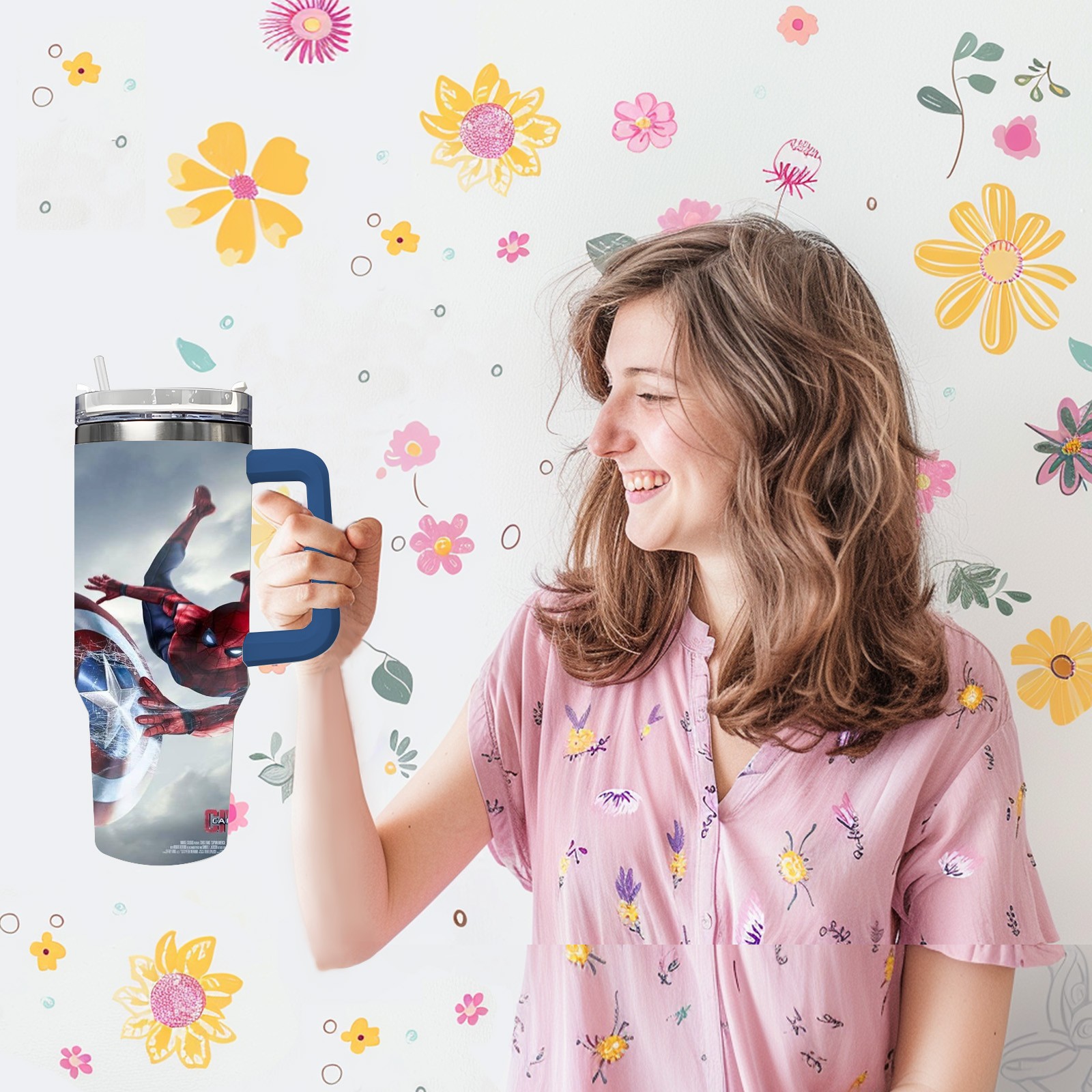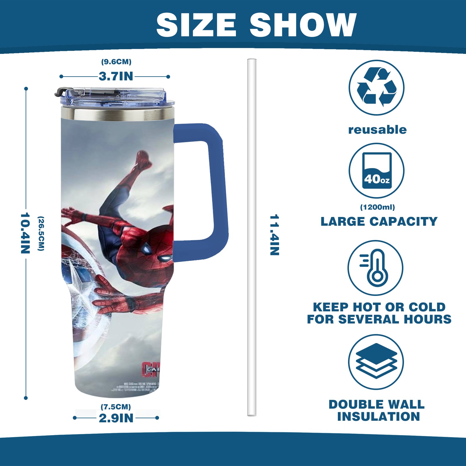 40oz 漫威 (1074) thermos with lid and straw, leak-proof stainless steel, with handle, spill-proof bottle, convenient for travel(pink)