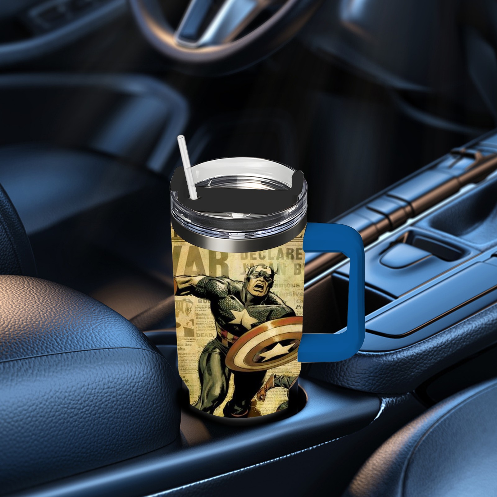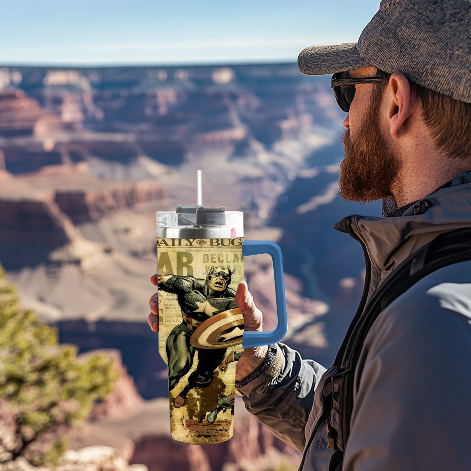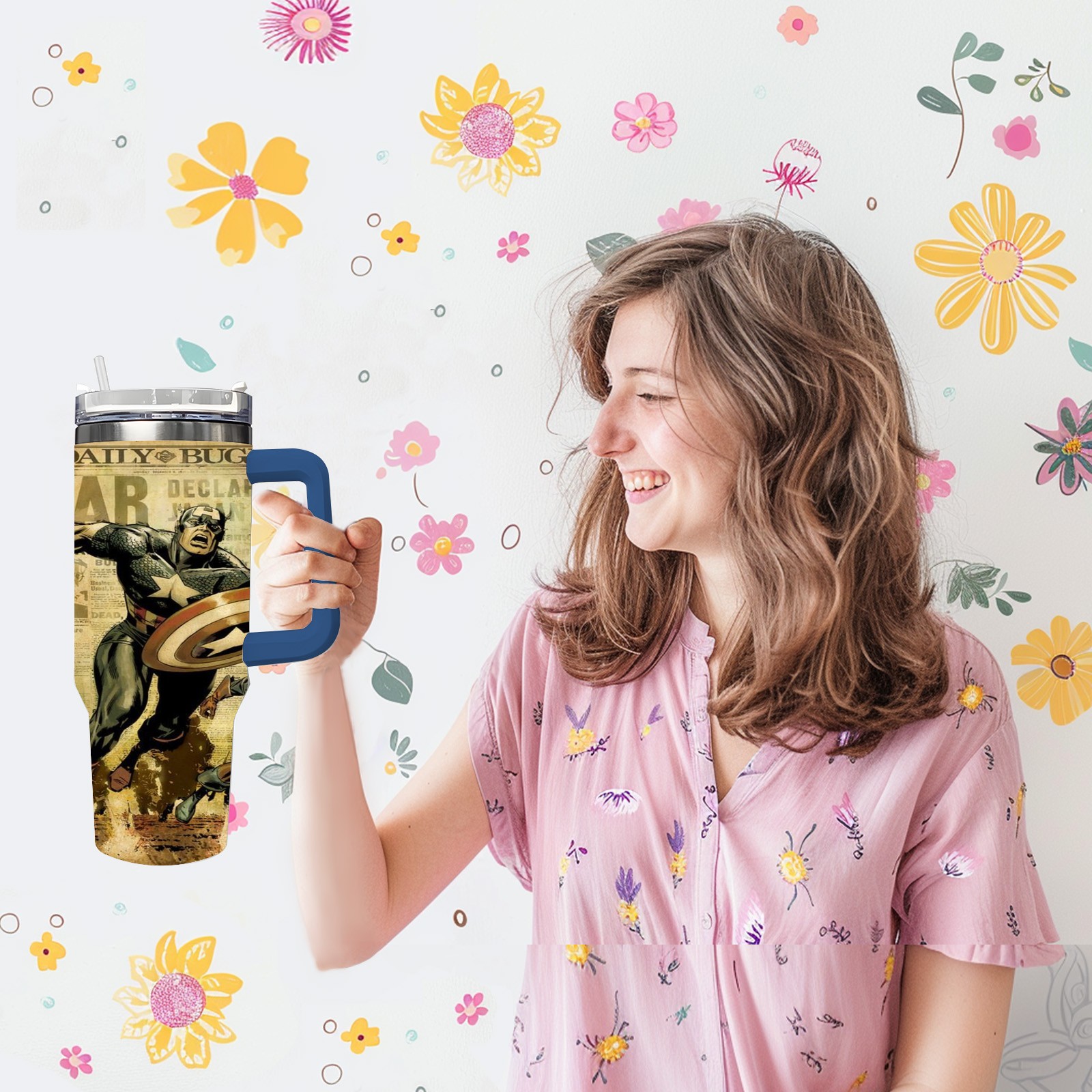 40oz 漫威 (1071) thermos with lid and straw, leak-proof stainless steel, with handle, spill-proof bottle, convenient for travel(pink)