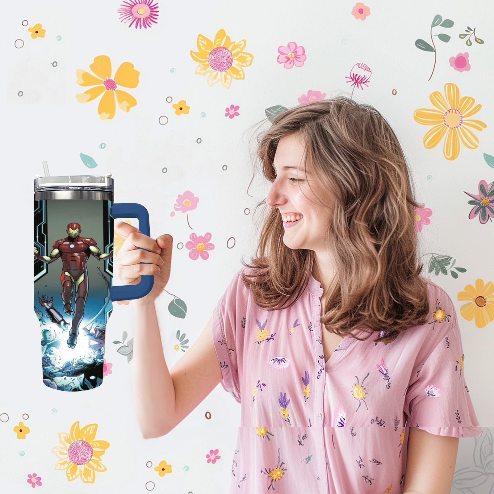 40oz 漫威 (1053) thermos with lid and straw, leak-proof stainless steel, with handle, spill-proof bottle, convenient for travel(pink)