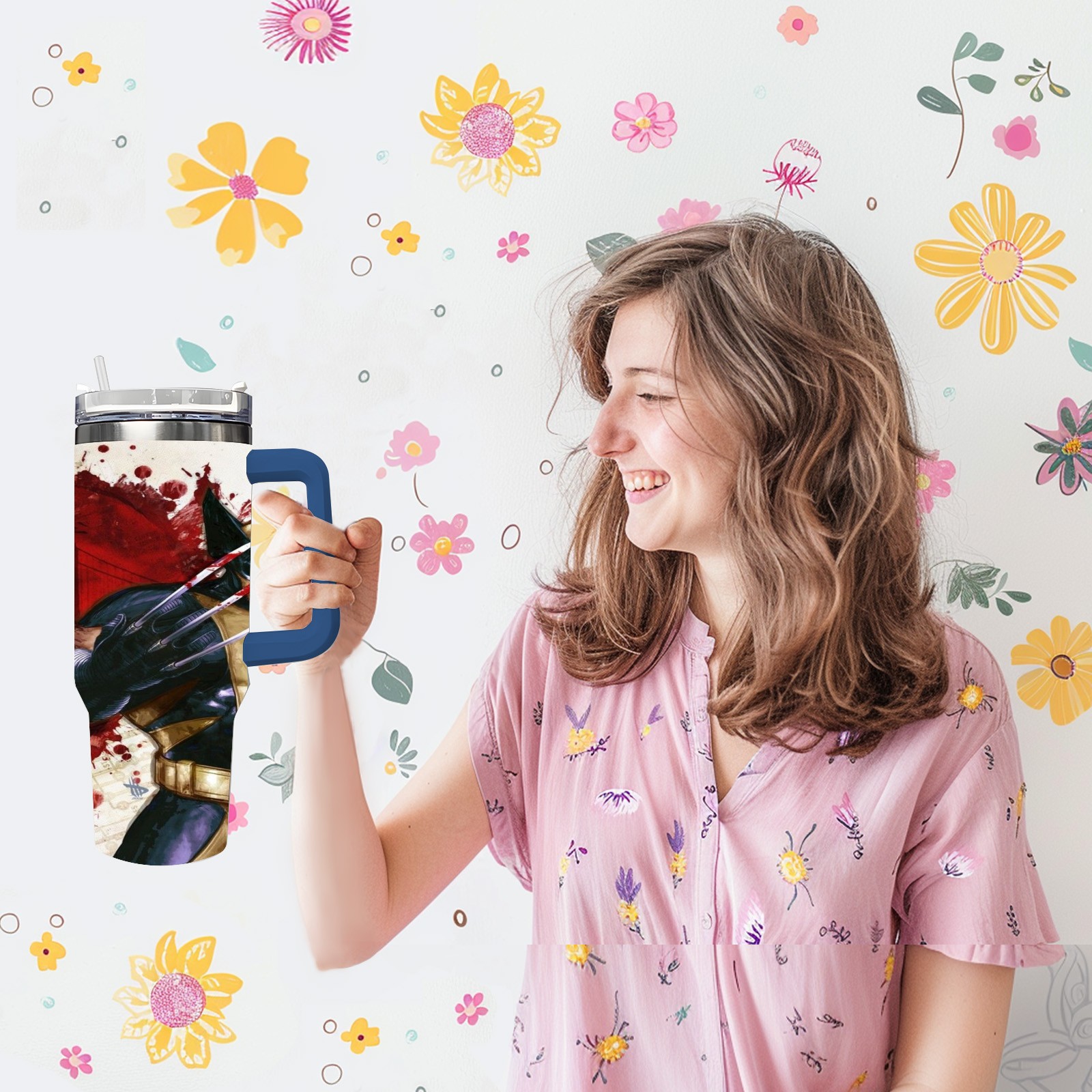 40oz 漫威 (1023) thermos with lid and straw, leak-proof stainless steel, with handle, spill-proof bottle, convenient for travel(pink)