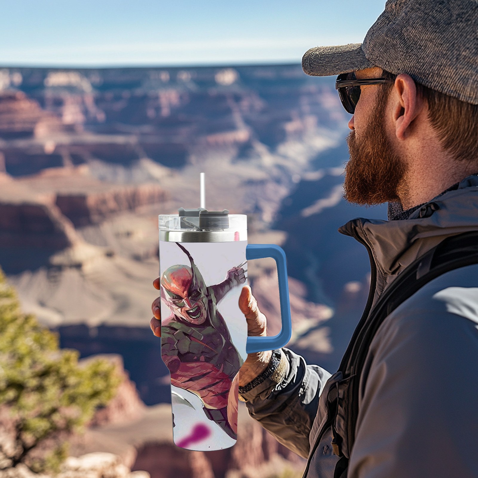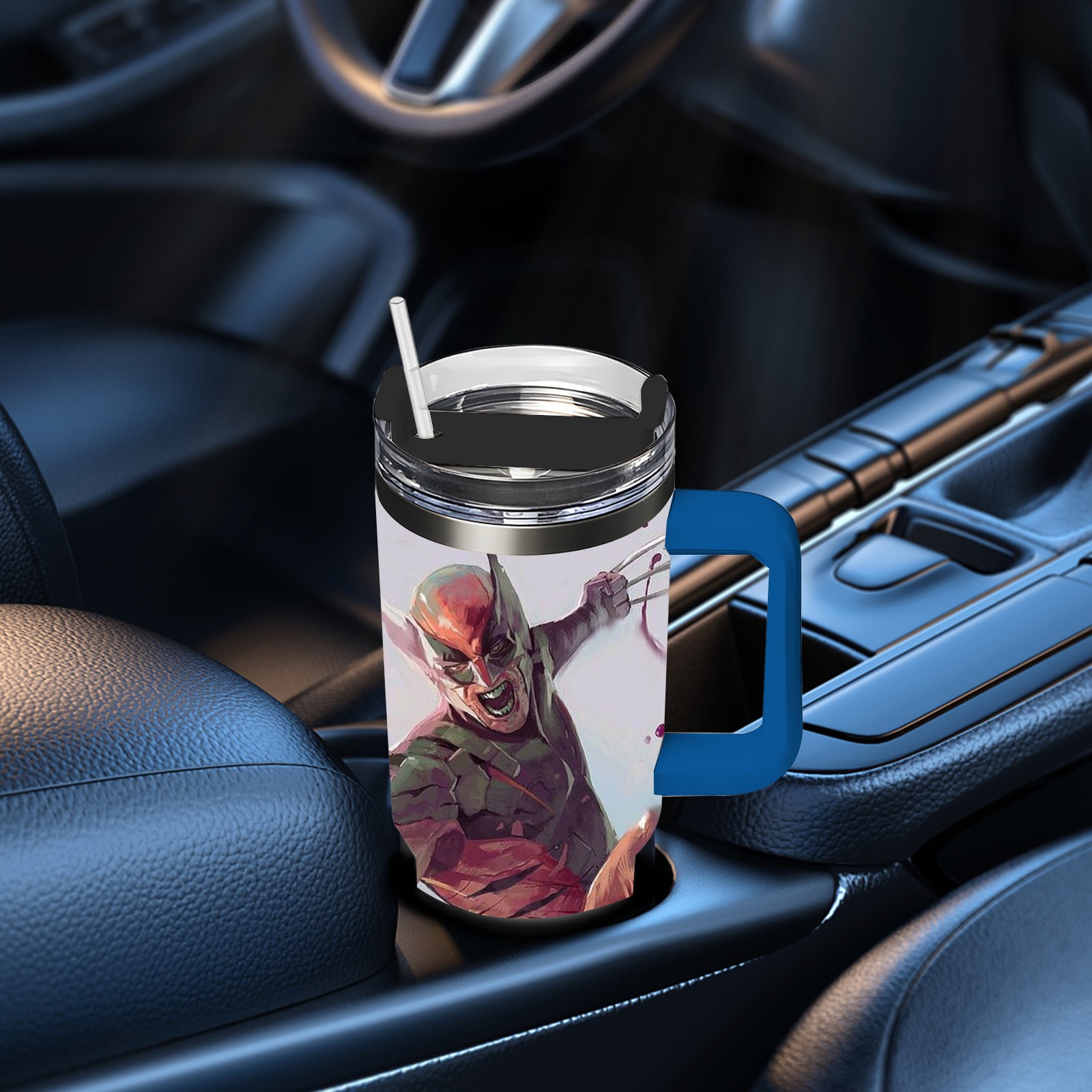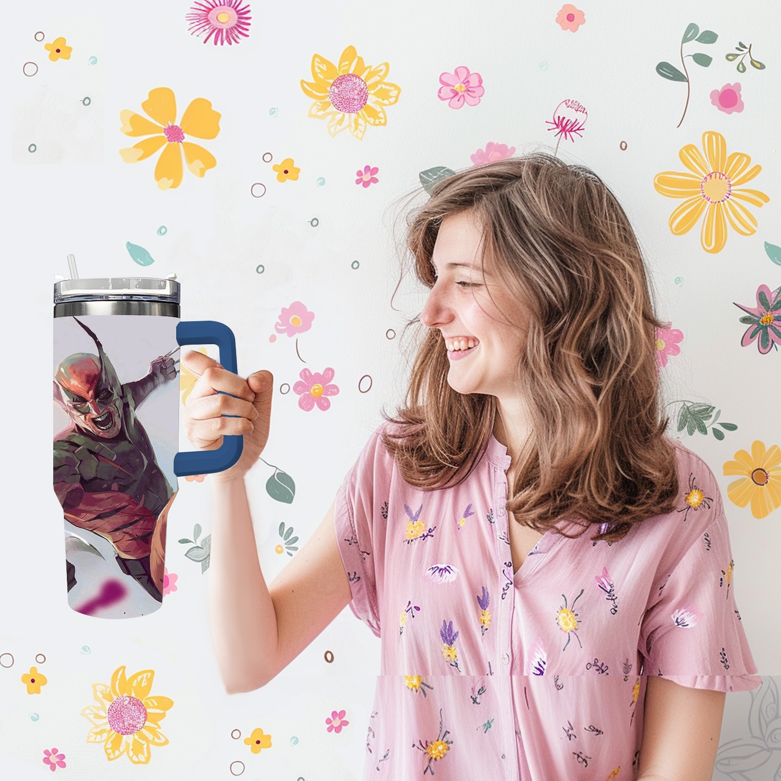 40oz 漫威 (1020) thermos with lid and straw, leak-proof stainless steel, with handle, spill-proof bottle, convenient for travel(pink)