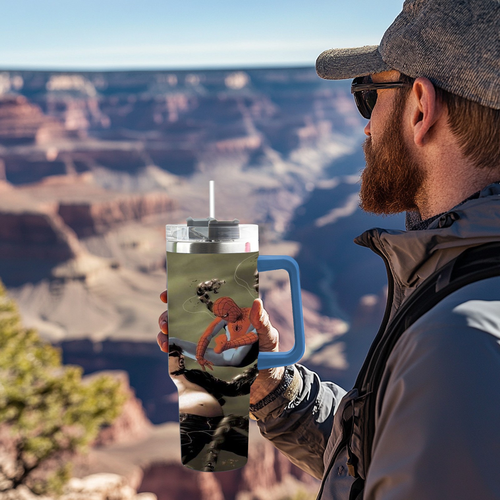 40oz 漫威 (976) thermos with lid and straw, leak-proof stainless steel, with handle, spill-proof bottle, convenient for travel(pink)
