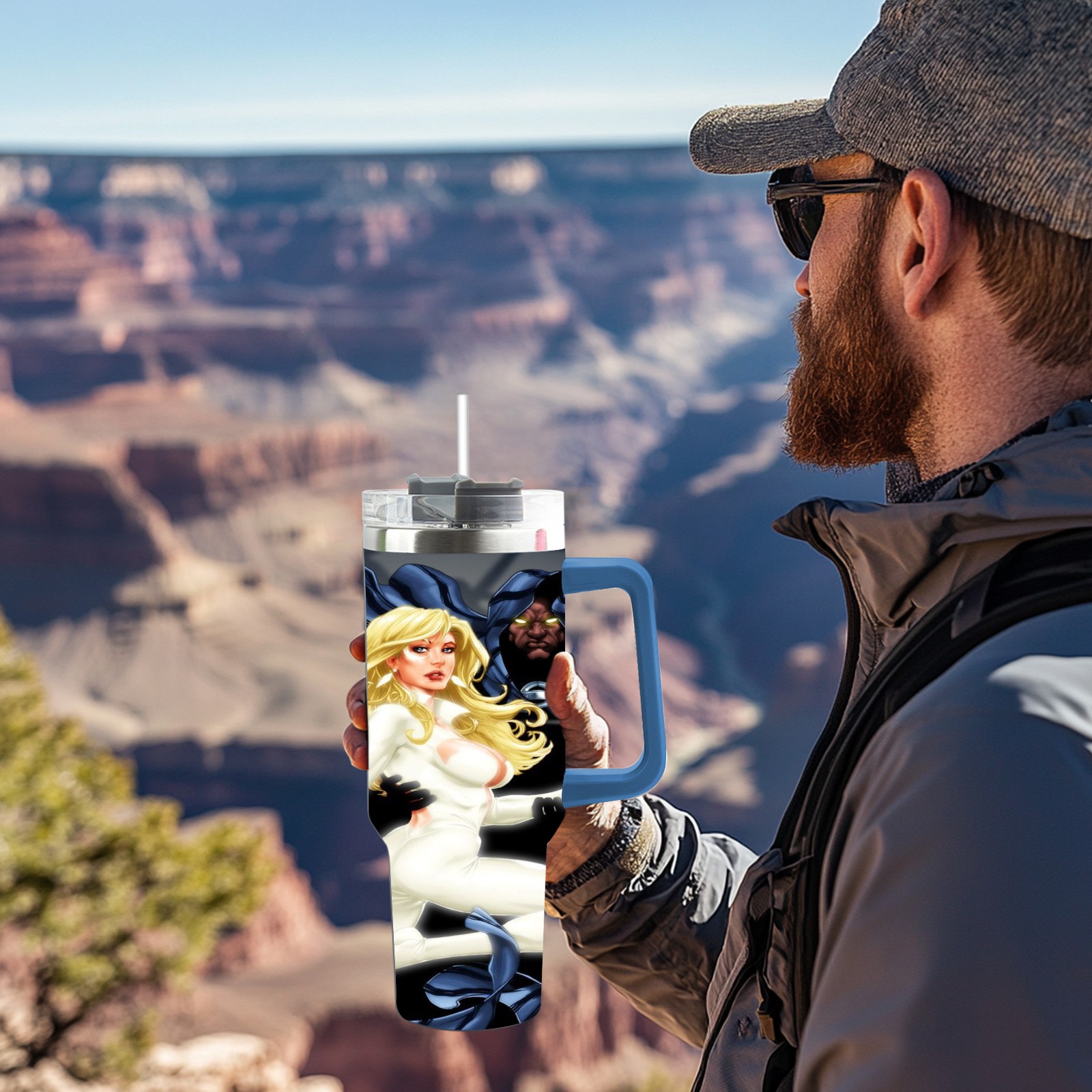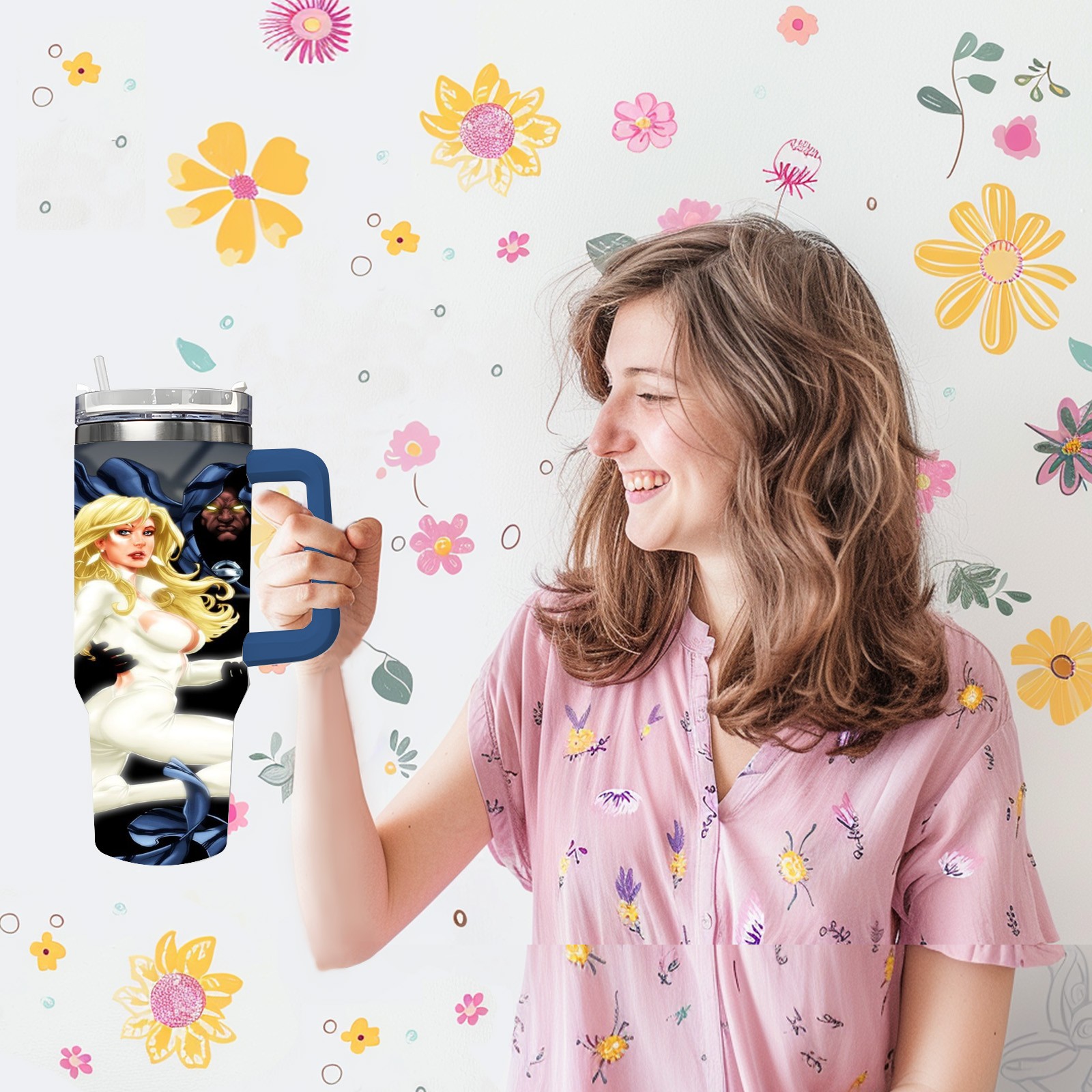 40oz 漫威 (972) thermos with lid and straw, leak-proof stainless steel, with handle, spill-proof bottle, convenient for travel(pink)