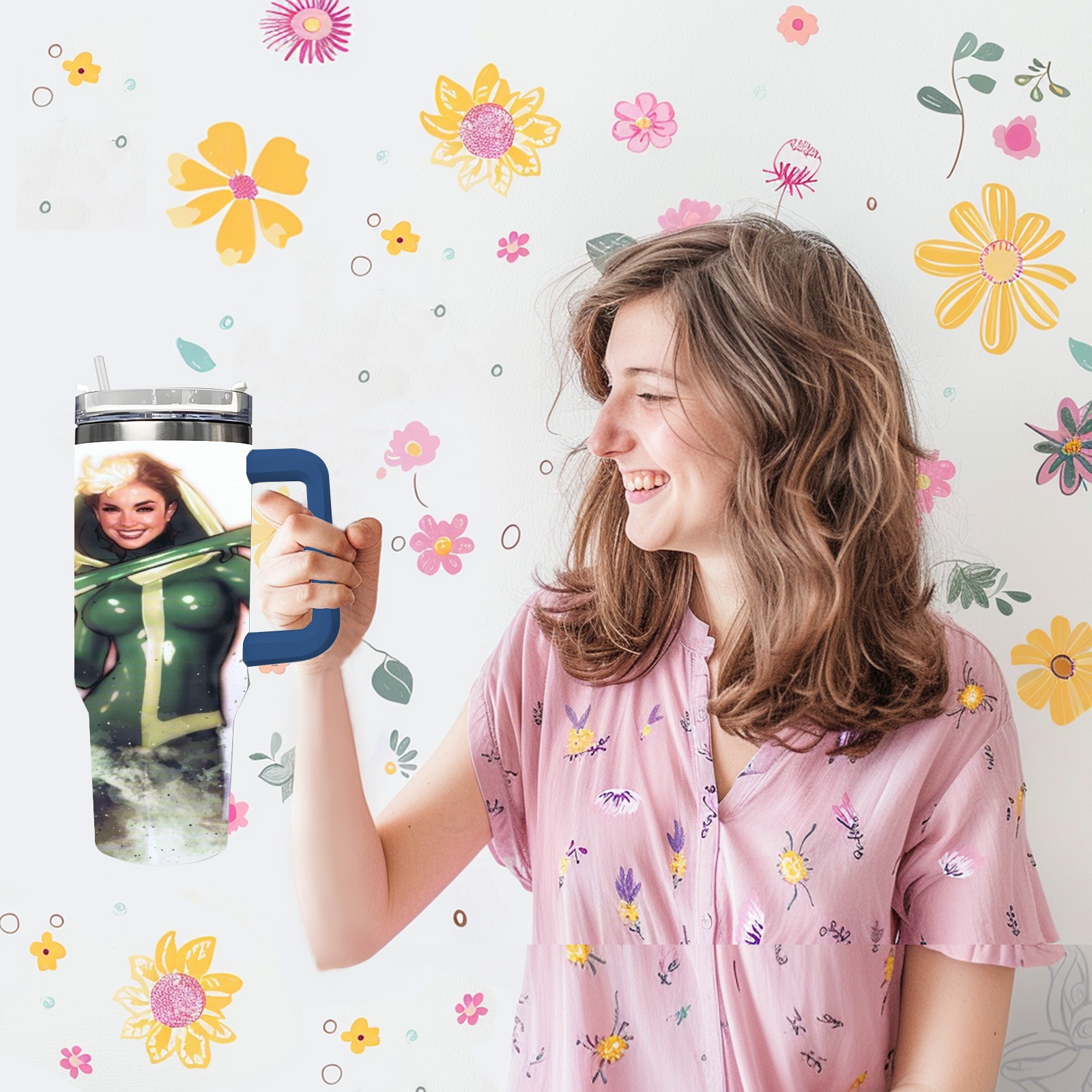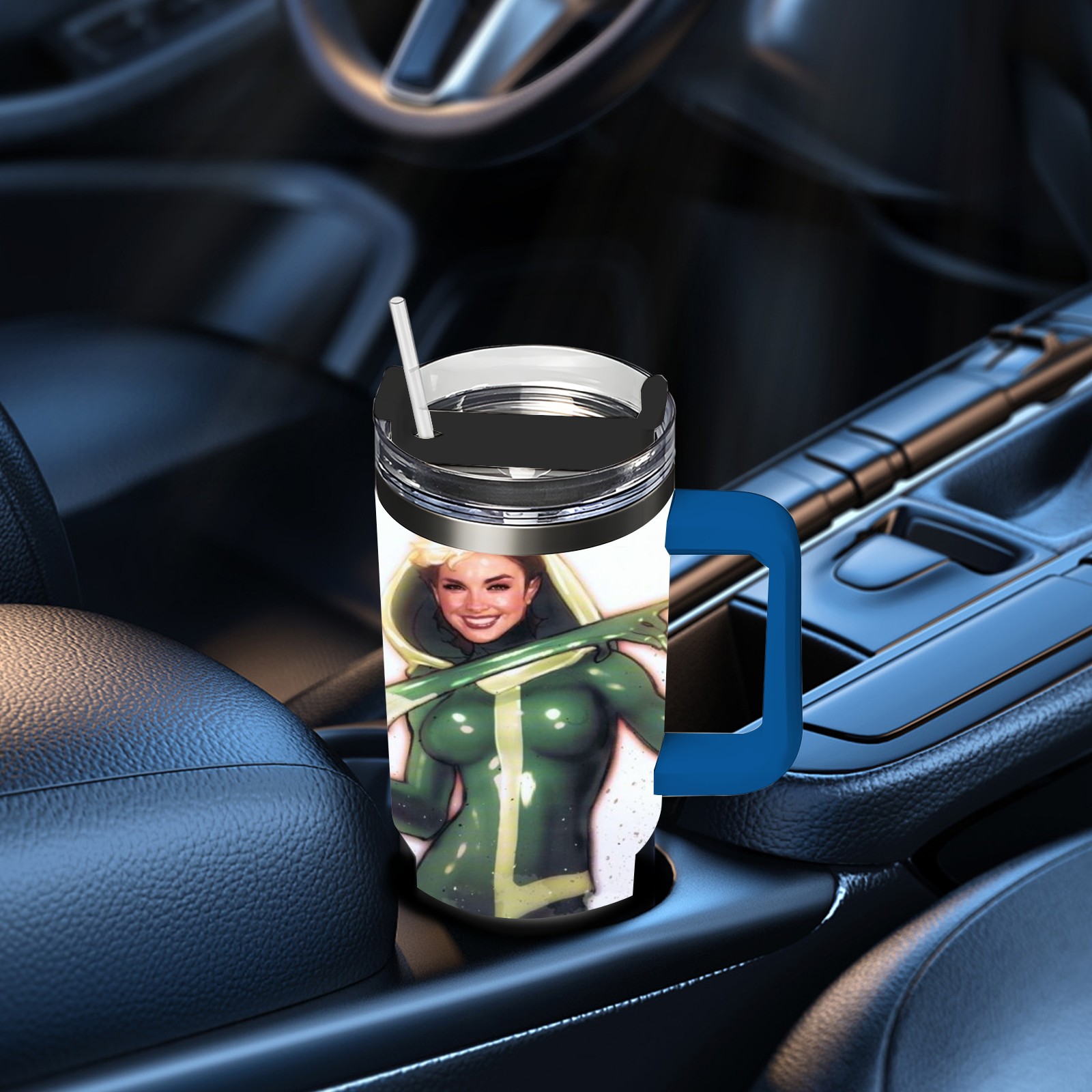 40oz 漫威 (970) thermos with lid and straw, leak-proof stainless steel, with handle, spill-proof bottle, convenient for travel(pink)