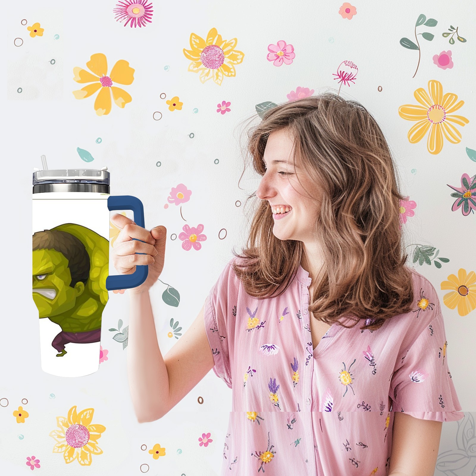40oz 漫威 (892) thermos with lid and straw, leak-proof stainless steel, with handle, spill-proof bottle, convenient for travel(pink)
