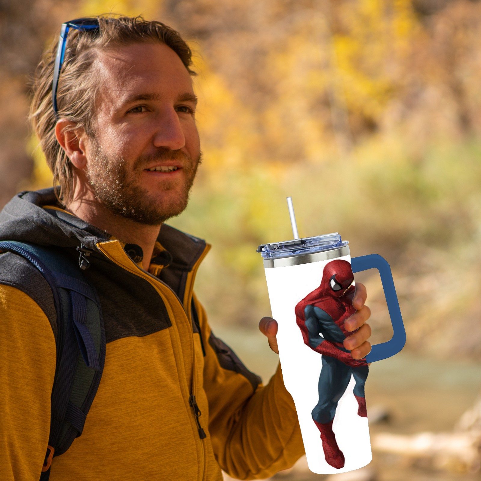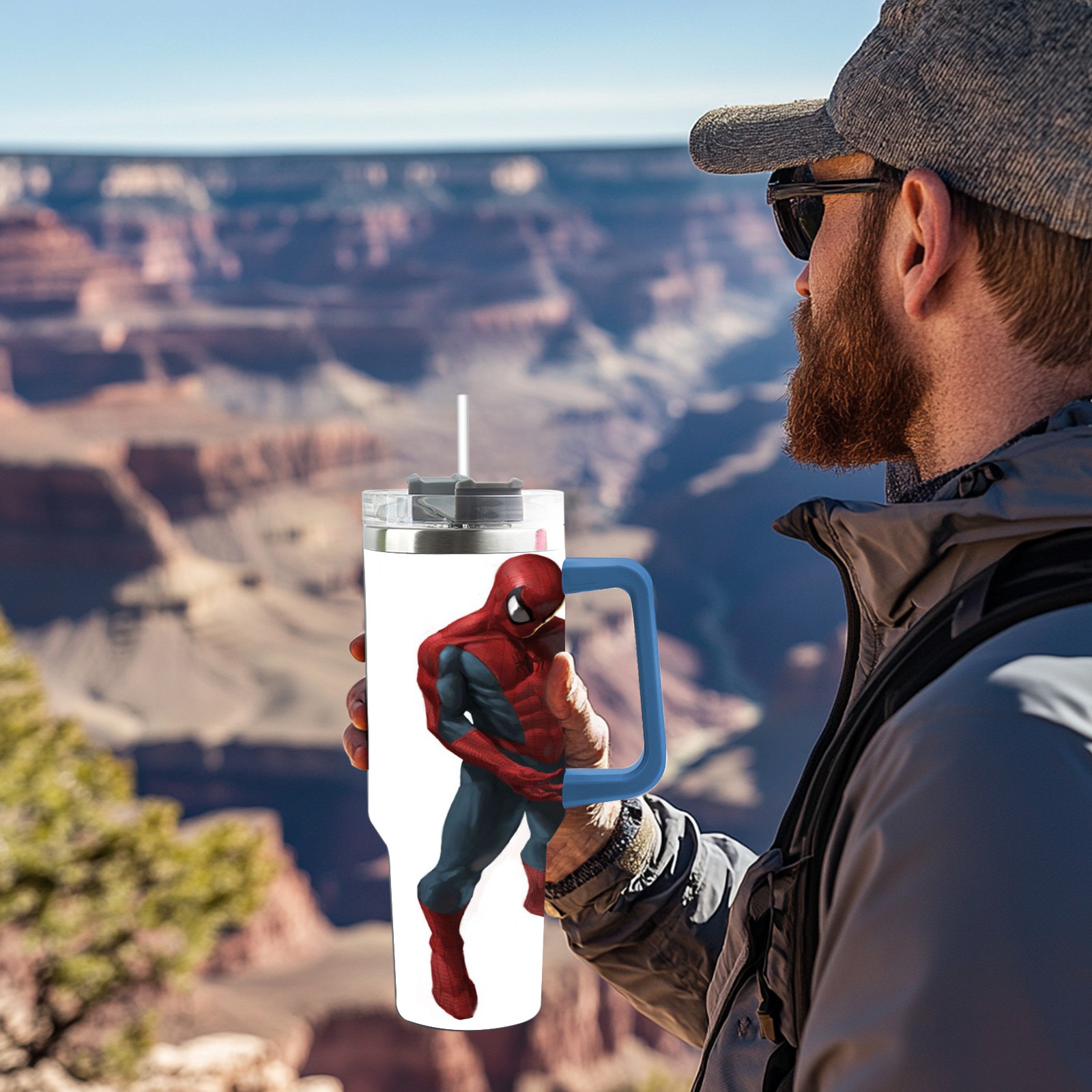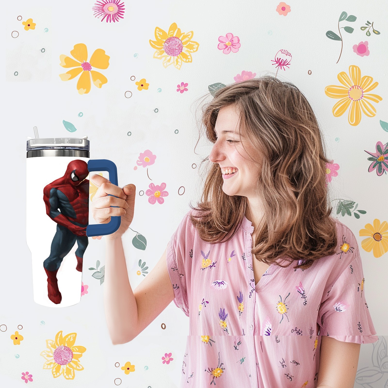 40oz 漫威 (889) thermos with lid and straw, leak-proof stainless steel, with handle, spill-proof bottle, convenient for travel(pink)