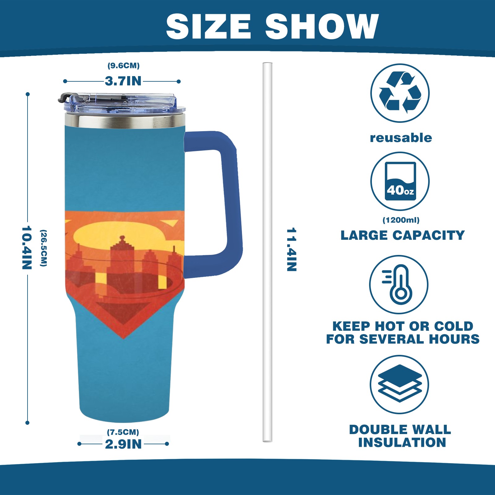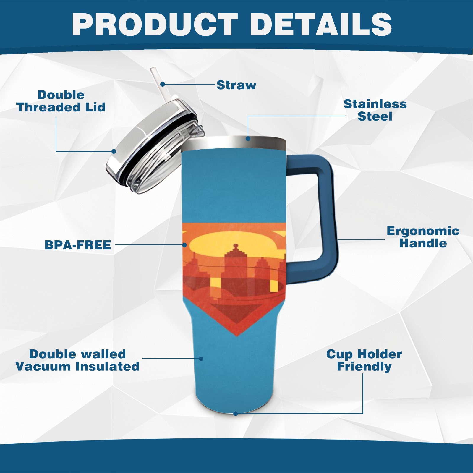 • <p>This multi-functional insulated water bottle features a simple and practical design, suitable for various daily scenarios. The ergonomic handle allows for easy one-handed drinking, and the detachable handle can be adjusted or removed as needed, making it convenient for commuting, exercising, or carrying to meetings. Made of high-quality stainless steel, it is BPA-free and features double-walled vacuum insulation technology that keeps drinks cold for 8 hours and hot for 6 hours, ensuring you can enjoy your beverage at the perfect temperature anytime, anywhere. The 40-ounce Christmas edition comes with a sliding lid, silicone straw, and a non-slip design. Accessories are dishwasher safe, and the narrow bottom and wide mouth design perfectly fits car cup holders. The exclusive flip-top straw lid is environmentally friendly and durable, with a one-touch leak-proof closure and two drinking modes: sip and gulp. A dust cover provides effective protection. This bottle is suitable for travel, office work, sports, camping, and other occasions, making it a thoughtful gift for friends and family.</p>