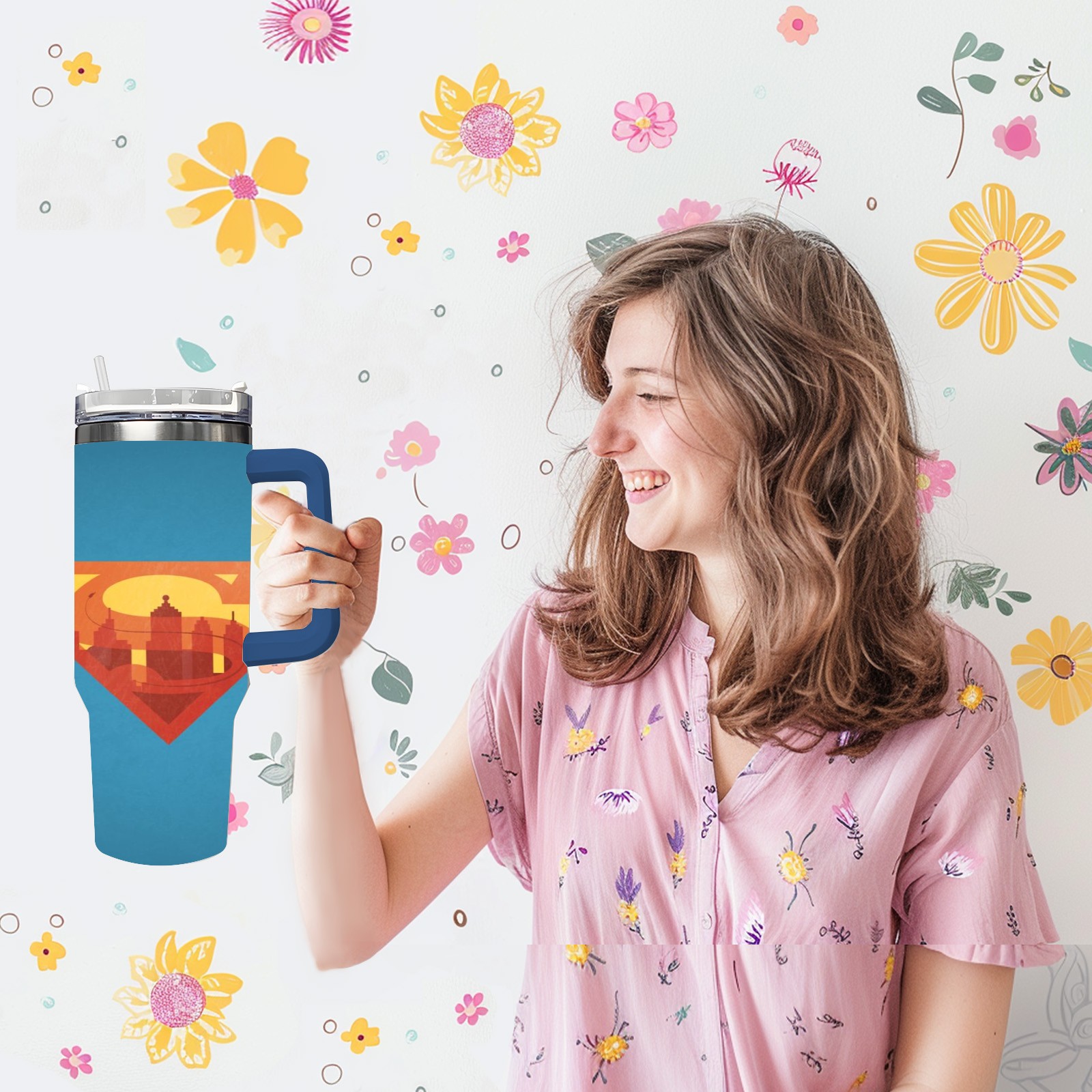 40oz 漫威 (881) thermos with lid and straw, leak-proof stainless steel, with handle, spill-proof bottle, convenient for travel(pink)