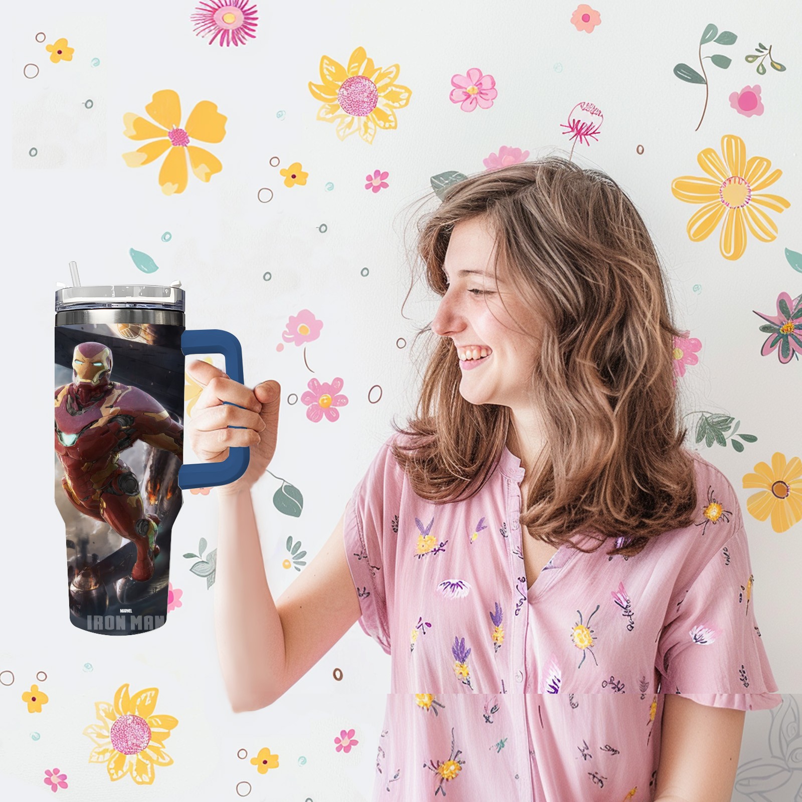 40oz 漫威 (790) thermos with lid and straw, leak-proof stainless steel, with handle, spill-proof bottle, convenient for travel(pink)