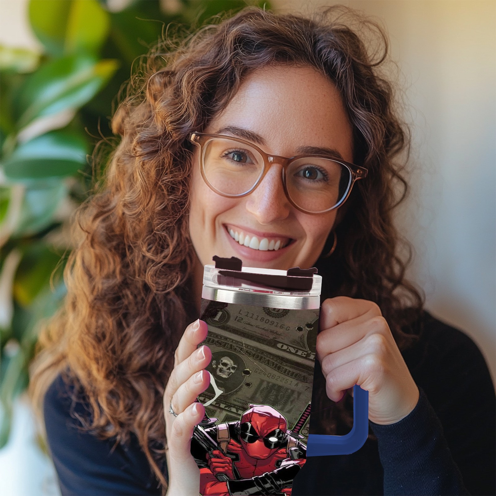 40oz 漫威 (791) thermos with lid and straw, leak-proof stainless steel, with handle, spill-proof bottle, convenient for travel(pink)