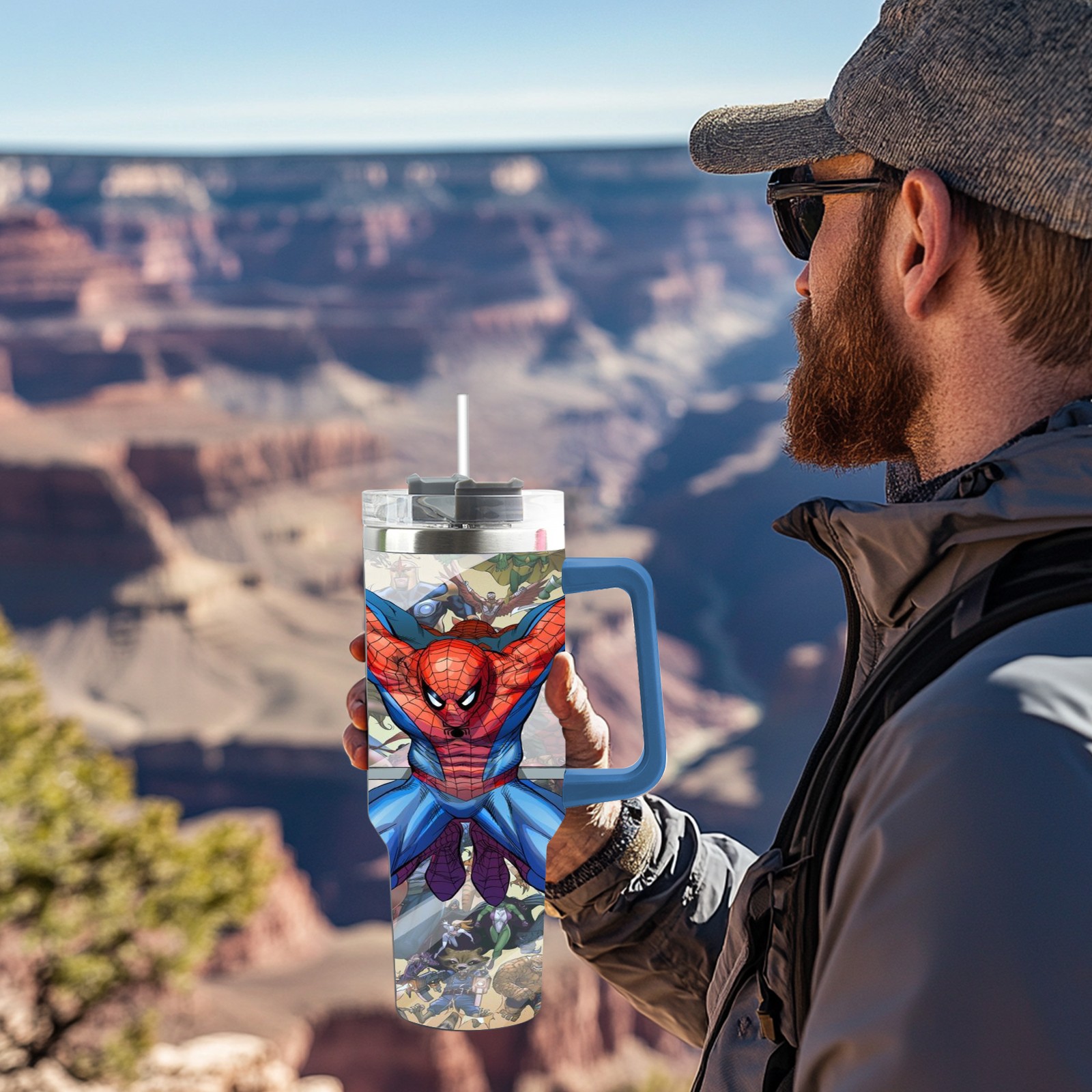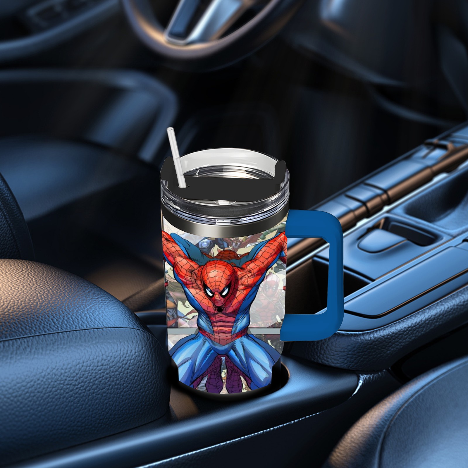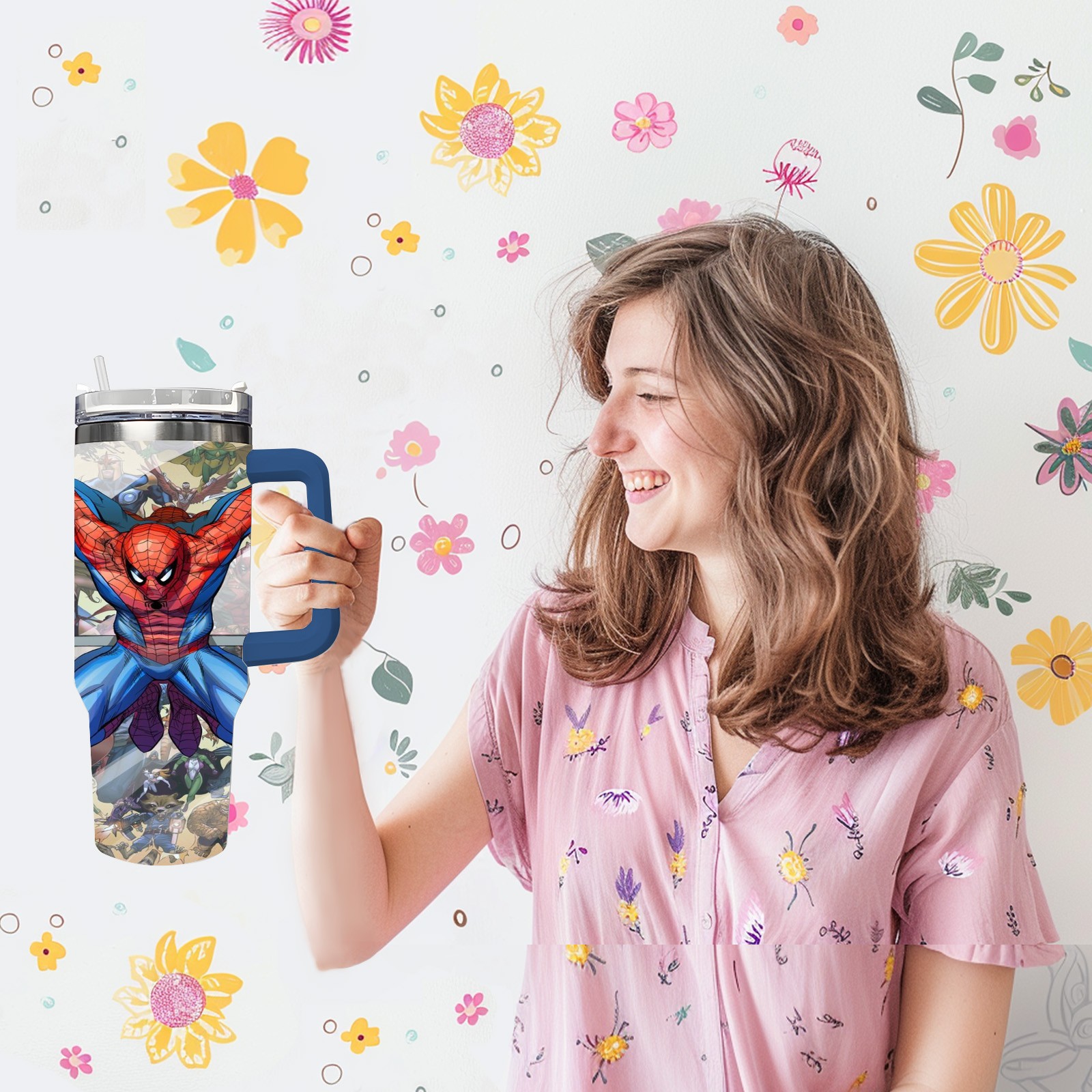 40oz 漫威 (757) thermos with lid and straw, leak-proof stainless steel, with handle, spill-proof bottle, convenient for travel(pink)