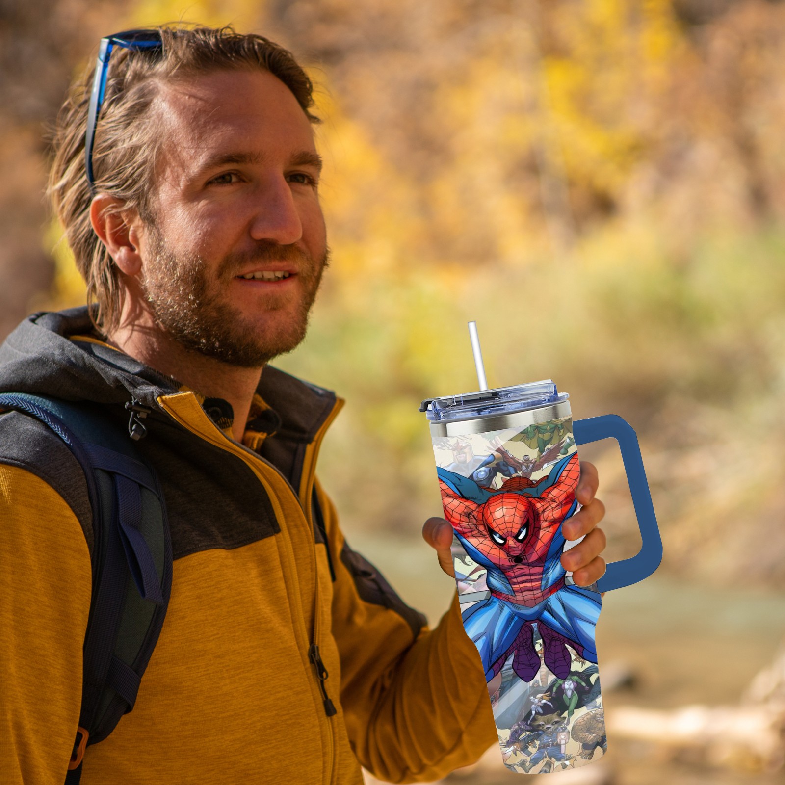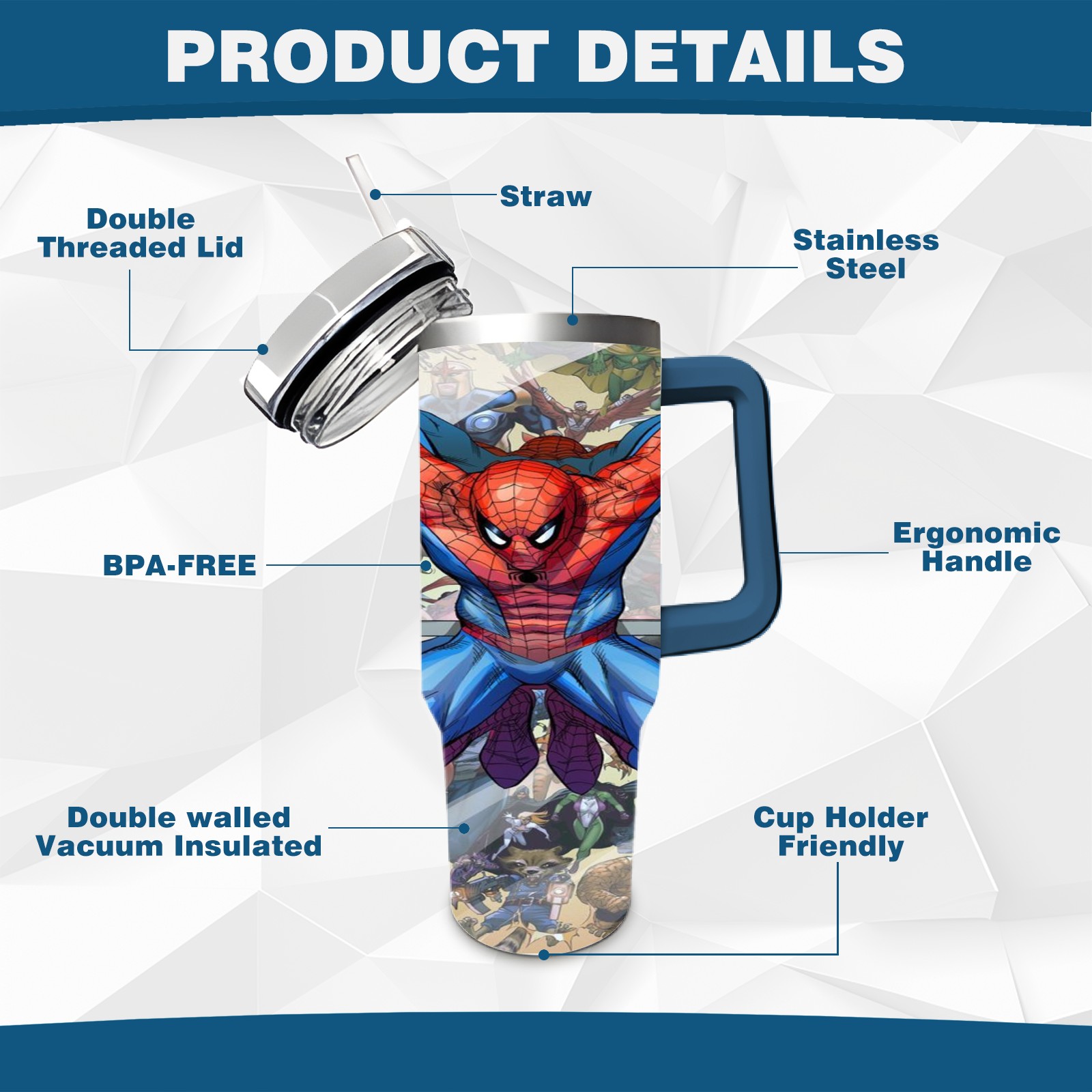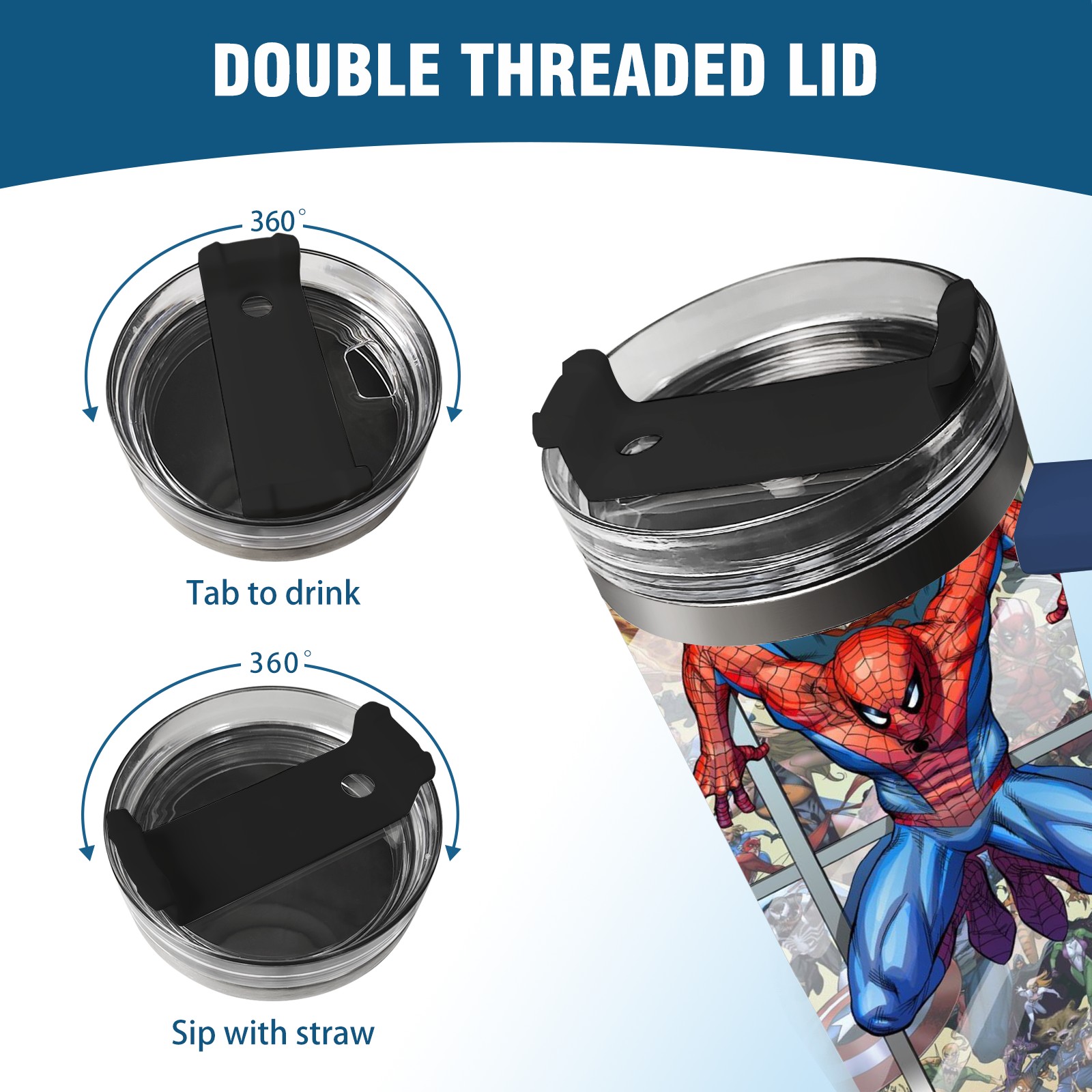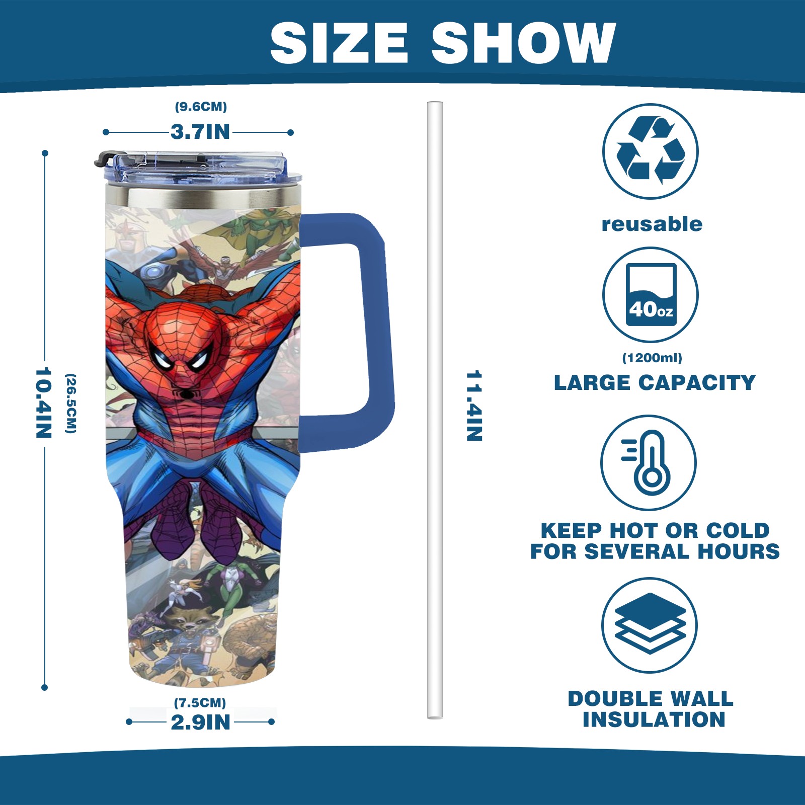 40oz 漫威 (757) thermos with lid and straw, leak-proof stainless steel, with handle, spill-proof bottle, convenient for travel(pink)
