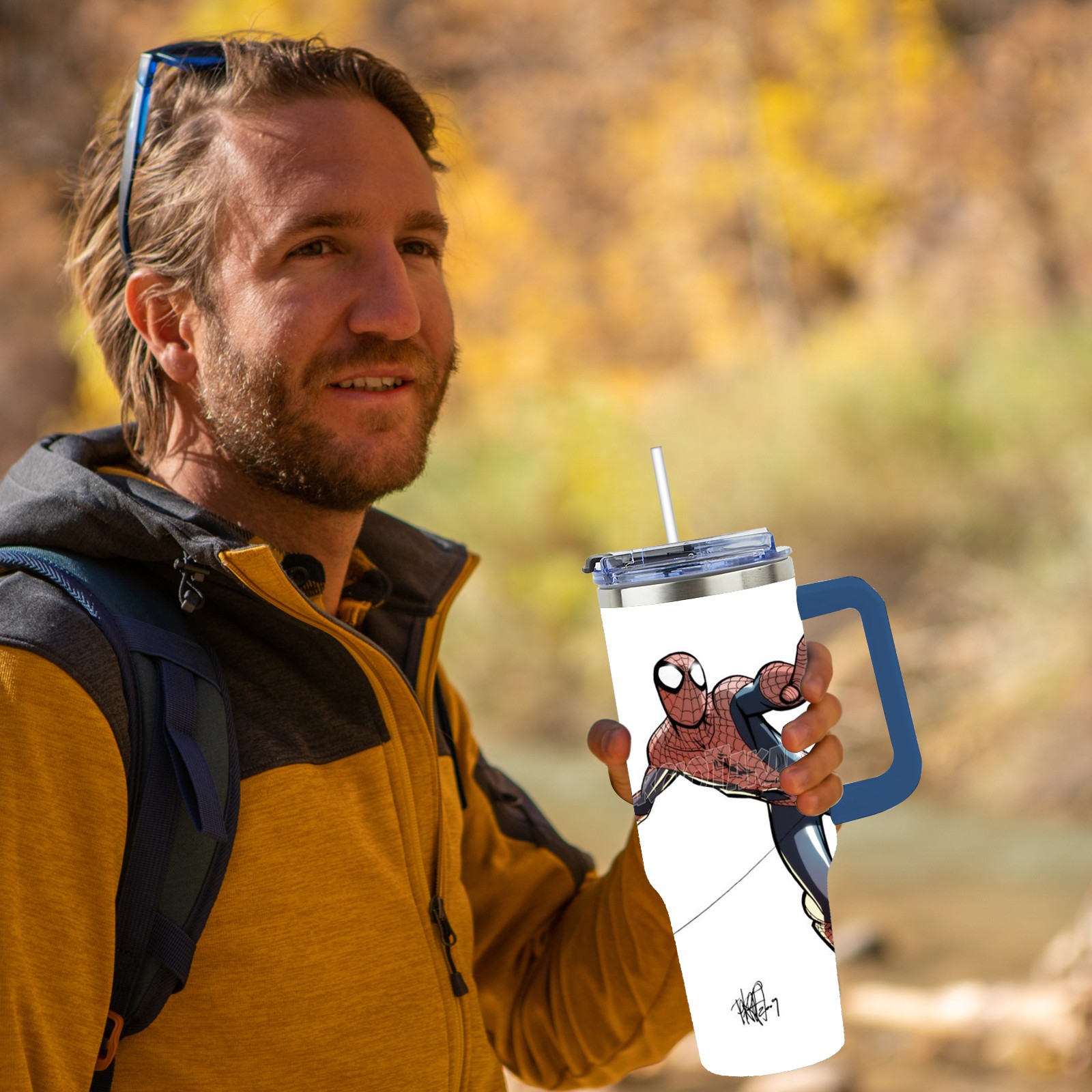 40oz 漫威 (754) thermos with lid and straw, leak-proof stainless steel, with handle, spill-proof bottle, convenient for travel(pink)